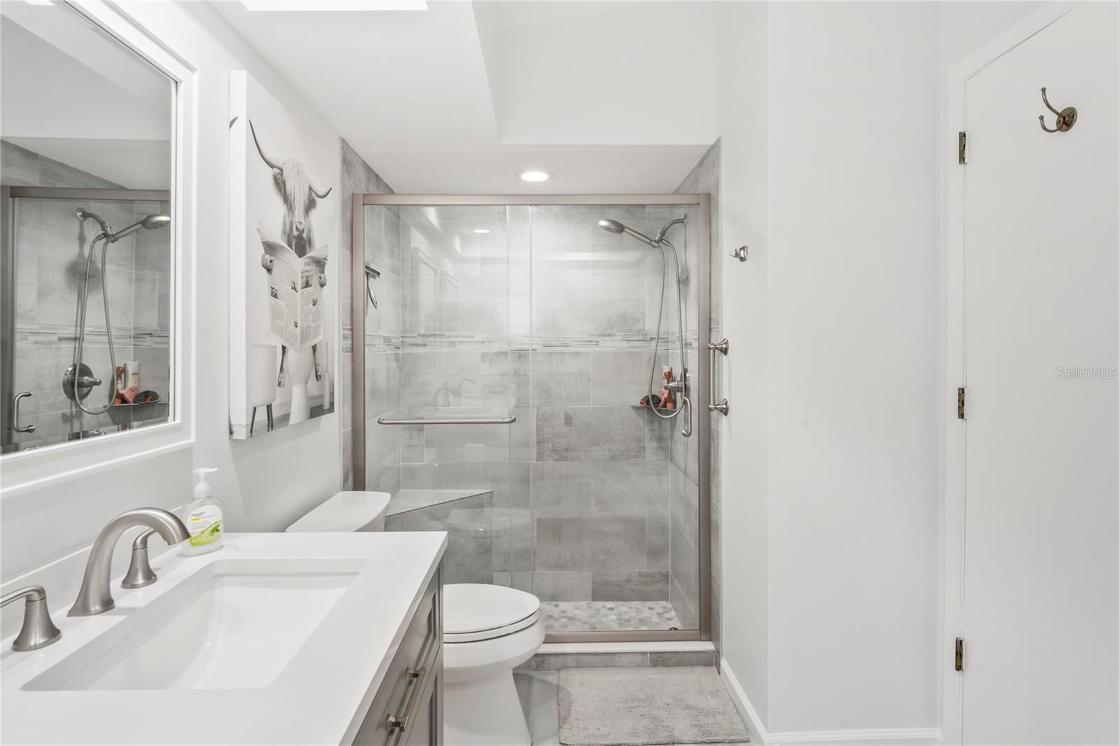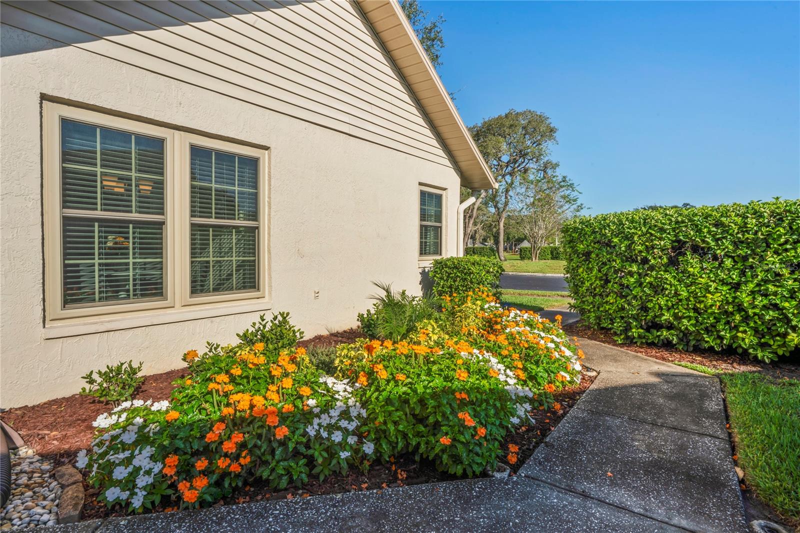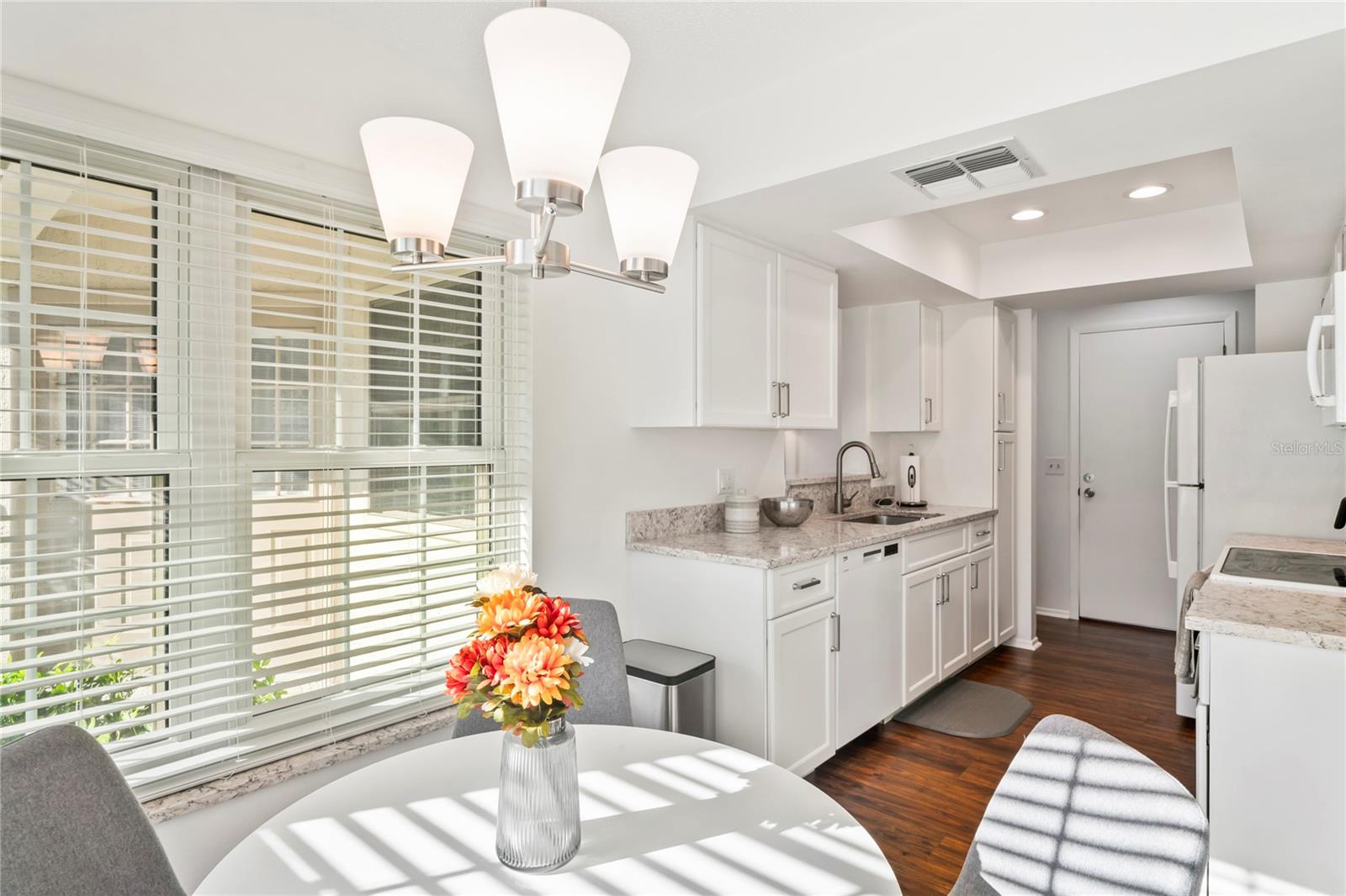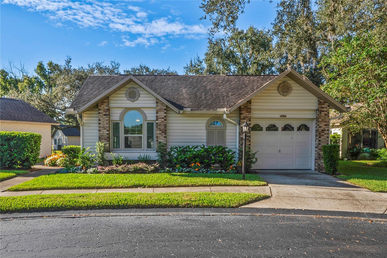 Move-In Ready 2 Bedroom, 2 Bathroom Villa with Garage in Heritage Lake’s Cedarwood II Village! Beautifully updated and move-in ready, this 2BR/2BA villa with a one-car garage is located in the highly desirable 55+ community of Heritage Lake (Cedarwood II Village). From the moment you arrive, you’ll notice the fresh landscaping, modern curb appeal, and peaceful cul-de-sac setting just a short walk from the community gazebo — a perfect place to sit and enjoy the outdoors. Step inside to discover fresh interior paint (2024), brand-new hurricane impact windows (2025), and luxury vinyl flooring throughout. The open living and dining area features vaulted ceilings and a bright, welcoming atmosphere. The remodeled kitchen showcases quartz countertops, refaced wood soft-close cabinets, a stylish backsplash, and newer appliances (2022), with plenty of space for casual dining. The spacious primary suite includes vaulted ceilings, a walk-in closet, and a beautifully remodeled bath with dual sinks and a walk-in shower. The guest suite offers another updated bathroom with modern finishes. Both bathrooms feature granite or quartz countertops, new vanities, and updated showers. Enjoy indoor-outdoor living with a rescreened private patio—ideal for morning coffee or hosting a grill with friends. Additional features include a newer roof (2015), AC (2018 with service contract), washer (2023), and dryer. Optional furnishings are available, making this home truly move-in ready. Heritage Lake is a vibrant 55+ community offering a heated pool and spa overlooking the lake, clubhouse, shuffleboard, billiards room, bocce ball, tennis, pickleball, and plenty of social activities. HOA fee includes roof, exterior maintenance, landscaping, pest control, cable, and internet. Centrally located near shopping, restaurants, hospitals, and just 29 miles from Tampa International Airport—with beautiful beaches only a short drive away. No flood zone. Don’t wait—schedule your private showing today and make this stunning villa your new home!