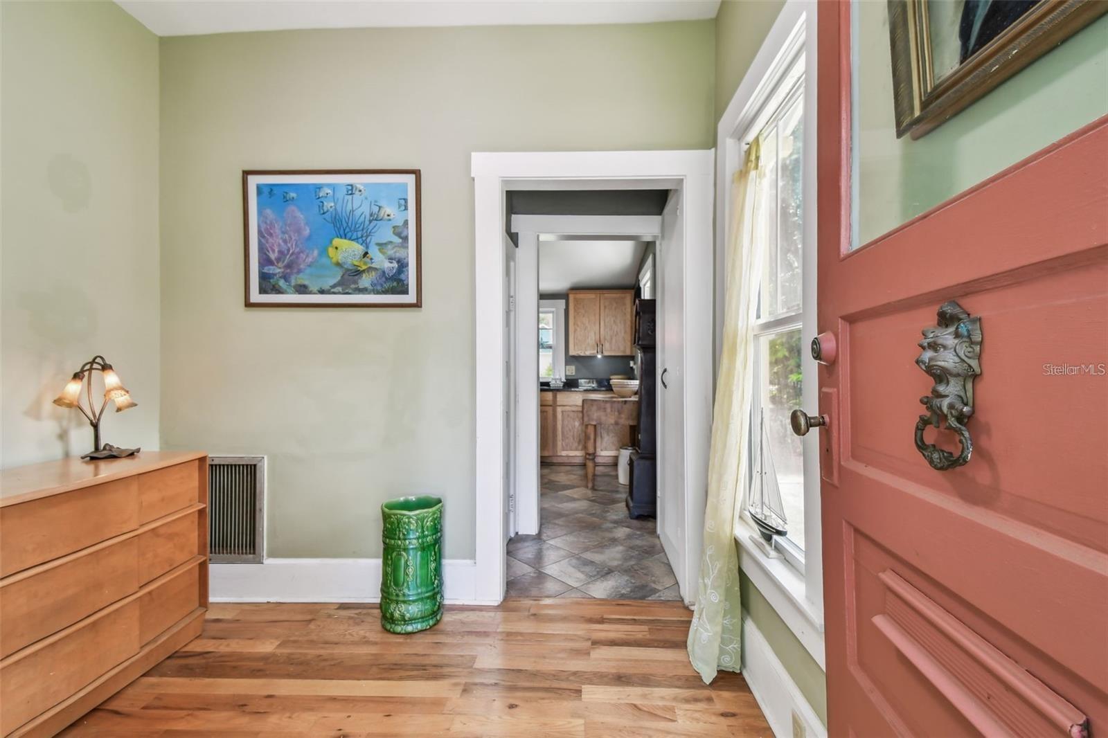 Historic waterfront pool home with dock and legal guest house in downtown New Port Richey. Set on Grand Boulevard on one of the largest lots in the district, this 4 bedroom, 3 bath estate has never flooded and offers direct Cotee River access with a private dock, boat lift, and deep-water connection. A rare Sears Roebuck “Osborn” model, the residence showcases original hardwoods, wide baseboards, vintage glass windows, and a show-stopping stone fireplace. The main home features a spacious dining room, sun-filled enclosed porch overlooking the river, and an updated kitchen with granite counters and modern appliances. The primary suite opens to the pool and includes an ensuite bath and interior laundry; secondary bedrooms offer tall ceilings and abundant natural light. Outdoors is a true Florida oasis with lush landscaping, screened pool, private courtyard, and majestic oaks for shade and privacy. The permitted detached in-law suite/guest house/ADU provides a full kitchen, living room, bedroom, and bath—ideal for multigenerational living, guests, or rental income. A newer oversized 2-car garage with workshop and storage loft, gated driveway, and ample off-street parking complete the property. Enjoy walkable access to downtown shops and restaurants, golf-cart-friendly streets, and a front-row seat to historic New Port Richey living—an exceptional riverfront opportunity with character, functionality, and location. (ROOF-2012)(A/C-2013)(W/H-2013)(IMPACT FRONT DOOR-2025)