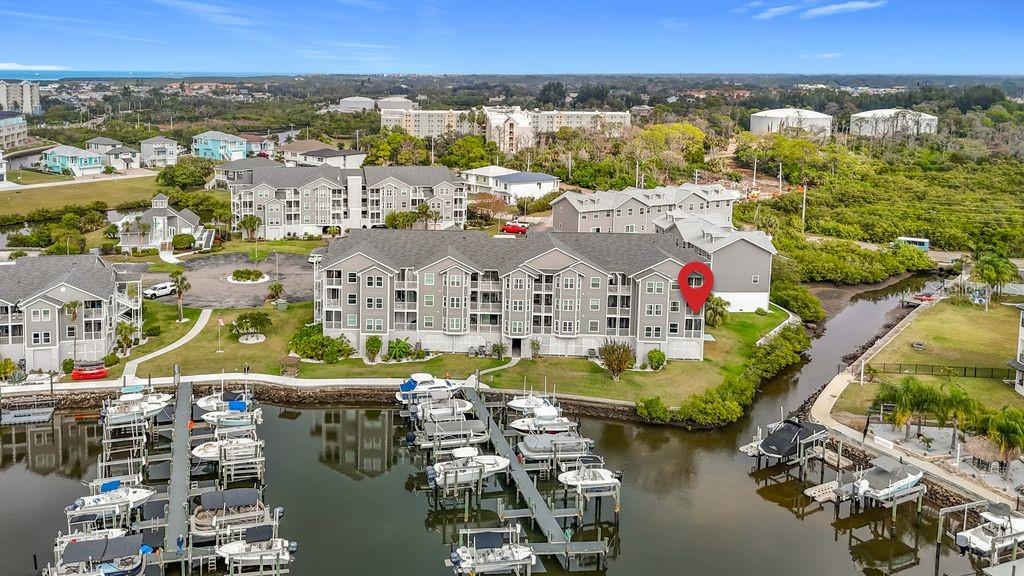 One or more photos are virtually staged. This is your lucky day! Fully renovated waterfront end unit with direct Gulf access and motivated sellers. Coastal chic is the vibe here with marina views from every window. It features an open floor plan with modern industrial finishes including stunning low maintenance polished concrete floors, recessed can lighting and new fans and light fixtures throughout. A spacious living room with slider leads to a screened balcony overlooking the marina where you can unwind and enjoy the ocean breeze. The kitchen features white quartz countertops with full backsplash, white quartz island/breakfast bar with waterfall and large farmhouse stainless steel sink. The master suite has a walk-in closet and its own private balcony and view of the water. Both bathrooms feature high-end vanities with marble countertops from Restoration Hardware, showers with custom glass enclosures and gorgeous marble tile with matte black hardware, large porcelain sinks, and plenty of drawer space. Other features to love include a laundry closet with contemporary barn door enclosure and newer full-size washer and dryer (2022), new sliding doors and double pane hurricane- rated energy efficient windows, blinds and white sailcloth curtains included. New HVAC in 2023 and all plumbing and electrical updated in 2021. Boat slip #115 included, under building assigned parking space for one (plenty of additional parking in lot), elevator, a community pool, kayak storage and launch, bike racks available, and the clubhouse and pool are just steps away. Living here also means access to the exclusive Gulf Harbors Private Beach Club! Imagine the tranquility of this private, members-only beach - sunbathing on the warm white sand, swimming in the gulf or hosting a family gathering in one of the covered picnic areas with grills. Mariner’s Way is a friendly community with an exceptional HOA that stays on top of all maintenance and the property reflects it. In addition to all exterior/grounds maintenance, the HOA also covers water, sewer, trash services, a car wash station, and building insurance. You’ll have access to Gulf Landing’s resort style amenities, including a clubhouse, heated pool, a spa, tennis/pickleball courts, and a private boat ramp. This is maintenance free, waterfront living at its best! Close to restaurants, shopping, banks, medical, and more. Short drive to beautiful downtown New Port Richey…a historic Rivertown community in north Tampa Bay with award-winning restaurants, shops, bars, and breweries. Its rich history is preserved by the Hacienda Hotel, Richey Suncoast Theatre, and the New Port Richey Museum. Natural amenities like Sims Park, the Cotee River, and James E. Grey Preserve are waiting to be explored. 6 miles to the Famous Tarpon Springs Sponge docks and only 22 miles to Tampa International Airport. Anclote Island and sandbar located 3 miles offshore. Enjoy everything Tampa Bay has to offer from the new Downtown Riverwalk, TOP US BEACHES, boating, fishing, golfing, cultural entertainment, and museums...and of course beautiful year-round weather!
