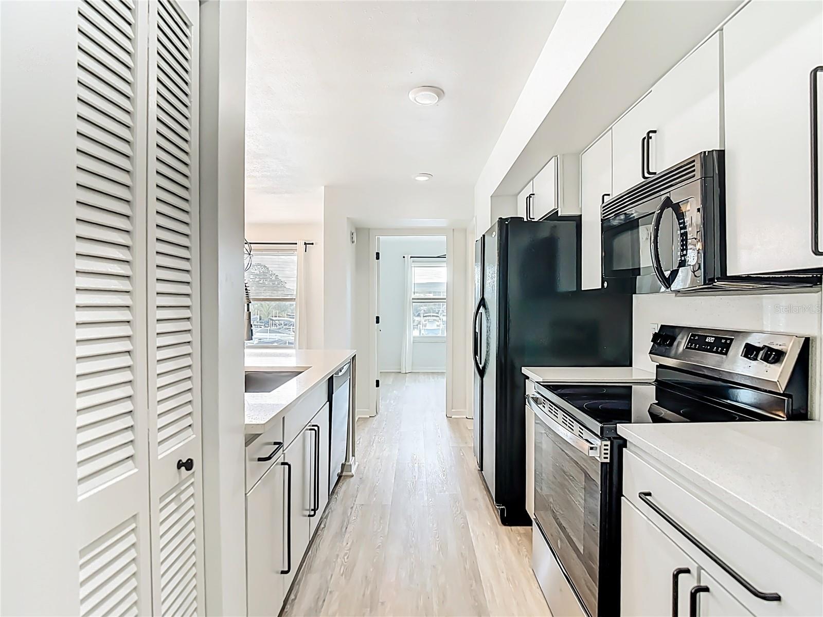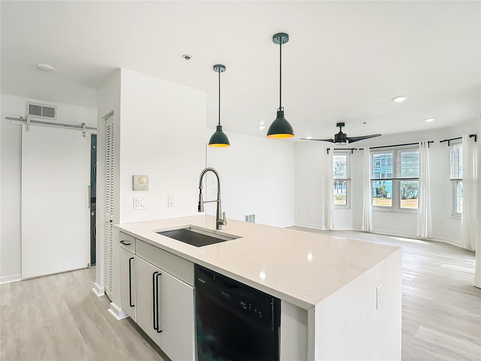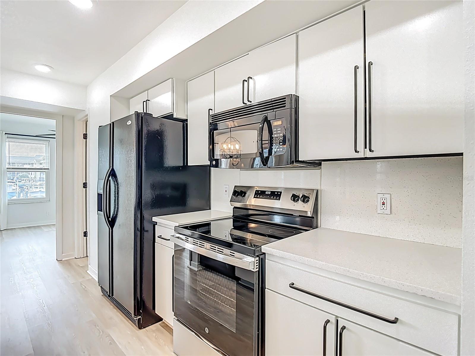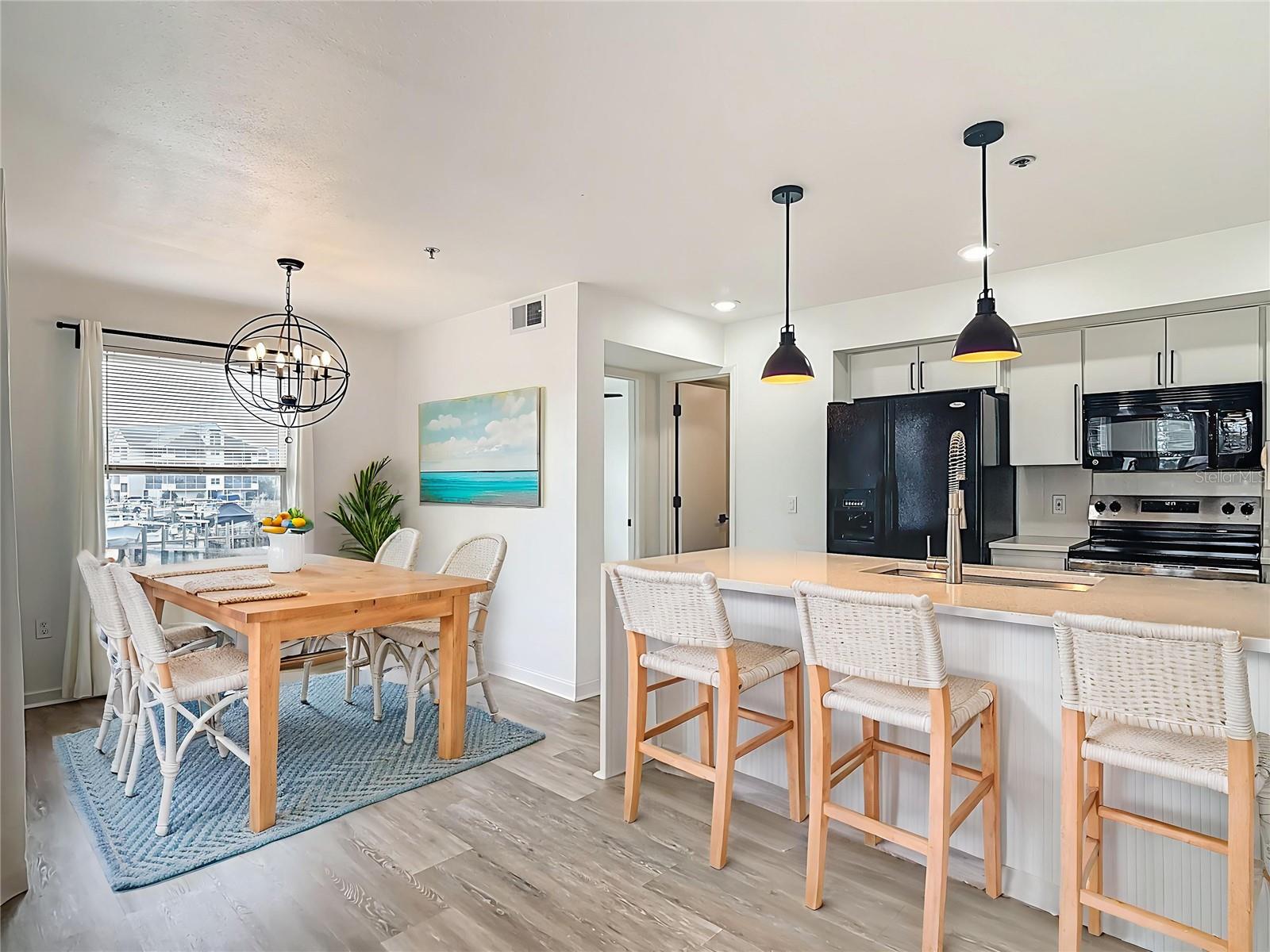 One or more photos are virtually staged. BREATHTAKING MARINA VIEWS! Wake up to paradise every morning in this beautifully renovated 2BR/2BA end unit condo with direct Gulf access. Features include an open floor plan, brand-new luxury vinyl plank flooring, recessed can lighting, and new fans and light fixtures with dimmers. The kitchen features white quartz countertops with full backsplash, white quartz island/breakfast bar with waterfall and large farmhouse stainless steel sink. Enjoy unobstructed views of the water from most windows and either of two private, screened balconies. A spacious living room with slider leads to one of the balconies overlooking the marina where you can unwind and enjoy the ocean breeze. The master suite has a walk-in closet and its own balcony and view of the water. Both bathrooms feature high-end vanities with marble countertops from Restoration Hardware, showers with custom glass enclosures and gorgeous marble tile with matte black hardware, large porcelain sinks, and plenty of drawer space. Other features to love include a laundry closet with contemporary barn door enclosure and newer full-size washer and dryer (2022), new sliding doors and double pane hurricane-rated energy efficient windows, blinds and white sailcloth curtains included. New HVAC in 2023 and all plumbing and electrical updated in 2021. Under building assigned parking space for one car (plenty of additional parking in lot), elevator, a community pool, kayak storage and launch, bike racks available, and the clubhouse and a sparkling swimming pool are just steps away. Deeded boat slip included with sale. Living here also means access to the exclusive Gulf Harbors Private Beach Club! Imagine the tranquility of this private, members-only beach --sunbathing on the warm white sand, swimming in the gulf or hosting a family gathering in one of the covered picnic areas with grills. Mariner’s Way is a friendly community with an exceptional HOA that stays on top of all maintenance and the property reflects it. In addition to all exterior/grounds maintenance, the HOA also covers water, sewer, trash services, a car wash station, and building insurance. You’ll have access to Gulf Landing’s resort style amenities, including a clubhouse, heated pool, a spa, tennis/pickleball courts, and a private boat ramp. This is maintenance free, waterfront living at its best! Close to restaurants, shopping, banks, medical, and more. Short drive to beautiful downtown New Port Richey…a historic Rivertown community in north Tampa Bay with award-winning restaurants, shops, bars, and breweries. Its rich history is preserved by the Hacienda Hotel, Richey Suncoast Theatre, and the New Port Richey Museum. Natural amenities like Sims Park, the Cotee River, and James E. Grey Preserve are waiting to be explored. 6 miles to the Famous Tarpon Springs Sponge docks and only 22 miles to Tampa International Airport. Anclote Island and sandbar located 3 miles offshore. Enjoy everything Tampa Bay has to offer from the new Downtown Riverwalk, TOP US BEACHES, boating, fishing, golfing, cultural entertainment, and museums...and of course beautiful year-round weather!