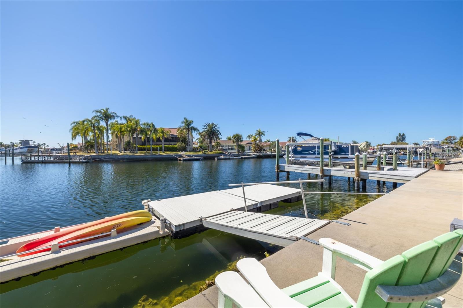 Enjoy the view from the pool down the long canal between Galleon and Seaway that leads to the Gulf with no bridge obstructions. The pool was new in 2019 and has an expansive paver lanai and cage around it with some of it shaded and some open for optimal enjoyment. There is a 20 ft long floating dock along with a 10,000 lb lift with it's own dock for your boating pleasure. The house features a large kitchen with plenty of storage for your entertaining needs and an open floor plan with water views and a gas fireplace. The primary bedroom is spacious with plenty of room for a king bed, a walk in closet, en suite bathroom and a slider to the pool deck. The remodel was tastefully done in neutral colors and is just waiting for you to bring your decorations to make it your own.
