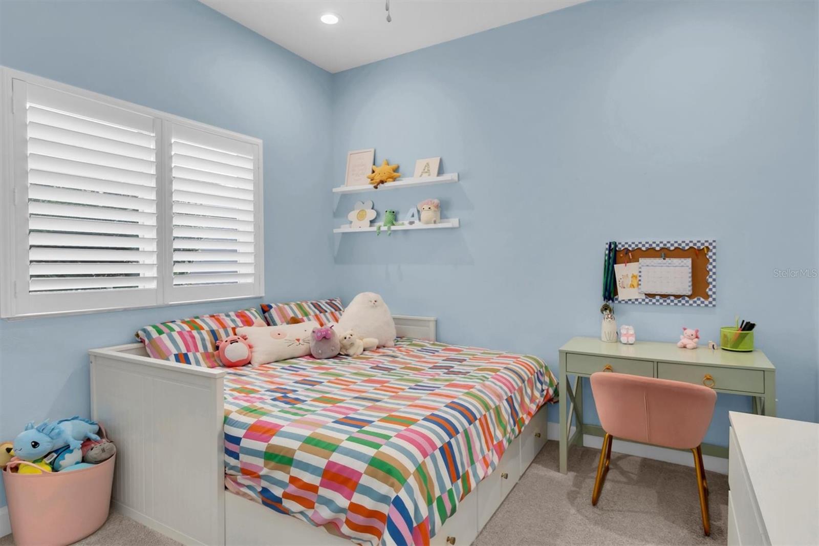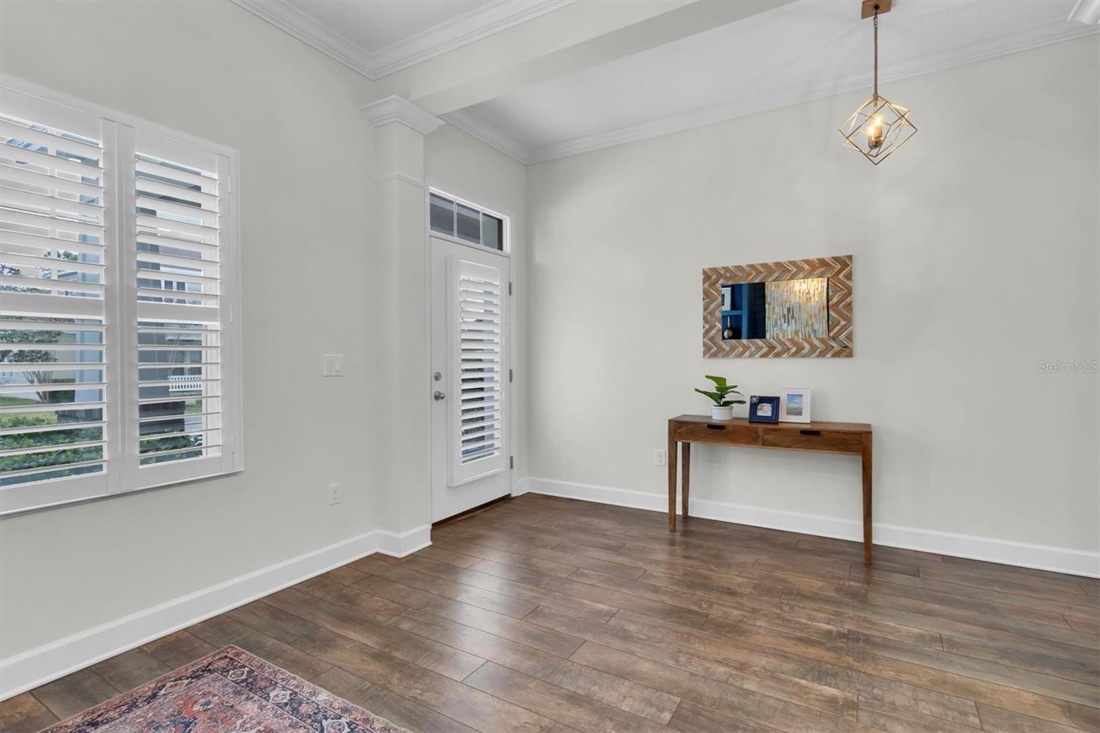 This highly sought-after David Weekley Woodlawn floor plan is a 3-bedroom, 2.5-bath home located in the desirable community of Longleaf and is loaded with upgrades throughout. The centrally located chef’s kitchen features stainless steel appliances, an electric stovetop pre-plumbed for easy gas conversion, an oversized island with breakfast bar, updated hardware, and was upgraded with stunning Cambria quartz countertops installed in 2024 in a rare, upgraded thickness along with new tile backsplash. The primary en-suite bathroom was fully remodeled and redesigned in 2024 with a fully enclosed glass shower, freestanding soaking tub, double-sink vanity and new flooring. The secondary bath was fully remodeled in 2025. Brand new air conditioning was installed in 2025. The interior has been recently repainted and recessed lighting added throughout. This home also includes a water softener. Crown molding accents the foyer, front room, main living room and primary bedroom, while plantation shutters on all windows add timeless elegance; the home is also pre-wired for surround sound. Custom living room and front office built-ins were installed in 2020, and the oversized interior laundry room and adjacent mini mudroom with custom shelving greets you from the garage entry. Enjoy an inviting front porch with plenty of room for everyone—perfect for relaxing and gathering—along with a fully fenced backyard featuring white PVC fencing for privacy and a clean, polished look. The two additional bedrooms share a versatile flex space ideal for use as a playroom, an additional living area, or hobby room. Longleaf offers a true small-town atmosphere with inviting front porches and a golf cart-friendly lifestyle, complete with an elementary school, village greens, three playgrounds, a dog park, heated community pool and spa, charming downtown shops and restaurants, tree-lined streets with wide sidewalks, a clay baseball field, soccer field, two miles of paved hiking and biking trails, natural greenbelts, fishing lakes, planned community events, beach volleyball, tennis and basketball courts, a Town Hall recreation building, multiple parks, and expansive green spaces, with a new phase adding additional parks and a second pool. Walking distance to the elementary school, shops, and restaurants, and conveniently located in the heart of Trinity near dining, shopping, hospitals, schools, and entertainment, this home is approximately 15 minutes to the beaches and 30 minutes to Tampa International Airport. No flood insurance required, and the home remained high and dry during recent hurricanes.