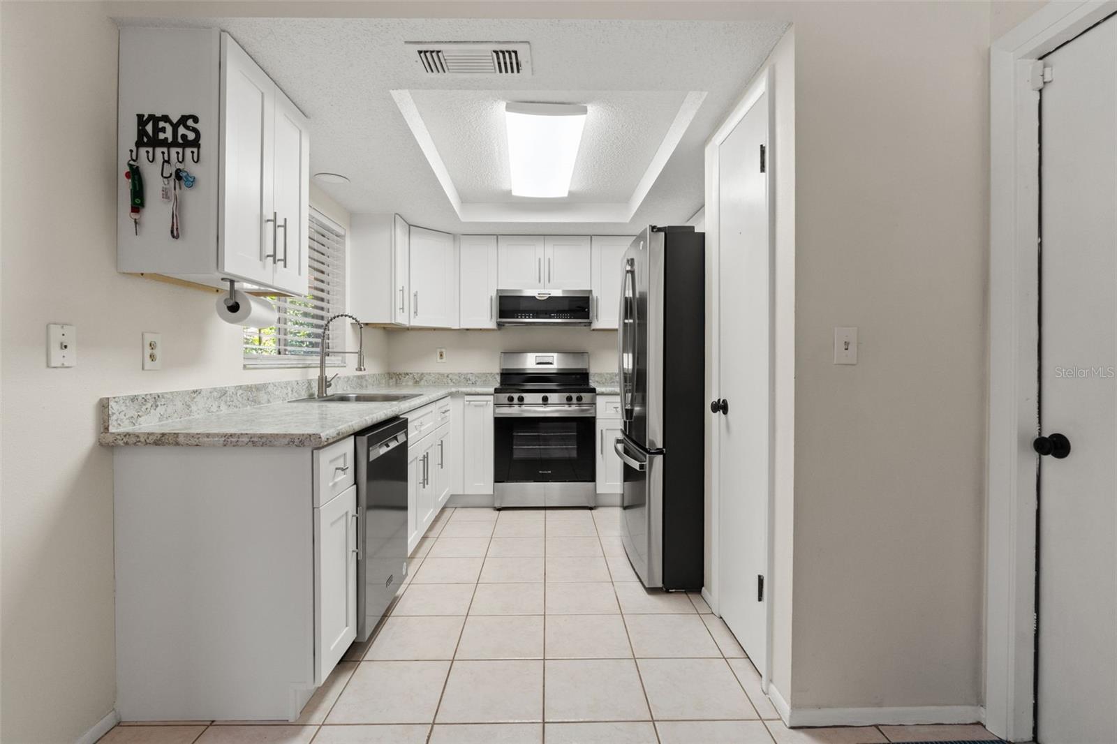 Welcome to this beautifully modernized 2-bedroom, 2-bathroom coastal retreat, perfectly situated on a corner lot with no HOA fees. This turnkey residence offers total peace of mind with a brand-new roof installed in 2024 and a high-efficiency AC system and ductwork replaced in 2023. The heart of the home is a completely remodeled kitchen featuring contemporary appliances and sleek finishes, flowing seamlessly into spacious living areas anchored by elegant tile flooring. Both bedrooms serve as private sanctuaries with updated wood-look laminate flooring, including a primary suite complete with a walk-in closet and ensuite bath. Both bathrooms have been tastefully elevated with upgraded vanities and premium countertops, complemented by new designer ceiling fans throughout the home. Step outside to a massive 2-car garage and a serene backyard featuring a custom patio overhang, perfect for shaded outdoor entertaining. This home combines stylish upgrades with functional durability. You are ideally located just minutes from the vibrant culture of downtown New Port Richey, where you can explore the historic Hacienda Hotel, local boutiques on Main Street, and premier dining. For those traveling, this provides an easy commute to Tampa International Airport! For water enthusiasts, this home offers unparalleled access to the Florida lifestyle. You are less than two miles from the Sims Park Boat Ramp, providing direct access to the Pithlachascotee River and the Gulf of Mexico. Oversized lot will accommodate Boat and RV storage.