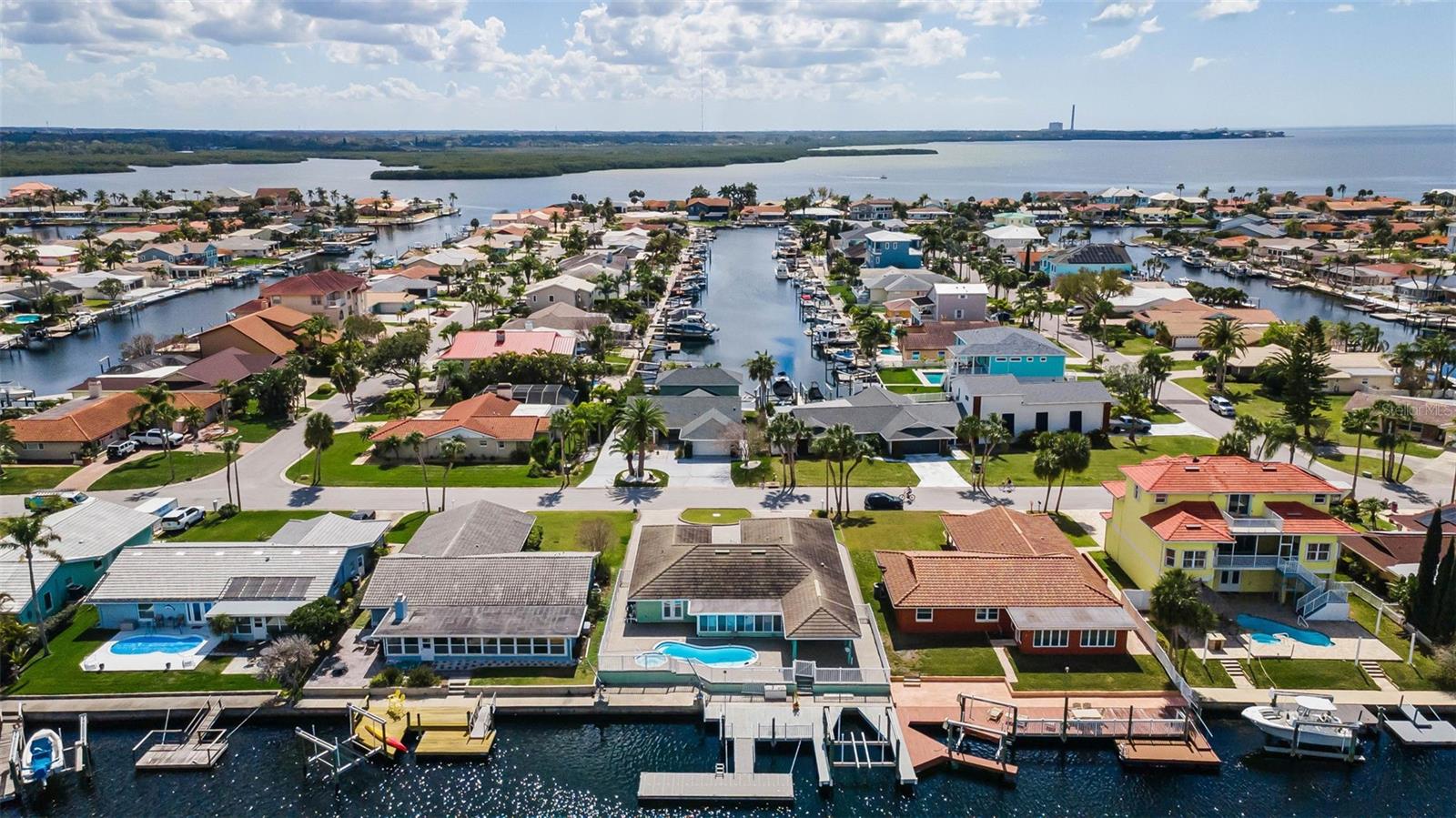 Welcome to this beautifully updated waterfront home in the highly desirable Flora Mar section of Gulf Harbors. Offering nearly 2,200 square feet of living space, this spacious 2-bedroom, 2.5-bath residence with a 2-car garage combines comfort, style, and the Florida waterfront lifestyle. From the moment you arrive, the paver circular driveway and charming courtyard entry create a warm and inviting first impression as you approach the front door. Inside, the open floor plan is designed for both everyday living and entertaining, with abundant natural light throughout. The large, updated kitchen is the heart of the home, showcasing granite countertops, stainless steel appliances, tile flooring, and a generous center island that opens seamlessly to the main living area. French doors lead directly to the paver patio and pool area, making indoor-outdoor entertaining effortless. The spacious Florida room at the rear of the home offers beautiful views of the pool and canal, providing the perfect spot to relax and enjoy the waterfront scenery. The primary suite is a true retreat, featuring wood-look tile flooring, French doors leading to the pool area, and a large walk-in closet with a built-in wall safe. The spa-like ensuite bath has been beautifully updated and includes a glass tile shower with a rain showerhead and modern finishes. The guest bedroom is generously sized and conveniently located near an updated full bath, offering comfort and privacy for visitors. Step outside to your expansive paver pool and lanai area, complete with a swimming pool and spa overlooking the canal that leads directly to the Gulf. The private boat dock makes it easy to enjoy boating, fishing, and the best of Florida’s waterfront lifestyle right from your backyard. Located close to shopping, restaurants, medical facilities, and everyday conveniences, residents also have the option to join the Gulf Harbors private beach club for access to a beautiful sandy beach just minutes away. Move-in ready and beautifully maintained, this exceptional waterfront home offers the perfect blend of comfort, elegance, and coastal living.