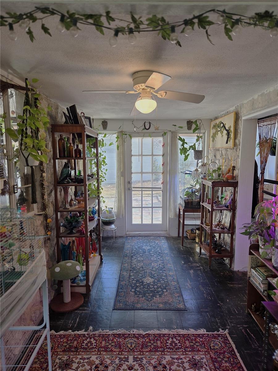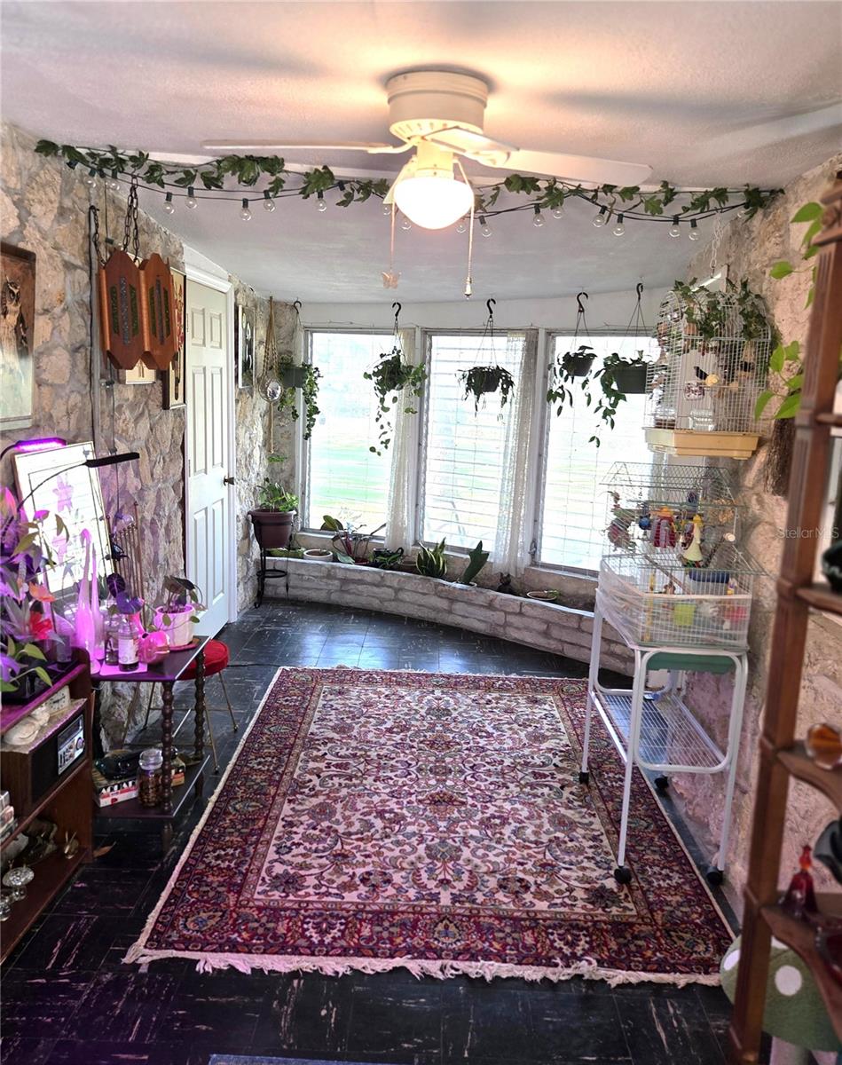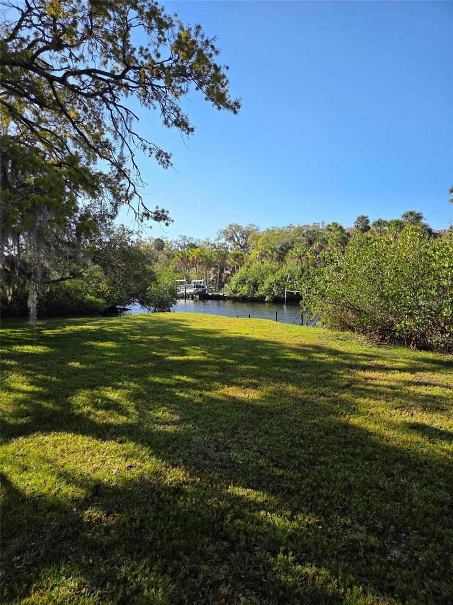 Waterfront....Now here is a house that you do not see every day. This is old Florida at its finest. The home is nestled on a quiet street and made of stone. How neat is that. The property boasts a large backyard that continues down to the waterfront river which leads to the gulf. The home has all coolest looking exterior features like curved glass windows, and unique angles that make it almost like a miniature castle. The pictures do not do it justice, but what a find. The interior is a mix of creatively shaped rooms with lots of character and light. The bedrooms are of good ample size ,and the family great room is very comfortable. The kitchen is unique with a curved bay window looking out at the side yard. The nice sized detached garage , which has plenty of room for a workshop, is a must. This home is a rarity and will not last.