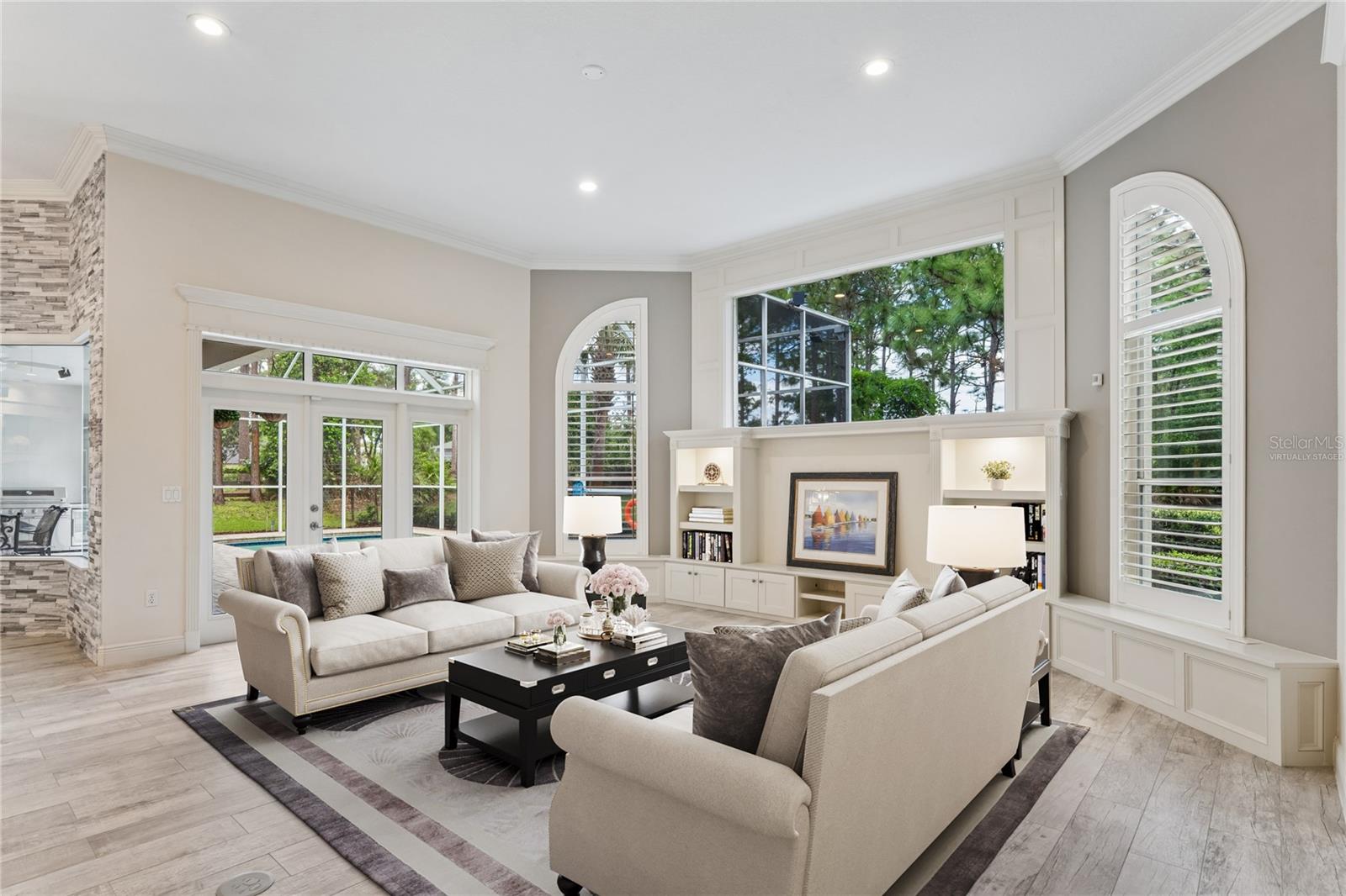 One or more photo(s) has been virtually staged. Welcome to an extraordinary private estate at 10801 Alico Pass, where refined luxury meets the natural beauty of 1.5 acres in the exclusive Aristida enclave. Nestled beside thousands of acres of protected wilderness and miles of scenic trails, this residence offers a rare blend of serenity, space, and sophistication. A grand approach sets the tone, with custom iron gates and elegant double glass entry doors inviting you into a home defined by soaring 12-foot ceilings, rich wood floors, and exquisite architectural detail. Light pours through expansive French doors and transom windows, framing tranquil views of the pool, lush conservation, and your own private wooded retreat. At the heart of the home, a beautifully reimagined kitchen combines timeless elegance with modern function, featuring quartz Cambria Britannica surfaces, custom cabinetry, premium appliances, and a statement island designed for gathering and entertaining. The adjoining living spaces flow effortlessly, enhanced by custom millwork, designer lighting, and a seamless indoor-outdoor connection. The primary suite is a true sanctuary, offering peaceful views and a spa-inspired bath adorned with Carrera marble, a frameless glass shower, custom vanities, and a meticulously designed walk-in closet. Outdoors, your personal resort awaits. A screened lanai with an outdoor kitchen overlooks the sparkling pool, enhanced by recent system upgrades. Wander beyond to discover a picturesque ornamental pond, private walking trails, a fully fenced dog run (2,250 sq.ft.) and open spaces to relax or play in wooded privacy. That said, you are only a 30 minute drive to Tampa International Airport (TPA), and the beaches in Dunedin and Clearwater. A quick drive brings you to the Suncoast Parkway and I75. Modern enhancements blend effortlessly into this timeless setting, including a new roof (2021), two new A/C units (2023), and a dedicated EV charging station. The advanced security system has the capability of installing 9 cameras. The home includes smart systems, and thoughtful upgrades throughout. This is more than a home, it’s a private retreat designed for those who value space, nature, and uncompromising quality.