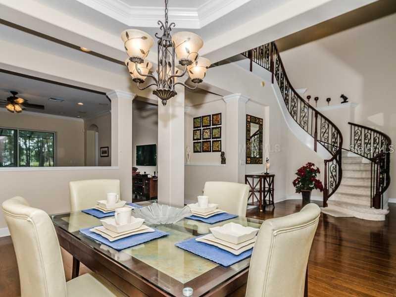 Welcome to your dream lakefront pool home at 11403 Biddeford Place, located in the highly sought-after Waters Edge community! If you’ve been searching for space, views, and that true Florida lifestyle—this one truly checks every box. Situated on an oversized lot with nearly 4,000 square feet of living space, this Ryland LaSalle II home offers the perfect blend of comfort, functionality, and lakefront living. With the exterior freshly painted in 2021, the curb appeal is just the beginning. Step inside and you’re immediately welcomed by a bright, open foyer with soaring ceilings and a stunning curved staircase—a grand entrance that sets the tone for the rest of the home. The thoughtfully designed floor plan flows seamlessly between the kitchen, dining areas, living spaces, and private office, making it ideal for both everyday living and entertaining. The updated kitchen truly serves as the heart of the home, featuring granite countertops, stainless steel appliances, wood cabinetry, a center island, and a spacious eat-in area—perfect for gathering with family or hosting guests. Your first-floor primary suite is a private retreat, complete with a sitting area, bay windows, and tray ceiling. The en-suite bath offers dual sinks, granite counters, a garden tub, separate shower, and a generous walk-in closet. Upstairs, you’ll find three additional bedrooms, including a Jack-and-Jill bathroom, along with a large bonus room with a closet—perfect for a game room, theater, or flexible living space to fit your needs. Step outside and unwind in your private saltwater pool and spa, all while enjoying peaceful lake views. With a little TLC, the existing private dock leading to 52-acre West Moon Lake becomes an incredible feature—ideal for boating, fishing, kayaking, or simply soaking in the waterfront lifestyle. Lakefront homeowners also enjoy exclusive access to a private boat ramp, adding even more value to this unique property. Waters Edge offers resort-style amenities, including a clubhouse, fitness center, multiple pools, basketball court, playgrounds and a gated entrance—all with a low HOA that includes cable, high-speed internet, and trash service. This home is more than just a place to live—it’s a lifestyle opportunity you don’t want to miss.