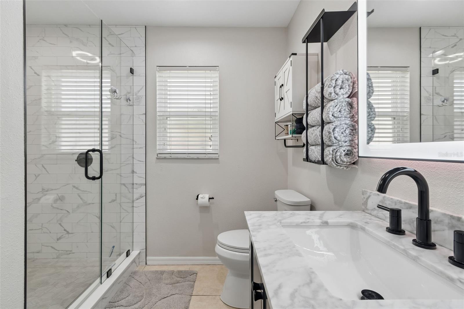 Welcome to this updated townhome in New Port Richey, offering a rare combination of privacy, modern upgrades, and functional living. Thoughtfully positioned with a unique side yard and no immediate neighboring unit, the property provides a level of privacy not typically found in townhome communities. The interior features an open-concept layout with vaulted ceilings, abundant natural light, and updated finishes throughout. The main living area transitions seamlessly into the dining space and upgraded kitchen, complete with newer cabinetry and appliances. An enclosed four-season room with a multi-panel slider adds flexible living space and overlooks a fully private backyard with a paver patio and mature hedging, creating an ideal setting for outdoor enjoyment. Upstairs, a split-bedroom floor plan offers two guest bedrooms with ample closet space and a shared bath enhanced by a skylight. The primary suite includes vaulted ceilings, generous proportions, and a fully renovated en-suite bathroom featuring dual vanities, an oversized walk-in shower with dual shower heads, and contemporary finishes. Additional features include a half bath, a one-car garage, newer AC system, updated windows with storm shutters, new carpet, and custom closet built-ins. This move-in ready townhome combines low maintenance living with upgraded features and convenient access to shopping, dining, and downtown amenities. (A/C-2020)(W/H-2025)