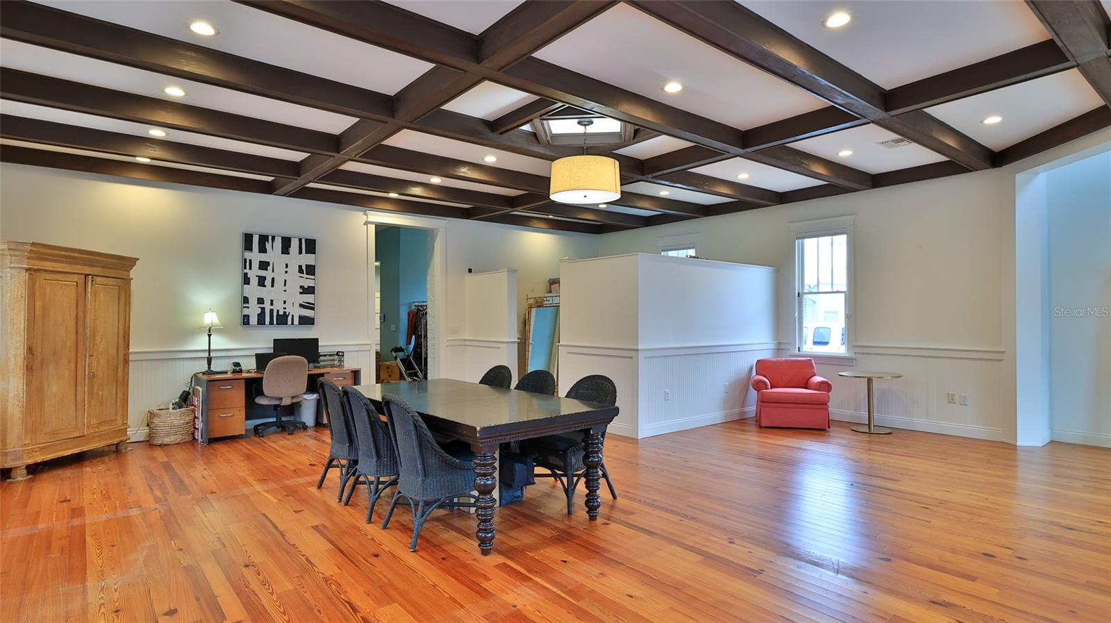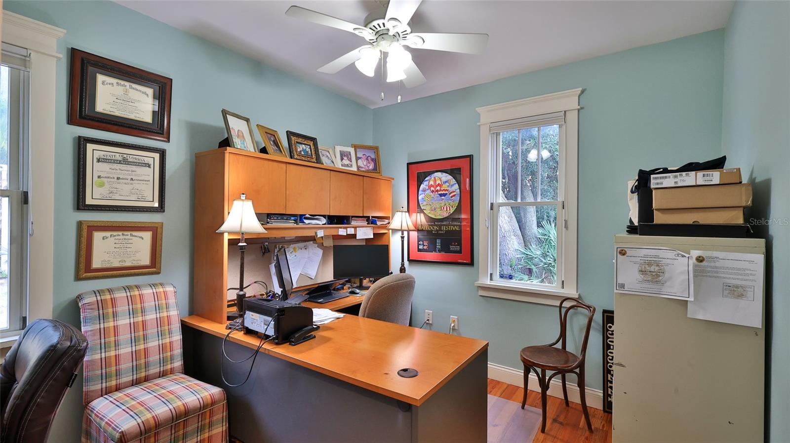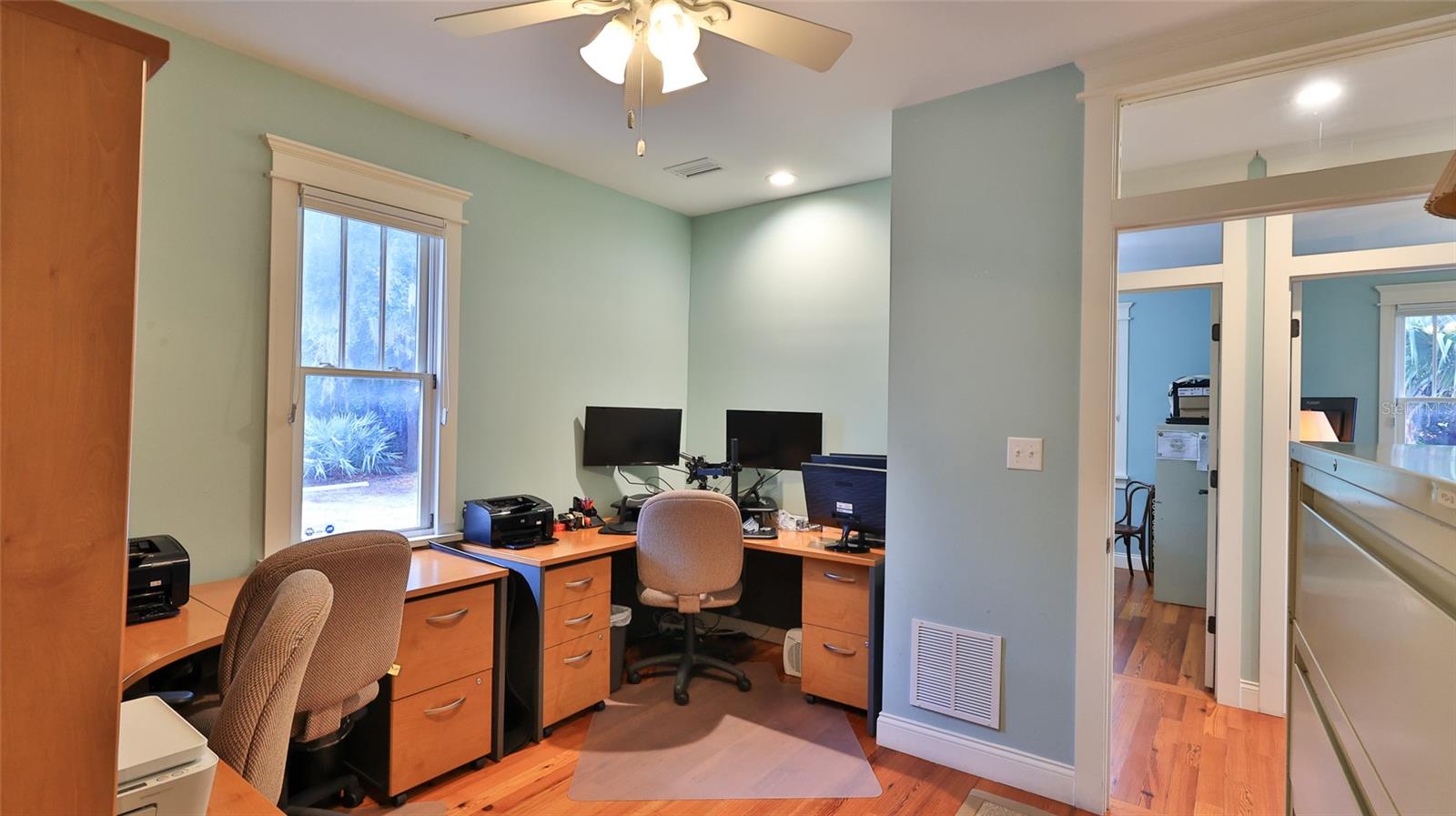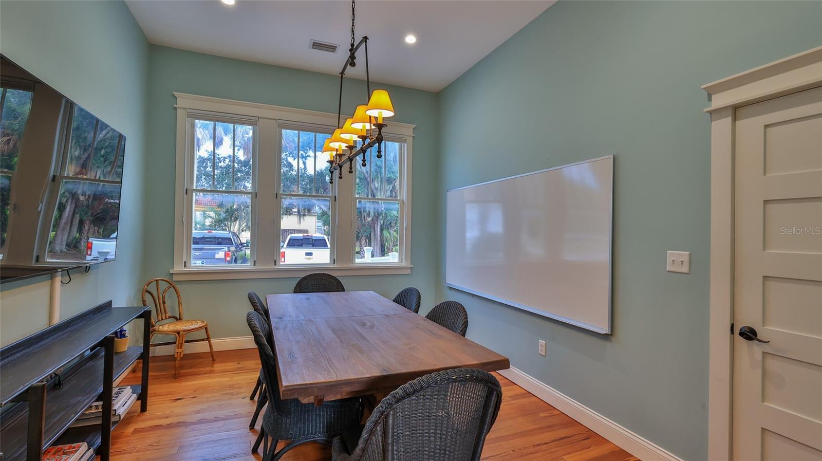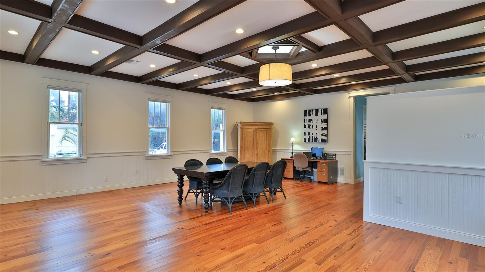 The perfect multi-use property located in the New Smyrna Historic District is a spacious and versatile commercial property that has many attractive features. The property's corner location on a double lot and private parking lot provides ample space and convenience for customers and employees. The hardwood floors throughout the property add warmth and character, and the full kitchen and bathroom are practical and convenient amenities. The reception area and conference room are perfect for meeting with clients or hosting events, while the four individual offices offer private workspaces for employees or tenants. The loft and open bonus space provide additional versatility and could be used for various purposes, such as storage, extra office space, or even residential living space. Its a great investment opportunity for any business owner looking for a versatile space in a historic and attractive location.