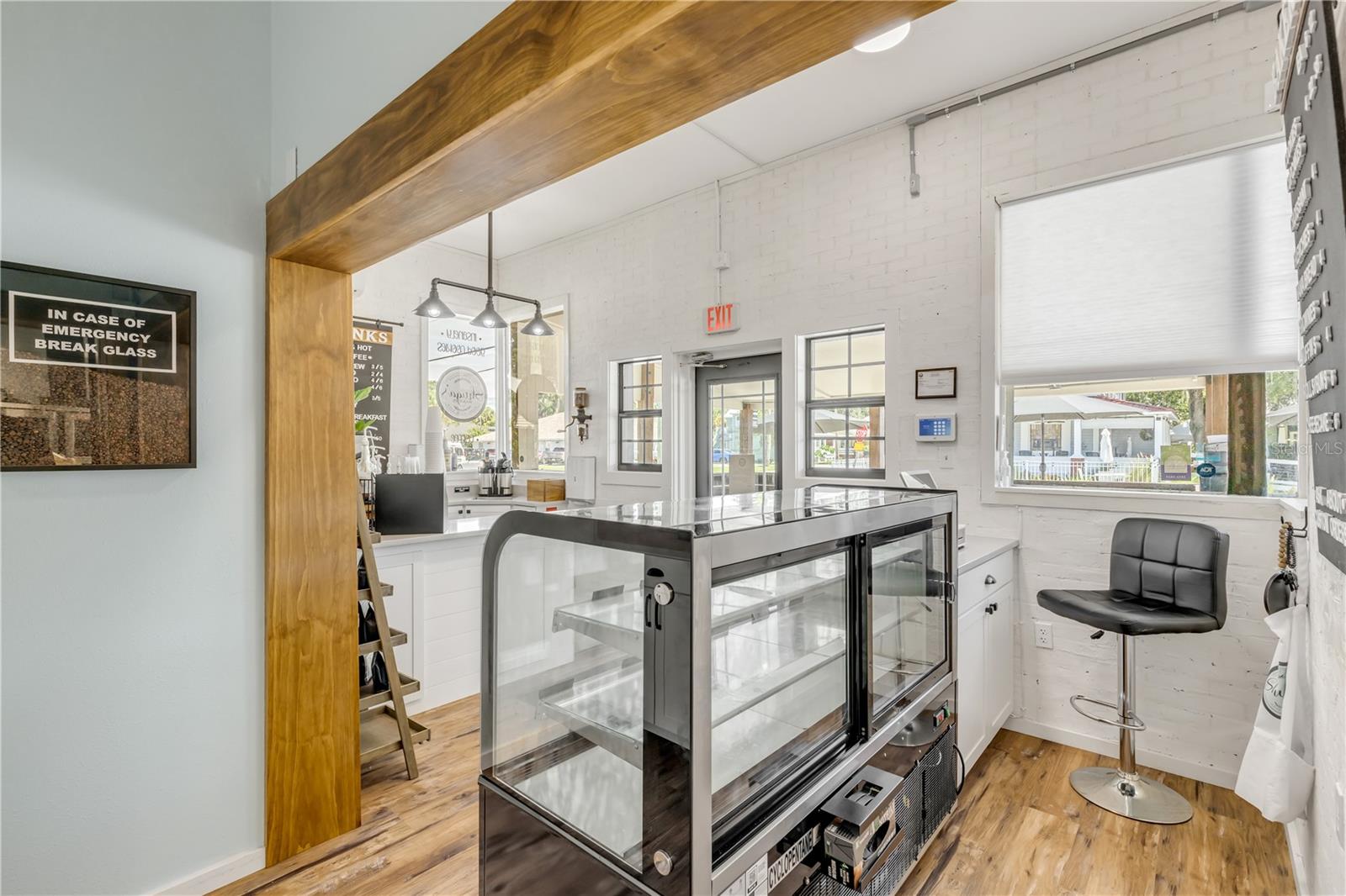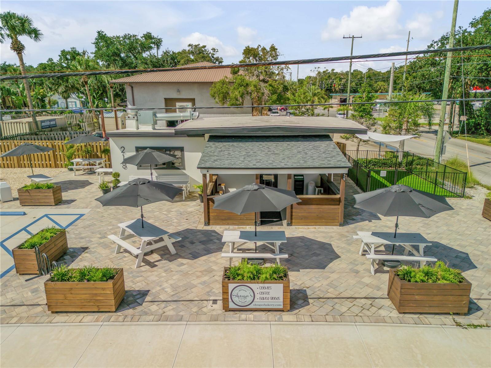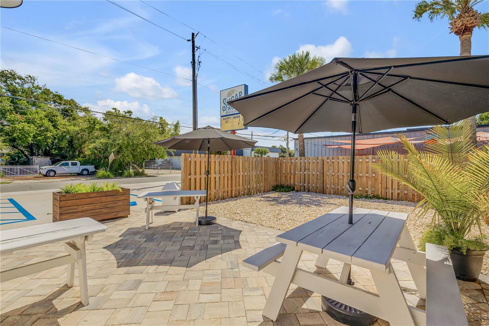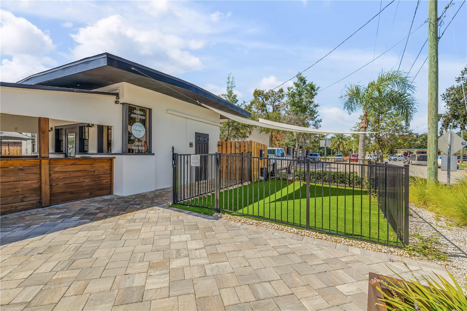 Located at the busy intersection of Washington St and N Orange St in New Smyrna Beach, this fully renovated bakery offers an incredible opportunity for both investors and business owners seeking high-traffic visibility from two major roads, with additional exposure from nearby US-1. Every inch of this commercial property has been meticulously updated and enhanced, providing a turnkey solution for anyone looking to enter a business-ready space. The property has undergone a complete transformation, starting with the excavation of the old concrete and plumbing, which were replaced with all-new infrastructure. The newly poured concrete is complemented by modern pavers and a professionally designed outdoor area featuring irrigation, drip lines, and fresh landscaping. To create an inviting space for both customers and their pets, a custom dog play area was added, surrounded by new privacy fencing, making this bakery a truly unique destination where guests can enjoy their experience while their dogs play. The building’s exterior was rebuilt with care. New stucco, fresh paint, and a fully redone roof ensure the structure is sound and visually appealing. Two brand-new split AC units were installed to ensure a comfortable environment, and ADA accessibility has been incorporated throughout the property to meet all compliance standards. Additionally, the building has been equipped with brand-new windows and hardwired security, offering peace of mind and a professional, updated look. Inside, the bakery is equipped with state-of-the-art commercial appliances, all included in the sale. A Blodgett convection oven, double gas oven, and a “True” commercial refrigerator ensure that this space is ready for immediate business operations. The commercial kitchen also boasts large commercial sinks and a new grease trap, which is conveniently enclosed in a large storage pantry located at the back of the building. Natural gas has been run to the building, providing efficient service to the commercial appliances and water heater. No detail has been overlooked, with all new flooring and fixtures throughout, ensuring the entire interior feels fresh and modern. Additionally, future expansion has been thoughtfully considered, with PVC plumbing already laid beneath the patio in preparation for any future updates to Washington St. This corner property not only offers a fully upgraded facility but also promises unmatched business potential due to its prime location. The high traffic flow from Washington St and N Orange St, combined with proximity to US-1, makes this bakery an ideal spot for capturing the attention of both locals and visitors alike.