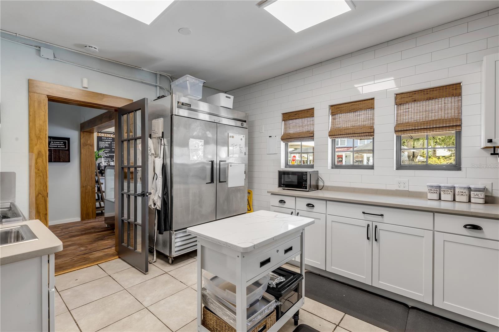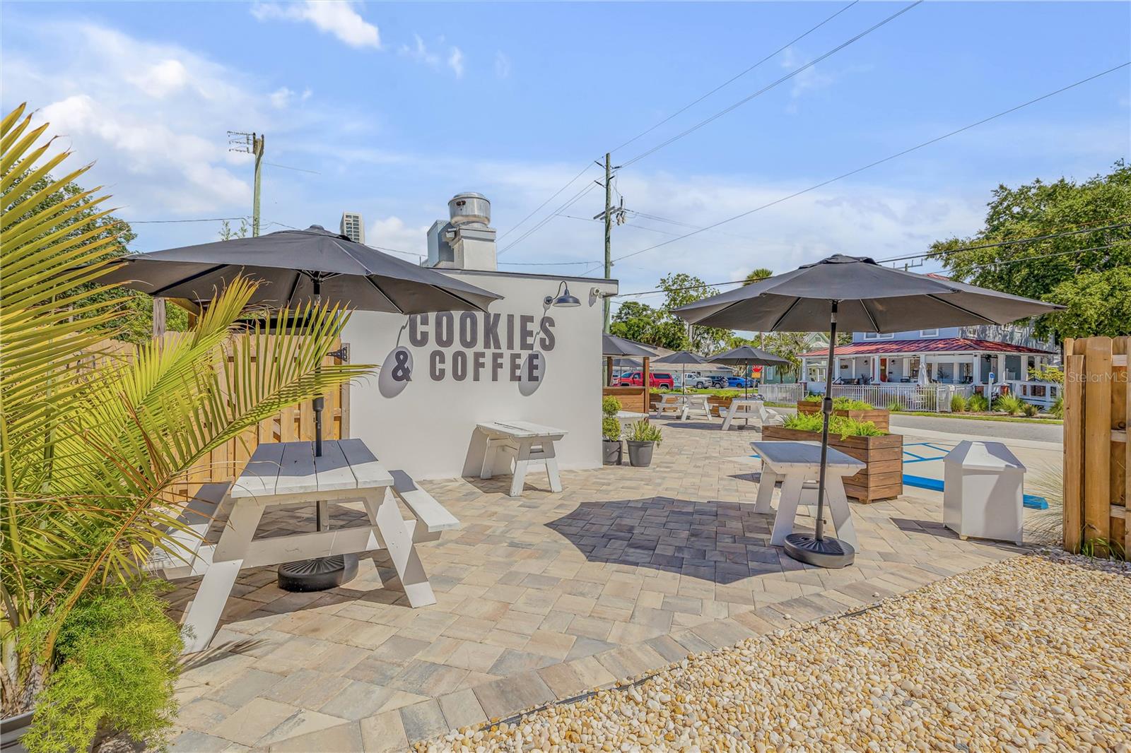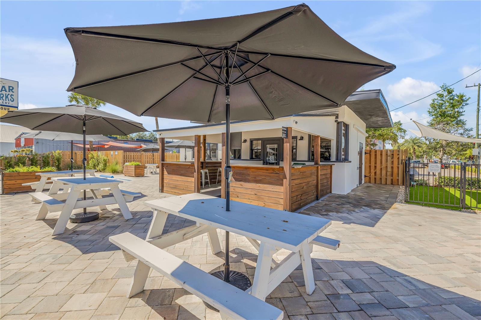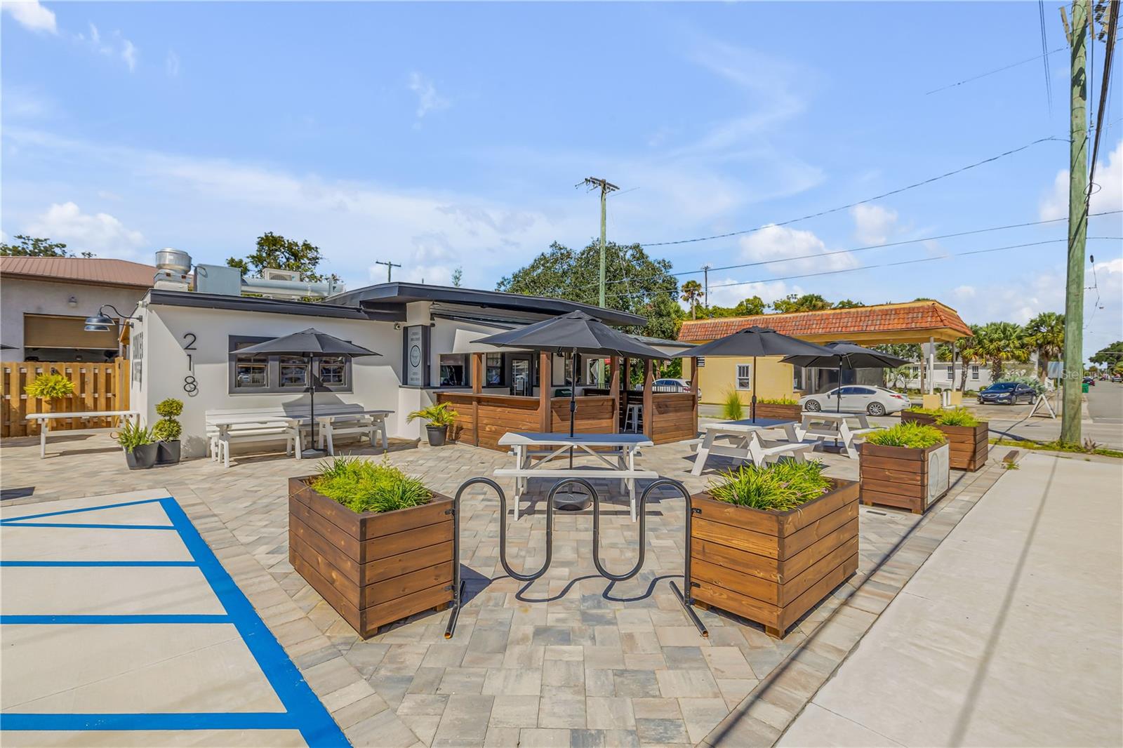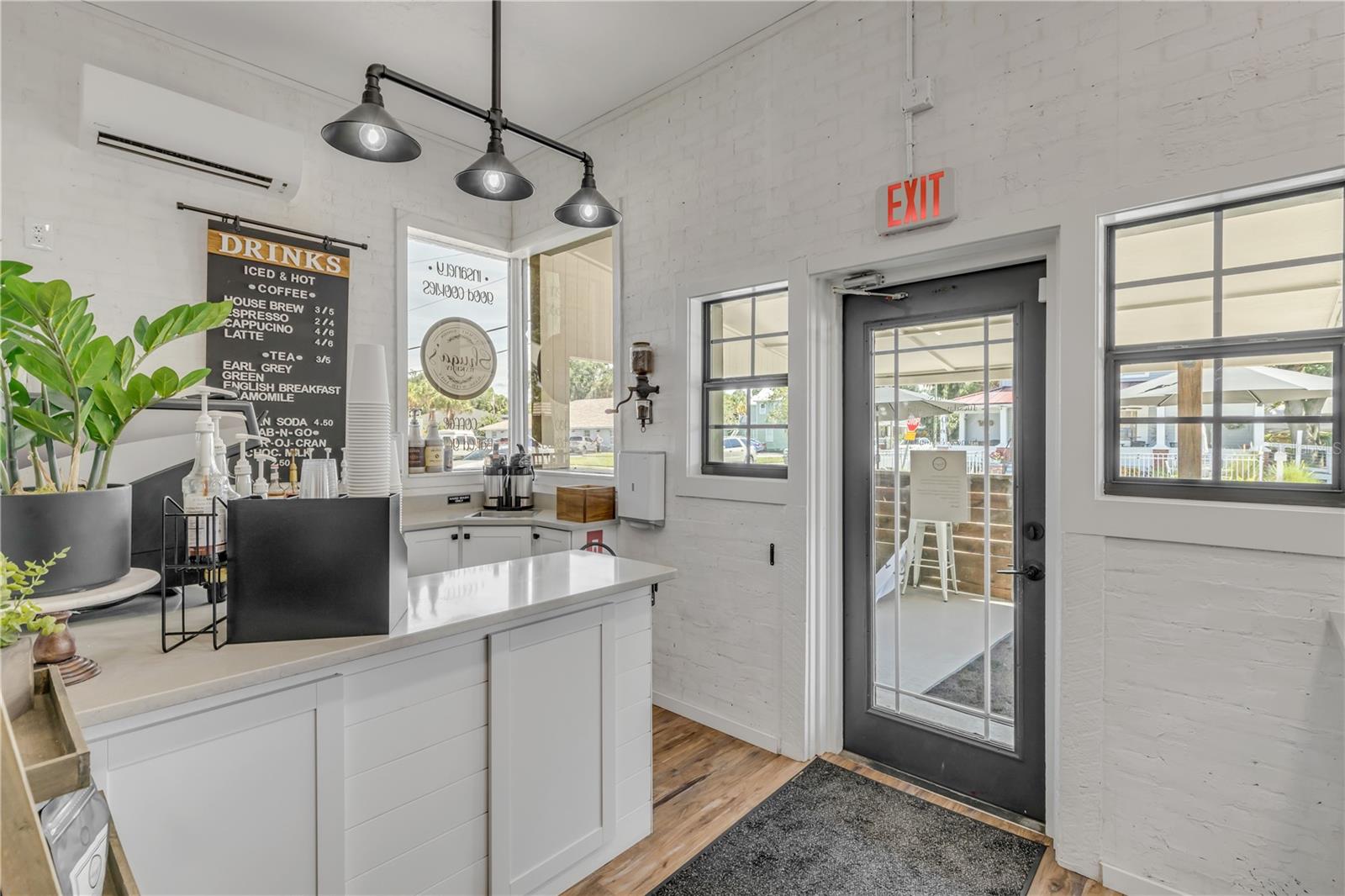 Located at the busy intersection of Washington St and N Orange St in New Smyrna Beach, this fully renovated bakery offers an incredible opportunity for both investors and business owners seeking high-traffic visibility from two major roads, with additional exposure from nearby US-1. Every inch of this commercial property has been meticulously updated and enhanced, providing a turnkey solution for anyone looking to enter a business-ready space. The property has undergone a complete transformation, starting with the excavation of the old concrete and plumbing, which were replaced with all-new infrastructure. The newly poured concrete is complemented by modern pavers and a professionally designed outdoor area featuring irrigation, drip lines, and fresh landscaping. To create an inviting space for both customers and their pets, a custom dog play area was added, surrounded by new privacy fencing, making this bakery a truly unique destination where guests can enjoy their experience while their dogs play. The building’s exterior was rebuilt with care. New stucco, fresh paint, and a fully redone roof ensure the structure is sound and visually appealing. Two brand-new split AC units were installed to ensure a comfortable environment, and ADA accessibility has been incorporated throughout the property to meet all compliance standards. Additionally, the building has been equipped with brand-new windows and hardwired security, offering peace of mind and a professional, updated look. Inside, the bakery is equipped with state-of-the-art commercial appliances, all included in the sale. A Blodgett convection oven, double gas oven, and a “True” commercial refrigerator ensure that this space is ready for immediate business operations. The commercial kitchen also boasts large commercial sinks and a new grease trap, which is conveniently enclosed in a large storage pantry located at the back of the building. Natural gas has been run to the building, providing efficient service to the commercial appliances and water heater. No detail has been overlooked, with all new flooring and fixtures throughout, ensuring the entire interior feels fresh and modern. Additionally, future expansion has been thoughtfully considered, with PVC plumbing already laid beneath the patio in preparation for any future updates to Washington St. This corner property not only offers a fully upgraded facility but also promises unmatched business potential due to its prime location. The high traffic flow from Washington St and N Orange St, combined with proximity to US-1, makes this bakery an ideal spot for capturing the attention of both locals and visitors alike.