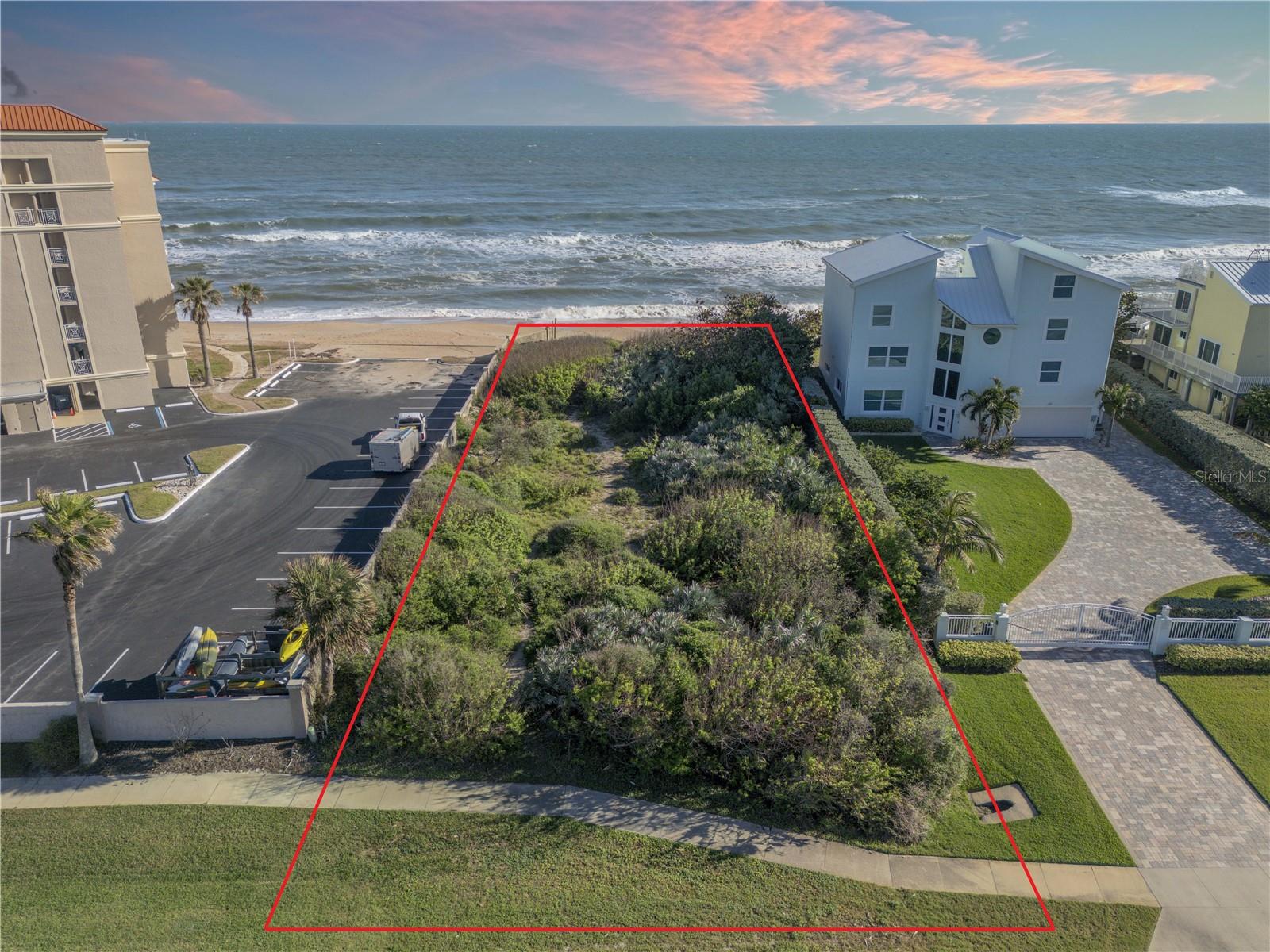 Opportunity to own a direct oceanfront property in New Smyrna Beach to build you family's oceanfront home. This exceptional 0.41-acre lot with 75 feet of ocean frontage, is ideally located on the no-drive section of New Smyrna Beach. Offering a blank canvas for your custom-designed home, this deep "raw land" parcel is ready to build. City water and sewer services are available. Wake up to stunning sunrises over the Atlantic Ocean, enjoy peaceful walks or bike rides along the quiet beach, and revel in the serene beauty of the nearby Canaveral National Seashore, just three miles south. At the southern end of Atlantic Ave is a boat ramp into the Intracoastal Waterway backwaters and approximately seven miles of pristine shoreline. Explore the best of New Smyrna Beach’s shops, parks, and acclaimed restaurants, all just a short drive away Plans available for a magnificent coastal-style residence spanning approximately 4,000 square feet of living space and nearly 6,400 square feet under roof. These plans, which took over three years to develop, allow for construction to potentially begin as early as 2025. Bring your beachfront living dreams to life on this premier oceanfront lot.