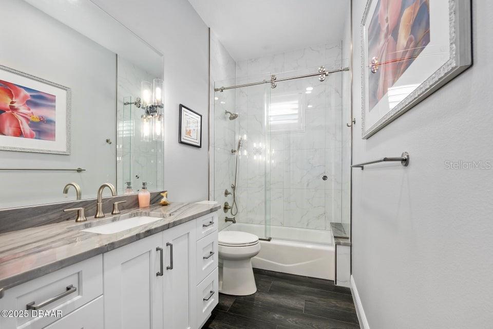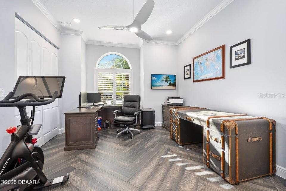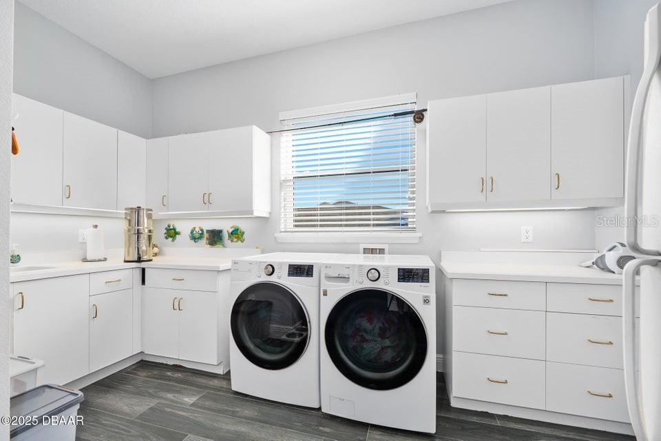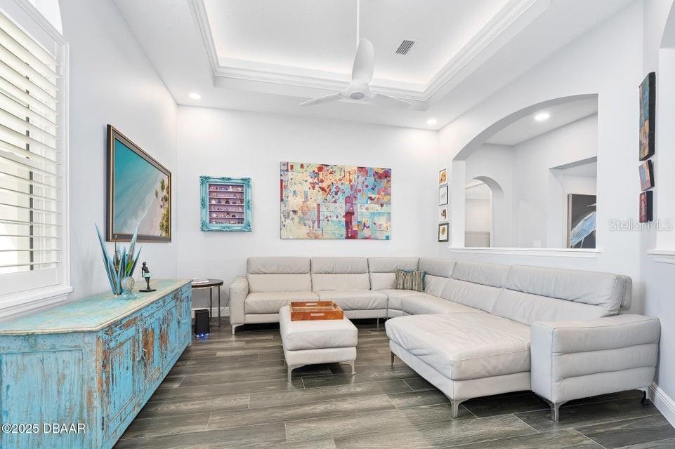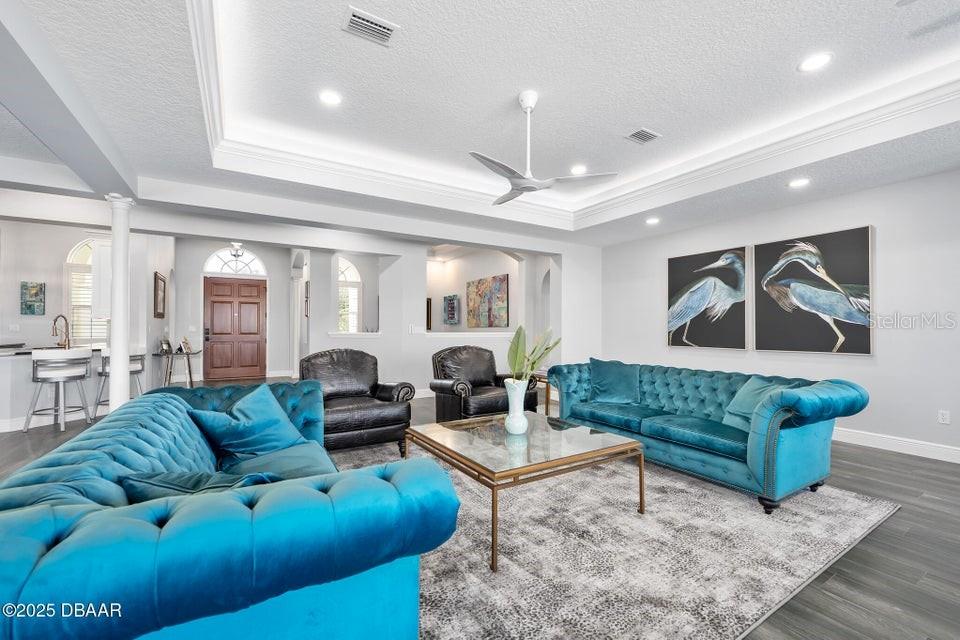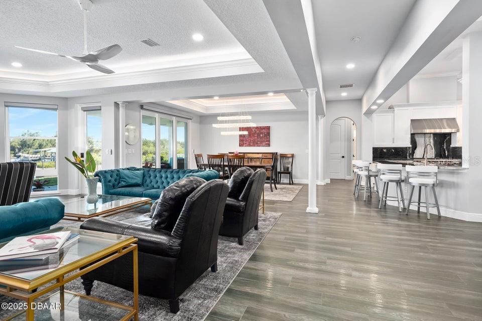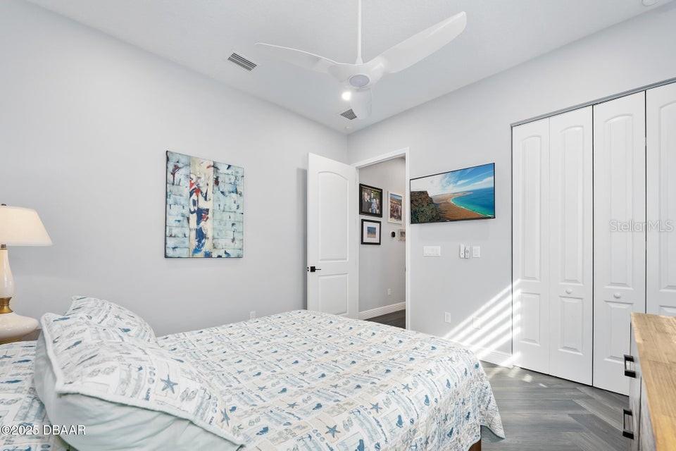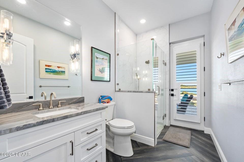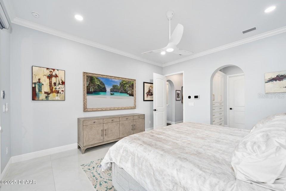 New Smyrna Beach deepwater at it's very best. Arguably the most sought after parcel in the beloved Inlet Shores community, this point lot gives way to long range water views down the Intracoastal and provides a front row seat to the wildlife and boat traffic that parade by daily. The custom 4 bedroom, 3 bath home with 3 car garage is perched on a gentle bluff with a fabulous waterfront lanai that serves as the owners' outdoor living room just above the pool, sprawling green lawn and new dock. Over the last year the owners have made a significant investment while the home underwent a complete interior and exterior renovation. The photos are lovely, but this property must be seen in person to be appreciated as no stone was unturned while contractors embarked on the tremendous task under the direction of a talented designer. Enter the home to be immediately greeted with panoramic water views through oversized windows and doors that create a wall of glass under volume ceilings. The main living and dining areas are all situated around the spectacular custom kitchen with stunning quartzite appointed over custom cabinetry complimenting the coastal contemporary interior spaces with a layout that is ideal for day to day relaxation or entertaining a crowd. The waterfront owners' suite is a true retreat with direct access to the covered patio and private spa. A cavernous walk-in with custom closet systems is just adjacent to the fantastic built-in wardrobe which sits just inside of the new luxury bath. Bedroom two is currently used as a home office and exercise room with a convenient optional door just off of the primary bath. A poolside waterfront guest suite is tucked into a quiet corner of the home with glass doors that open onto the covered patio and pool beyond. An adjacent bath services the guest room and doubles as a pool bath with an exterior door. The generous fourth bedroom is opposite a beautiful common bath. The architect left plenty of room for the imagination with a staircase leading to an unfinished bonus room above the garage that is currently vast storage, but could easily be finished as a 5th bedroom, game room or den. Step outside for unparalleled views of the water where the Intracoastal Waterway and Hunter Creek intersect and two natural mangrove shorelines create a serene backdrop that will never be developed. Truly an ideal position for a boater, sailor or yachtsman just inside of Ponce Inlet with a direct shot to the Atlantic Ocean through Rock House Creek in an outboard or a slightly lengthier course via the marked channel. The newly constructed and highly engineered dock with 16000lb lift and floating staging dock below has over 10' of water at low tide. On a falling tide, the baitfish from the estuary of Hunters Creek mingle with the larger river directly in front of the dock and it is not uncommon to see the surface of the water explode in a feeding frenzy. Whether fishing the mangroves, relaxing on Disappearing Island or heading out the inlet on the way to The Bahama Islands, there is not a more perfect location in this part of Florida than 59 Cunningham Drive. This 2009 built solid concrete block home warrants a personal visit to be appreciated and to realize the high level of renovations that include the entire interior with top of the line appointments, new impact windows and doors, new air conditioning systems, roof, dock and newly renovated paver appointed, heated, saltwater 30,000 gallon pool.