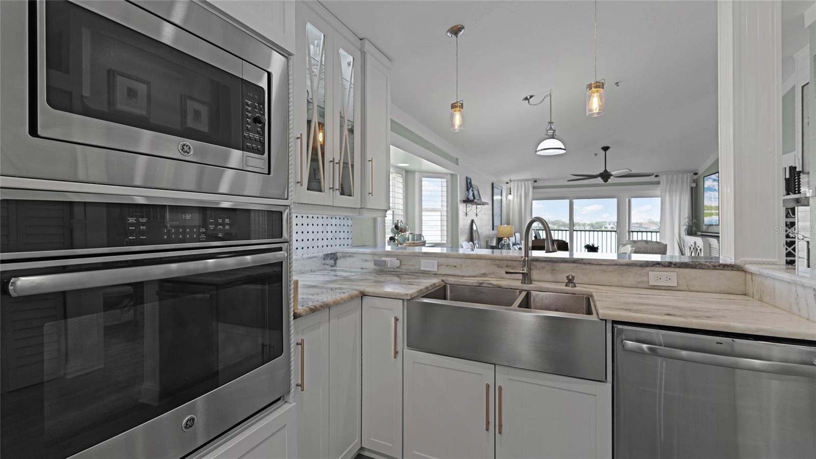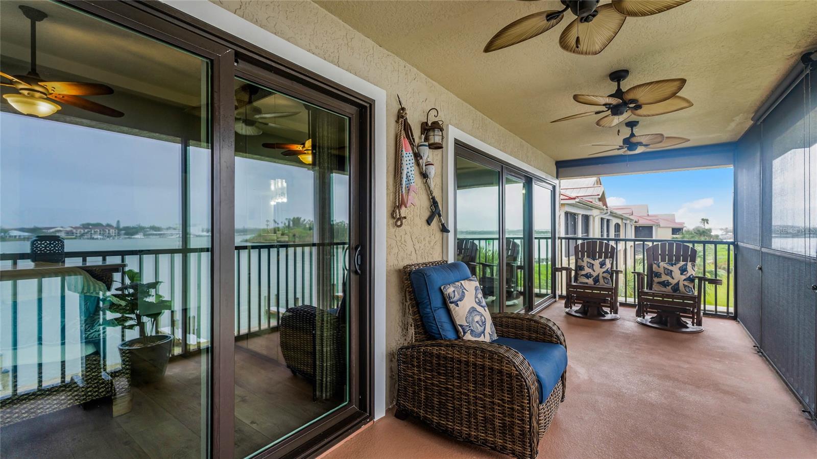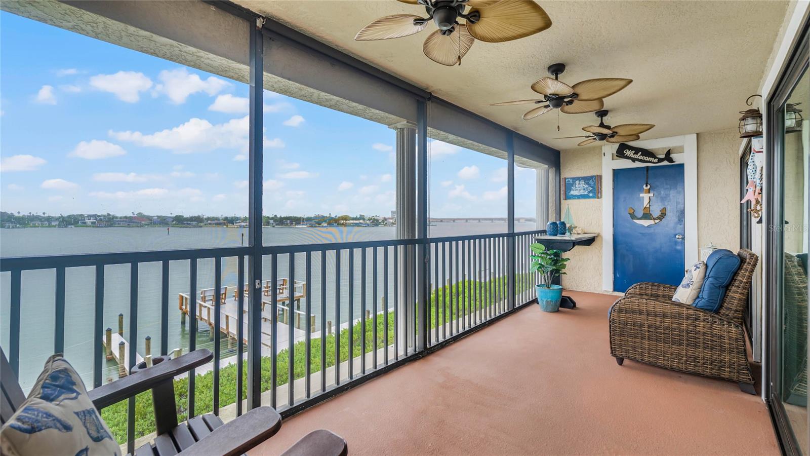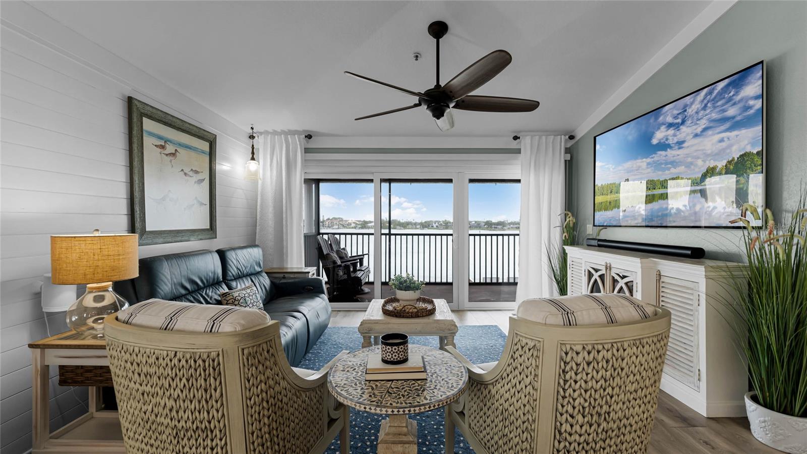 Direct waterfront on the Intracoastal! Fully furnished and move-in ready! Welcome home to your luxurious waterfront retreat at Bouchelle Island Condos - a top-floor, corner unit with elevator access offering breathtaking views of the Intracoastal Waterway! As you drive east over the Southern Causeway, look to your left and see the eye-catching terracotta roofs and striking views of Bouchelle Island Condos. This rare top-floor corner unit not only offers direct Intracoastal Waterway views, but also showcases stunning views of the Ponce de Leon Inlet Lighthouse beautifully lit against the night sky. Just over a mile from New Smyrna Beach’s 16-mile stretch of white sandy beaches, this is coastal living at its finest. Step inside to find an immaculately renovated unit filled with high-end finishes, stylish decor, and luxury furnishings that are included for an effortless move-in. The expansive, screened-in back patio is accessible from both your living area and primary bedroom and is perfect for taking in vibrant sunsets, watching dolphins glide by, and marveling at luxury yachts passing by. You'll also have a front-row seat for holiday boat parades and fireworks from the comfort of your own private oasis. Enjoy a quick drive, bike ride, or leisurely 1.6-mile walk to Historic Downtown New Smyrna Beach, where shopping, dining, and entertainment await along the famous Flagler Avenue and Canal Street. Residents of Bouchelle Island Condos embrace a resort-like lifestyle, with amenities including two sparkling heated pools, a clubhouse, fitness center, and a sports complex featuring newly renovated pickleball, tennis, and shuffleboard courts. Enjoy the boardwalk for evening strolls along the water’s edge. Just 8 miles from Cape Canaveral State Park, this is a perfect spot for beach and nature lovers alike. This condo itself is packed with custom upgrades, including hurricane-rated, high-impact, low-E insulated windows and 12-ft sliding patio doors, commercial-grade luxury vinyl plank flooring with top-rated soundproofing, and a completely updated electrical system with 200-amp wiring, LED lighting, and new fixtures. The modern kitchen is a chef’s dream, with custom cabinets, marble countertops, a stainless-steel farmhouse sink, KitchenAid convection stove, built-in microwave, and stainless-steel hood vent. The luxurious primary suite features a custom walk-in shower, vanity with marble countertop, stylish shiplap accents, and a large walk-in closet. The guest bath is equally impressive, featuring a relaxing jetted tub, new vanity, and custom barn doors. Stylish touches like shiplap in the living room, beadboard in the entryway, custom built-in electric fireplace, and custom trim throughout add character and charm. Cathedral ceilings enhance the spacious feel, while ample storage options include an attic and an outdoor closet complete with a full-size freezer. Experience luxury coastal living at its finest in this Bouchelle Island condo, where every detail has been thoughtfully upgraded for a beautiful, turnkey lifestyle. Don’t miss the chance to make this waterfront paradise your own!