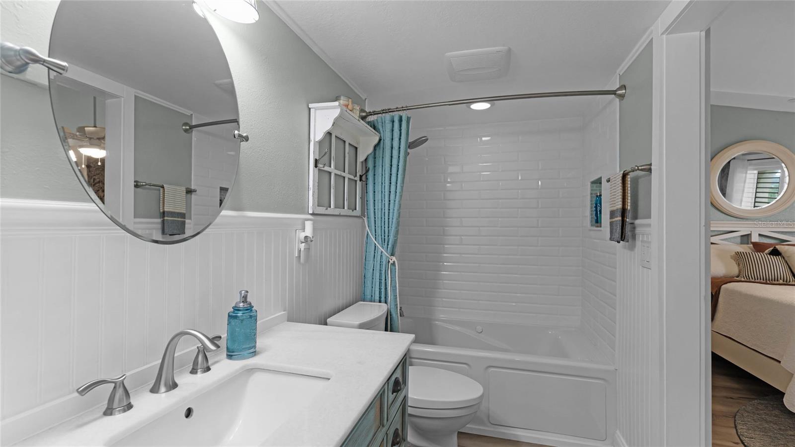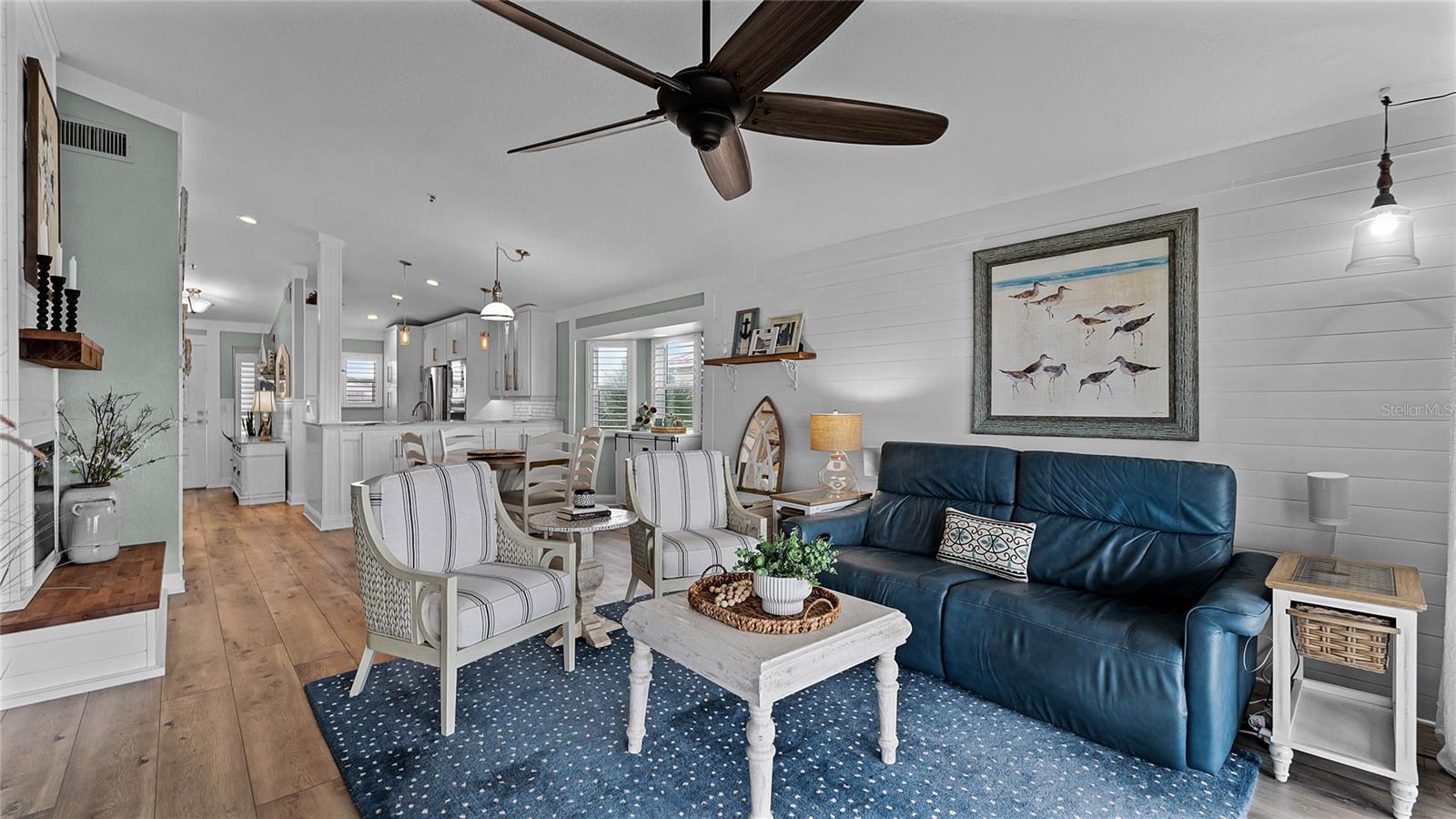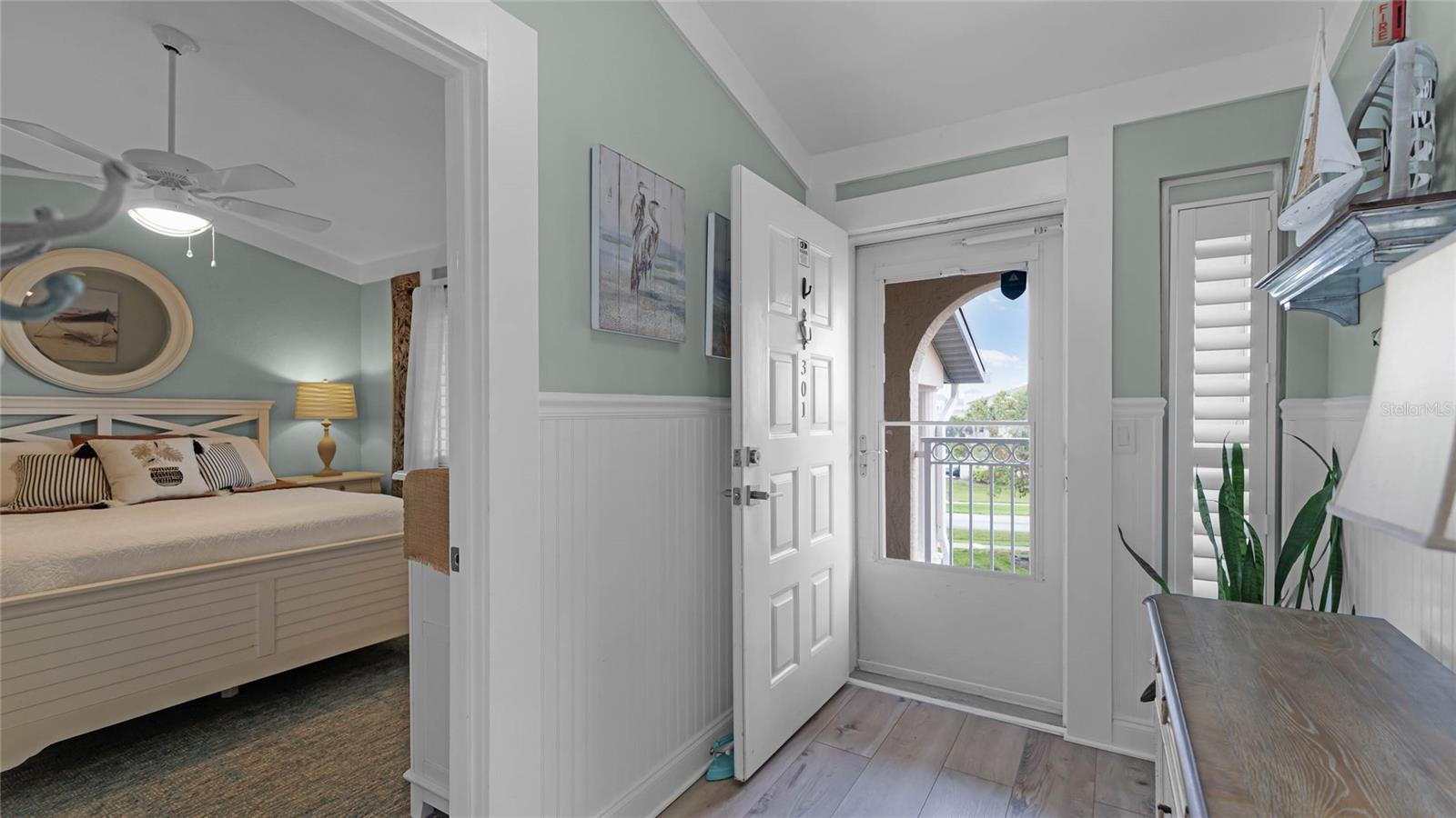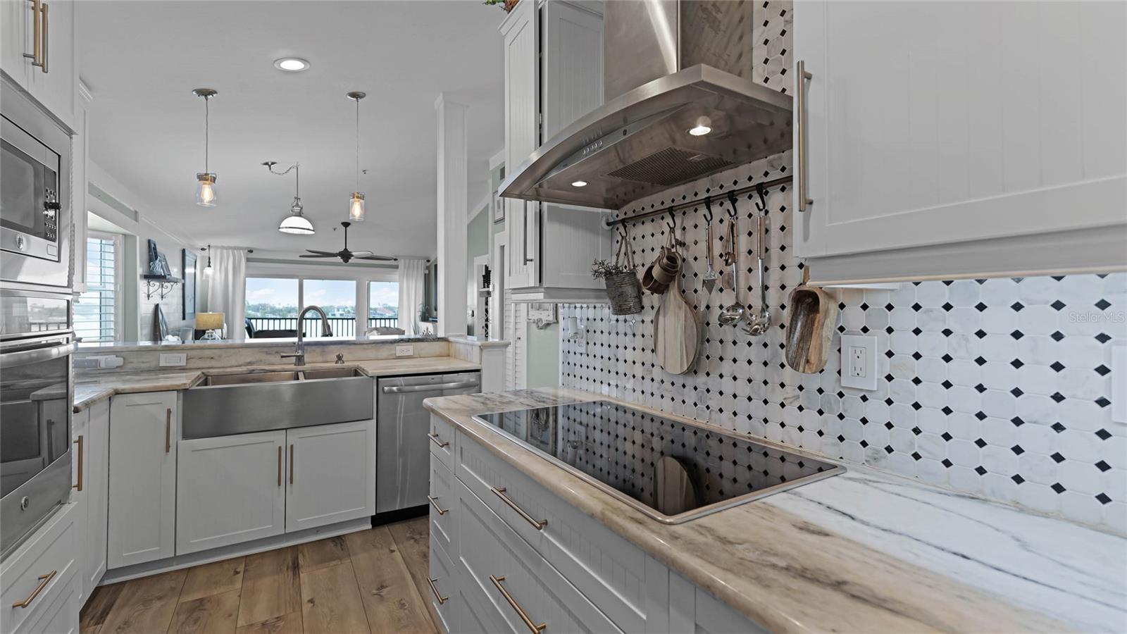 Direct waterfront on the Intracoastal! Fully furnished and move-in ready! Welcome home to your luxurious waterfront retreat at Bouchelle Island Condos - a top-floor, corner unit with elevator access offering breathtaking views of the Intracoastal Waterway! As you drive east over the Southern Causeway, look to your left and see the eye-catching terracotta roofs and striking views of Bouchelle Island Condos. This rare top-floor corner unit not only offers direct Intracoastal Waterway views, but also showcases stunning views of the Ponce de Leon Inlet Lighthouse beautifully lit against the night sky. Just over a mile from New Smyrna Beach’s 16-mile stretch of white sandy beaches, this is coastal living at its finest. Step inside to find an immaculately renovated unit filled with high-end finishes, stylish decor, and luxury furnishings that are included for an effortless move-in. The expansive, screened-in back patio is accessible from both your living area and primary bedroom and is perfect for taking in vibrant sunsets, watching dolphins glide by, and marveling at luxury yachts passing by. You'll also have a front-row seat for holiday boat parades and fireworks from the comfort of your own private oasis. Enjoy a quick drive, bike ride, or leisurely 1.6-mile walk to Historic Downtown New Smyrna Beach, where shopping, dining, and entertainment await along the famous Flagler Avenue and Canal Street. Residents of Bouchelle Island Condos embrace a resort-like lifestyle, with amenities including two sparkling heated pools, a clubhouse, fitness center, and a sports complex featuring newly renovated pickleball, tennis, and shuffleboard courts. Enjoy the boardwalk for evening strolls along the water’s edge. Just 8 miles from Cape Canaveral State Park, this is a perfect spot for beach and nature lovers alike. This condo itself is packed with custom upgrades, including hurricane-rated, high-impact, low-E insulated windows and 12-ft sliding patio doors, commercial-grade luxury vinyl plank flooring with top-rated soundproofing, and a completely updated electrical system with 200-amp wiring, LED lighting, and new fixtures. The modern kitchen is a chef’s dream, with custom cabinets, marble countertops, a stainless-steel farmhouse sink, KitchenAid convection stove, built-in microwave, and stainless-steel hood vent. The luxurious primary suite features a custom walk-in shower, vanity with marble countertop, stylish shiplap accents, and a large walk-in closet. The guest bath is equally impressive, featuring a relaxing jetted tub, new vanity, and custom barn doors. Stylish touches like shiplap in the living room, beadboard in the entryway, custom built-in electric fireplace, and custom trim throughout add character and charm. Cathedral ceilings enhance the spacious feel, while ample storage options include an attic and an outdoor closet complete with a full-size freezer. Experience luxury coastal living at its finest in this Bouchelle Island condo, where every detail has been thoughtfully upgraded for a beautiful, turnkey lifestyle. Don’t miss the chance to make this waterfront paradise your own!
