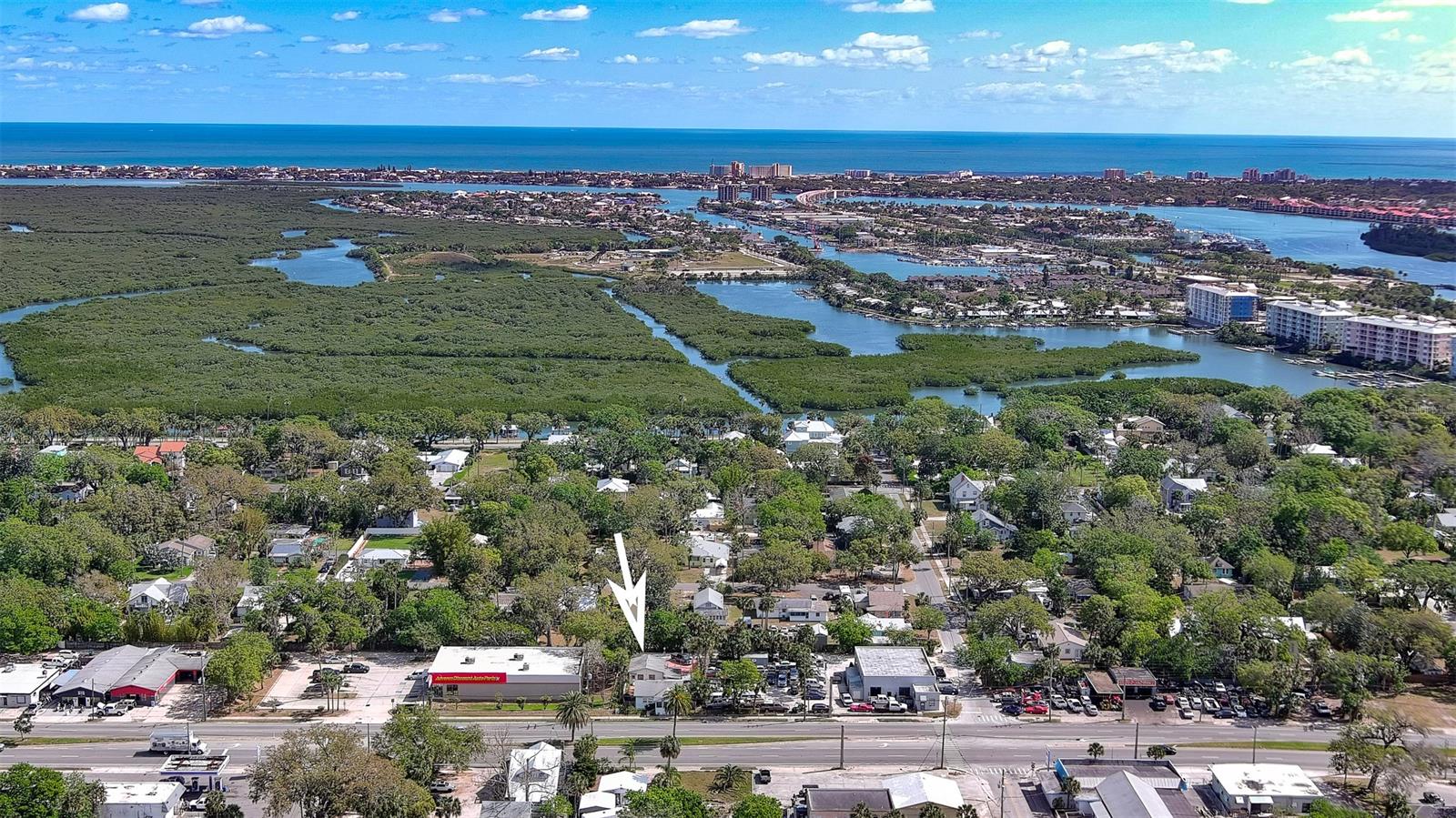 The perfect multi-use property! 2 bedroom, 1 bath with commercial workshop and 24x28 detached garage featuring 1/2 bath and 2 offices. Located in the New Smyrna Historic District with direct US 1/Dixie Freeway frontage and a backstreet entrance. Ideal for office use. 672 square feet workshop/garage/warehouse with 1/2 bath and laundry room. No history of flooding. Only 2.3 miles to the beach. New energy-efficient AC with heat pump installed in 2022.