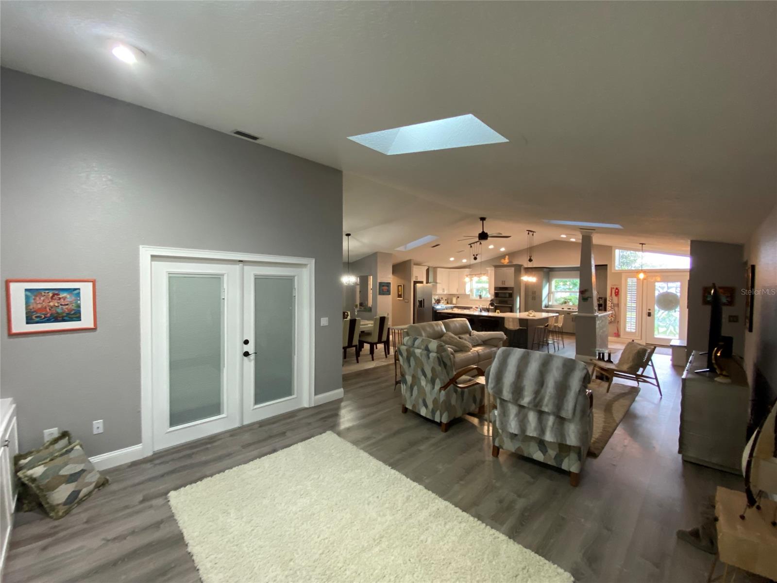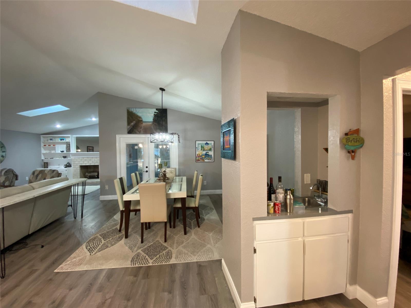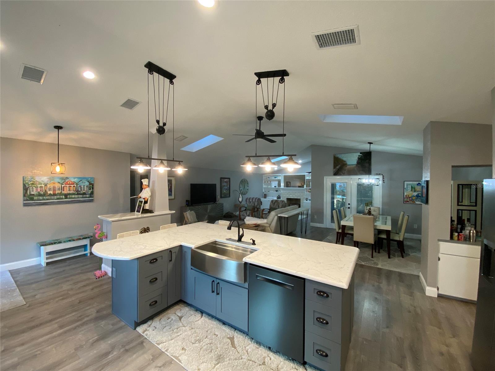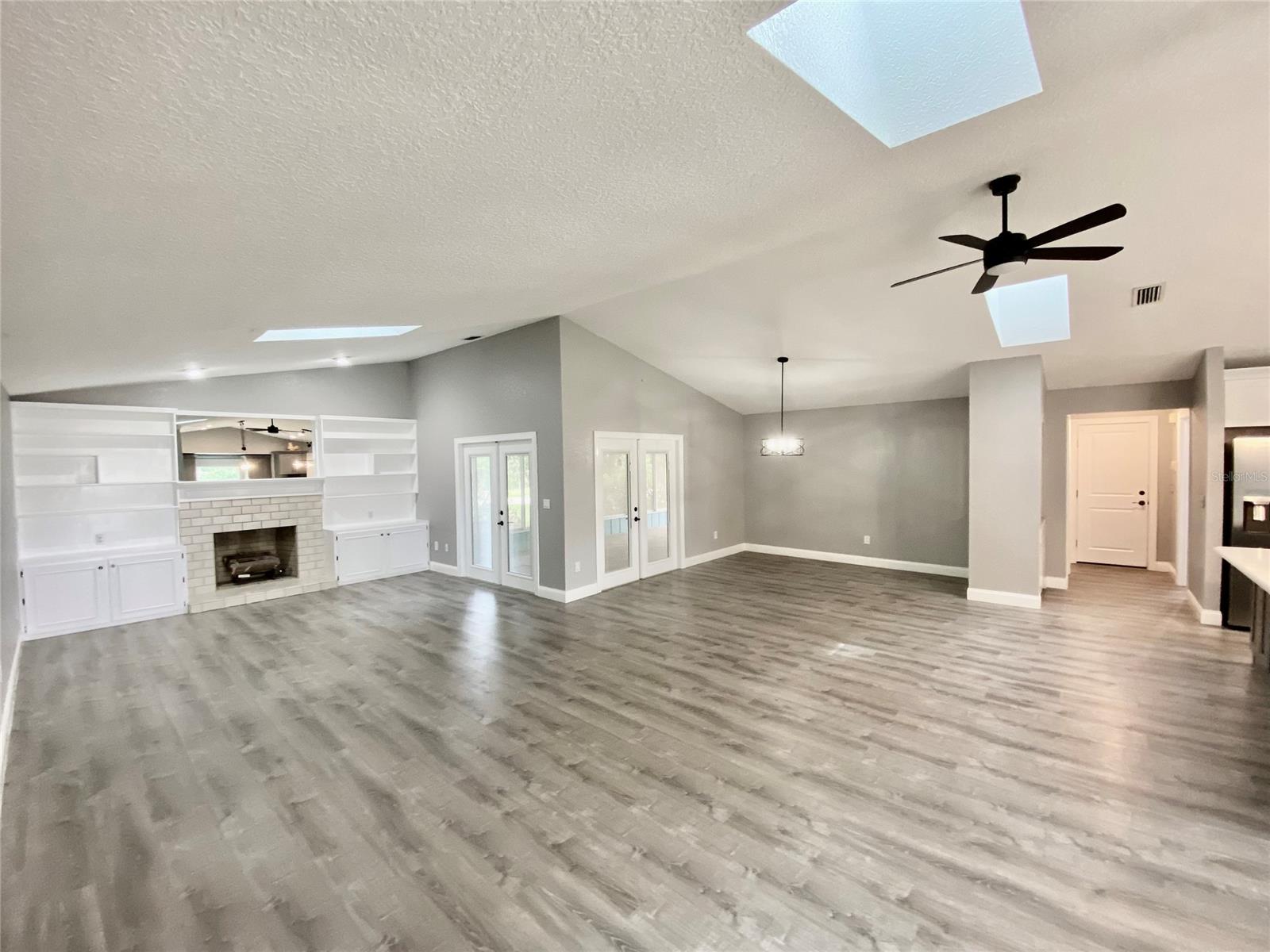 Welcome to 1031 Club House Boulevard, located in the desirable Sugar Mill Country Club neighborhood of New Smyrna Beach. This beautiful one-story home offers 2168 sqft of living space with 3 bedrooms and 2 full & 2 half baths on a 105x125 corner lot. Oversized 2 car garage with new opener and a NEW ROOF Oct 2023! Stepping inside you’ll be impressed by the gourmet kitchen complete with Quartz countertops, farm sink, stainless appliances and wood cabinetry with a huge island and bar offering convenience when entertaining guests or family gatherings alike! The high vaulted ceilings, ceiling fans, built in shelves and gas fireplace create a warm atmosphere throughout while luxury vinyl tile flooring adds modern style underfoot. Oil bronze fixtures and new panel doors provide luxurious detail throughout as well as two skylights adding natural light from above. Plus there's even more convenience found in the adjacent laundry room complete with half bathroom so no need to travel far when doing chores around the house! Windows and French doors have been updated for added protection all around. The exterior of this property boasts an irrigation system with well and new pump for easy lawn maintenance, plus plenty of room to add a pool if desired or mature foliage for privacy. The rear screened porch is perfect for enjoying peaceful outdoor living year round and French doors allow natural light to flow into the main living space within and a peak of the golf course view. Pool rendering provided by Bob Harold All Seasons pool (has not been approved by HOA but sole purpose to provide ideas if someone is interested in a pool). Gas Water Heater 2022, AC 2009, Roof Oct 2023, termite contract through Ryan's Pest Control, Transferrable Home Warranty through 2-10 Home Buyer Warranty