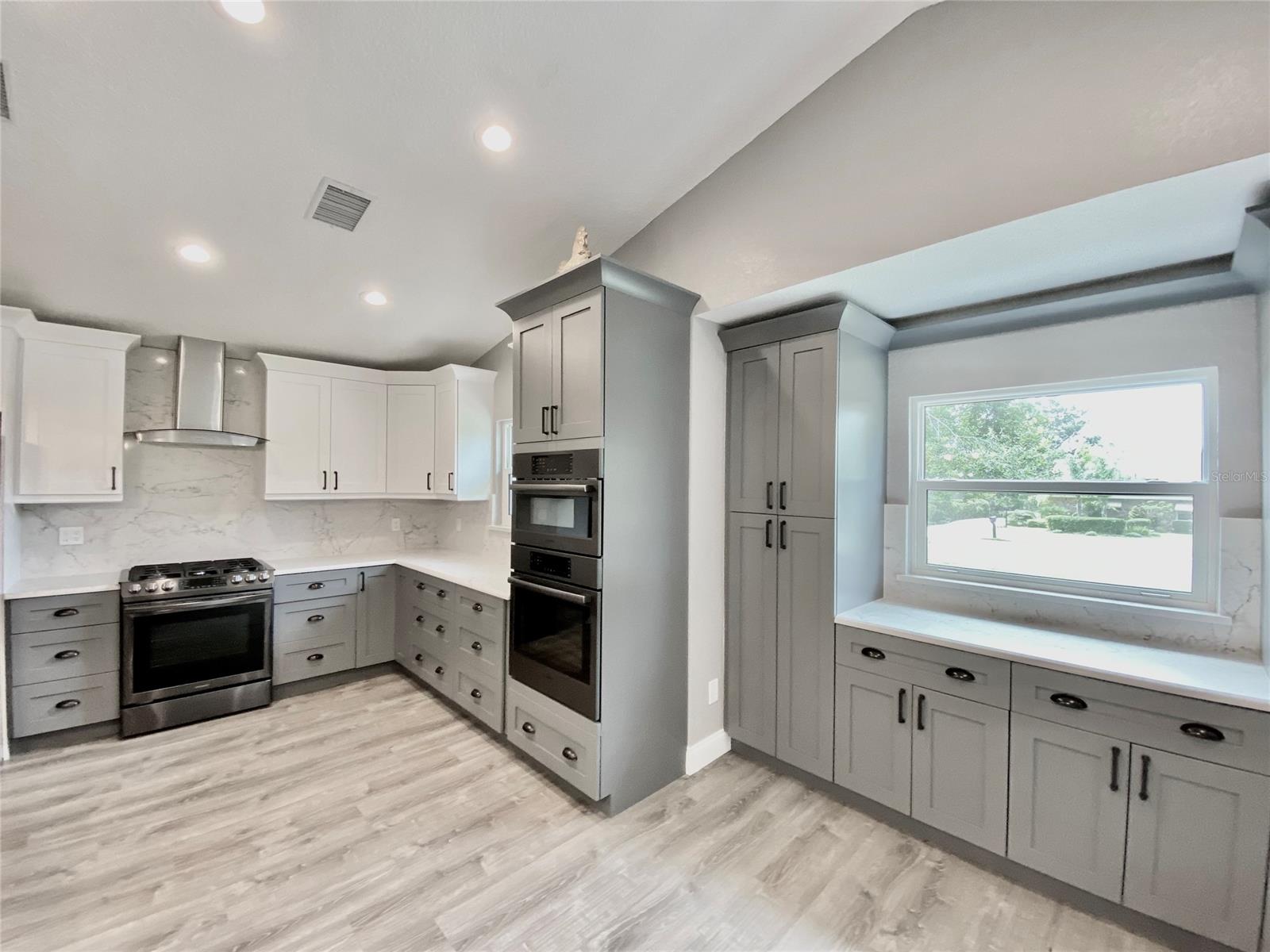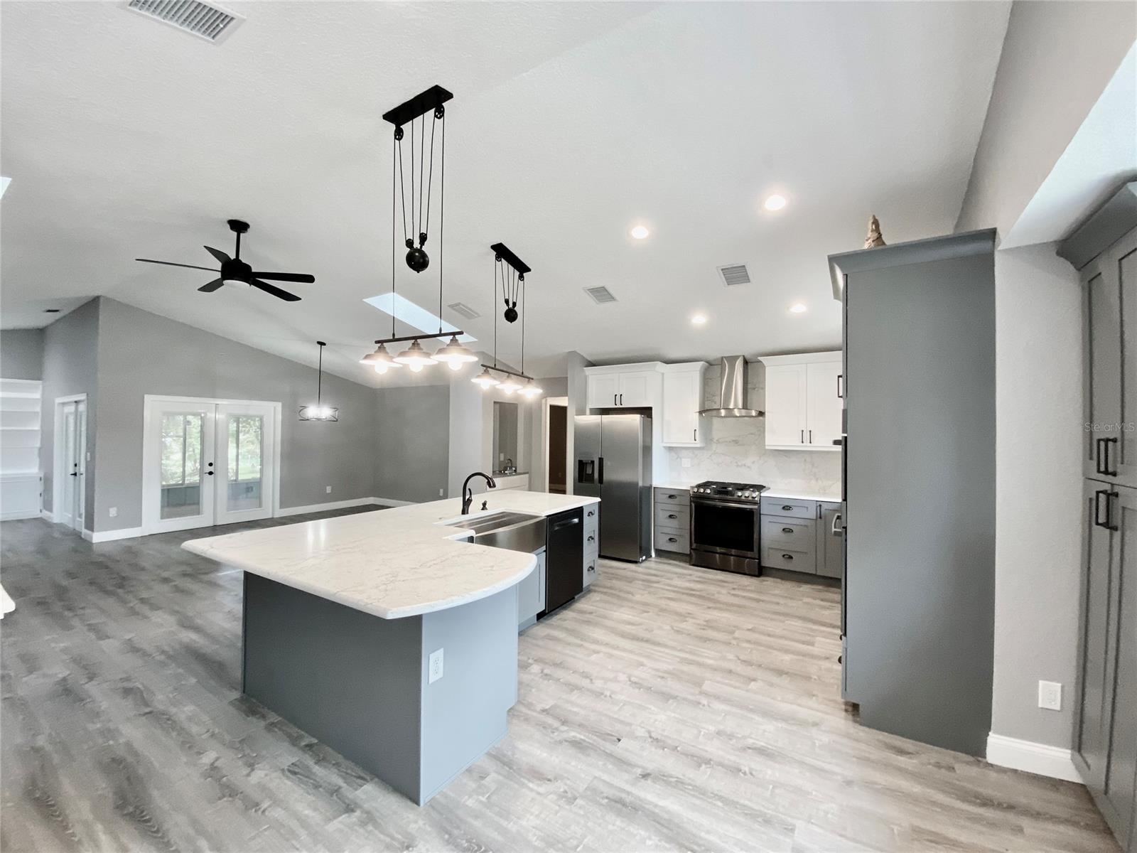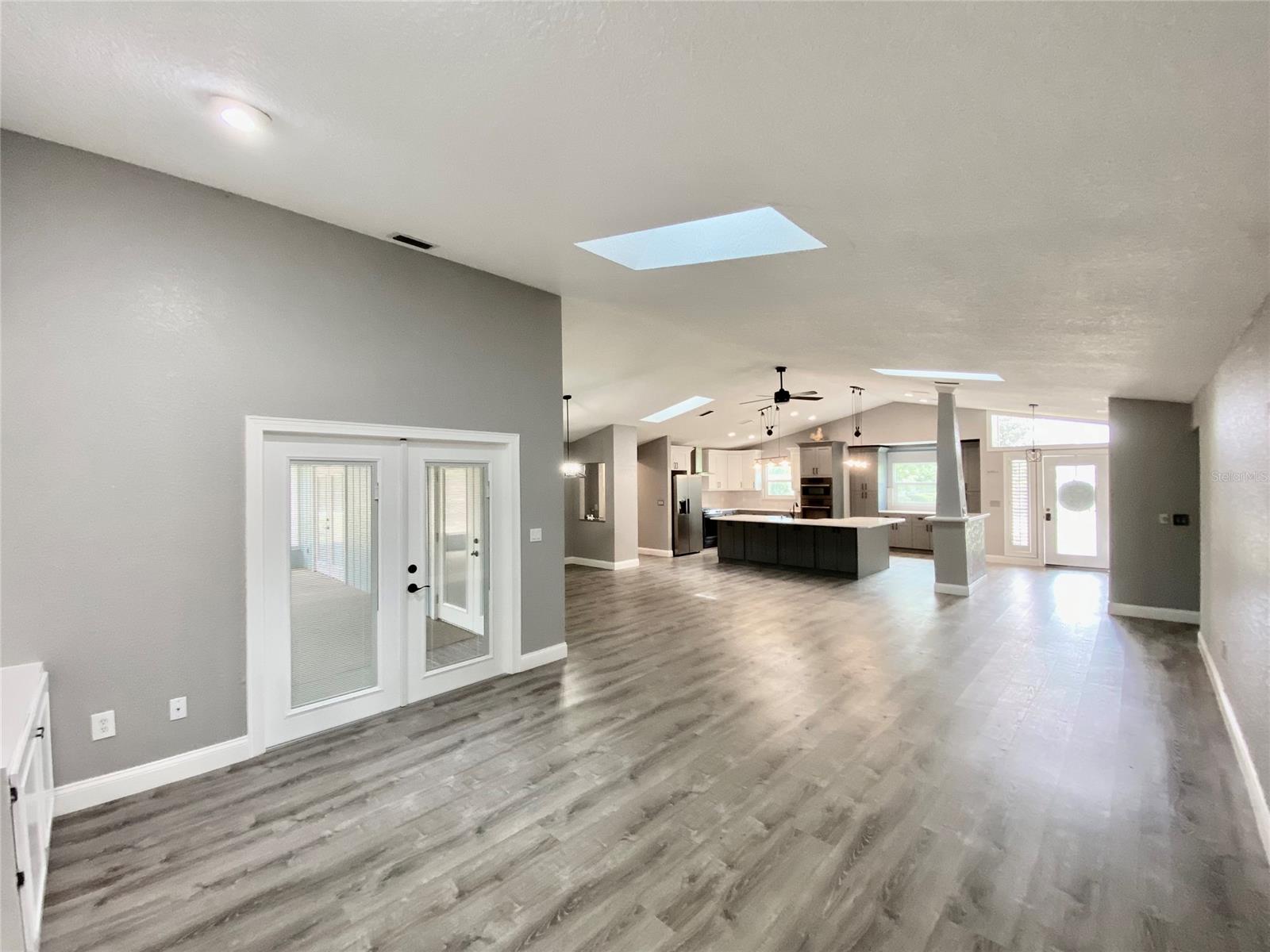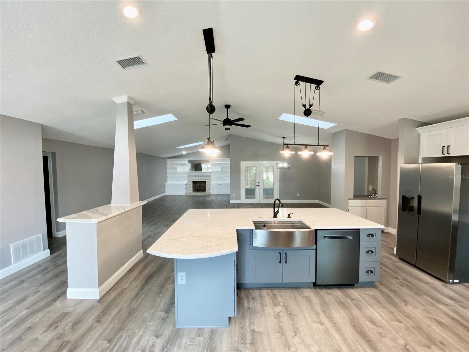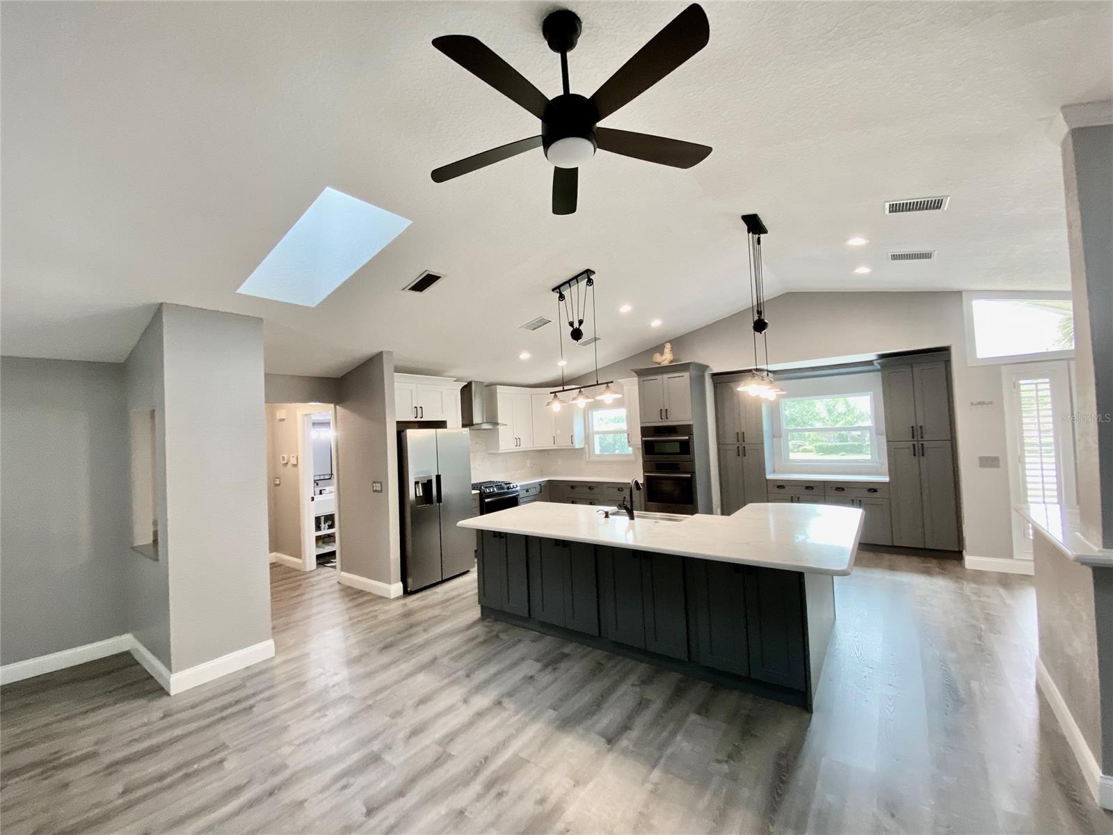 Welcome to 1031 Club House Boulevard, located in the desirable Sugar Mill Country Club neighborhood of New Smyrna Beach. This beautiful one-story home offers 2168 sqft of living space with 3 bedrooms and 2 full & 2 half baths on a 105x125 corner lot. Oversized 2 car garage with new opener and a NEW ROOF Oct 2023! Stepping inside you’ll be impressed by the gourmet kitchen complete with Quartz countertops, farm sink, stainless appliances and wood cabinetry with a huge island and bar offering convenience when entertaining guests or family gatherings alike! The high vaulted ceilings, ceiling fans, built in shelves and gas fireplace create a warm atmosphere throughout while luxury vinyl tile flooring adds modern style underfoot. Oil bronze fixtures and new panel doors provide luxurious detail throughout as well as two skylights adding natural light from above. Plus there's even more convenience found in the adjacent laundry room complete with half bathroom so no need to travel far when doing chores around the house! Windows and French doors have been updated for added protection all around. The exterior of this property boasts an irrigation system with well and new pump for easy lawn maintenance, plus plenty of room to add a pool if desired or mature foliage for privacy. The rear screened porch is perfect for enjoying peaceful outdoor living year round and French doors allow natural light to flow into the main living space within and a peak of the golf course view. Pool rendering provided by Bob Harold All Seasons pool (has not been approved by HOA but sole purpose to provide ideas if someone is interested in a pool). Gas Water Heater 2022, AC 2009, Roof Oct 2023, termite contract through Ryan's Pest Control, Transferrable Home Warranty through 2-10 Home Buyer Warranty