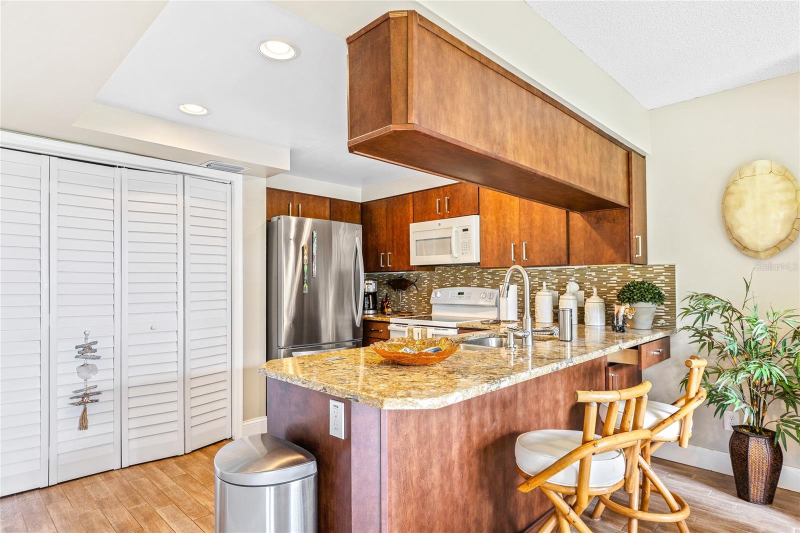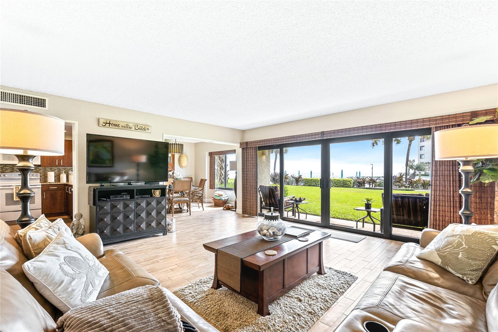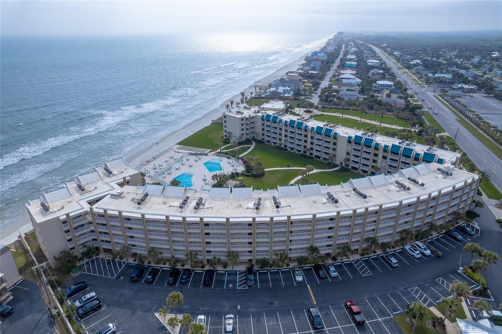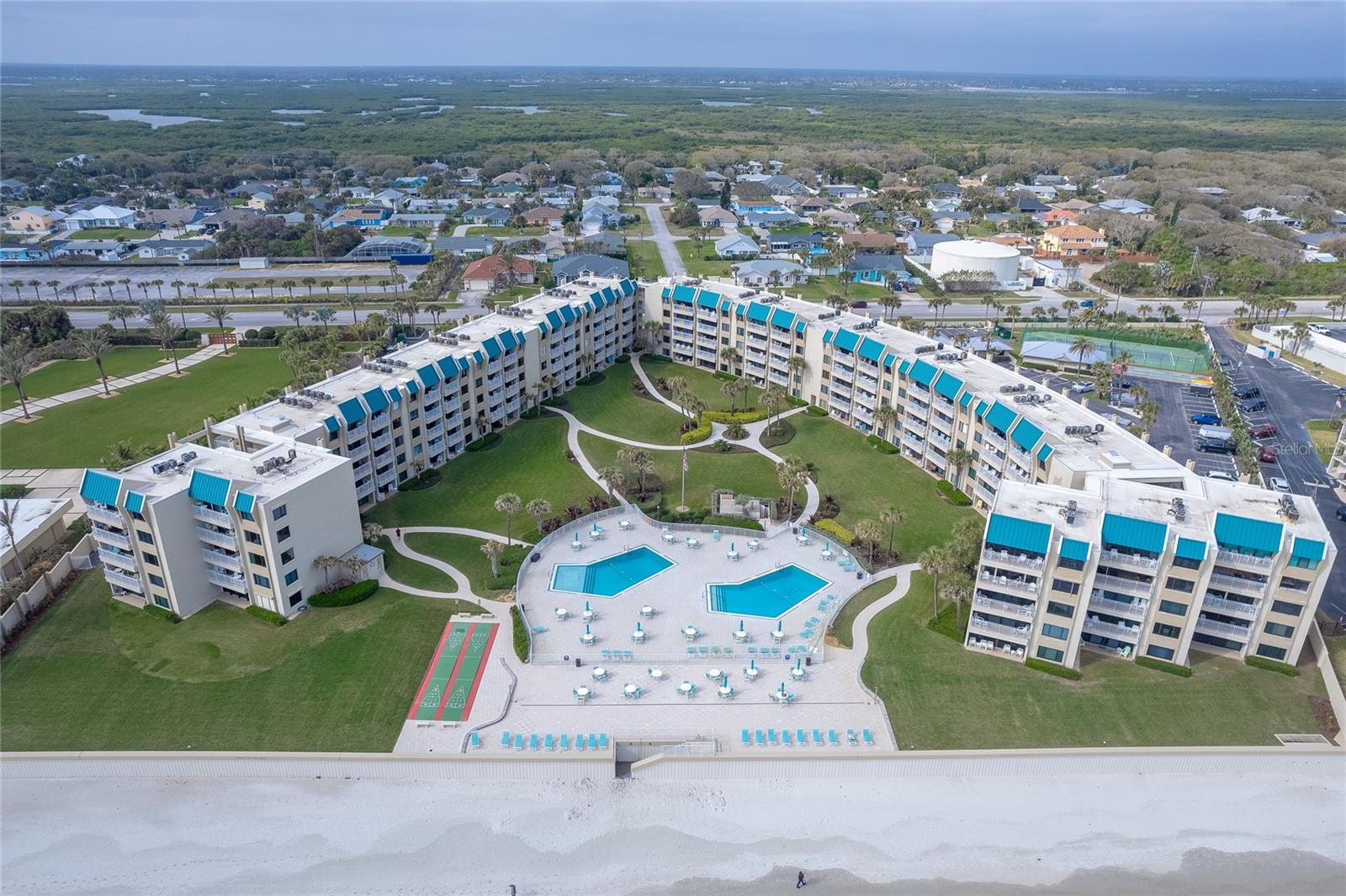 Owner is Motivated! Owner financing a possibility. Beach Lovers dream on the no drive beach in the coveted Errol-by-the-Sea community, New Smyrna Beach, FL! You will appreciate the totally remodeled open floor plan and balcony overlooking the manicured courtyard and pools. The flooring is exceptional with tile that appears to be wood. This 2-bedroom, 2-bathroom first floor condo offers the ultimate coastal living experience. Step inside this meticulously maintained unit to discover a totally renovated kitchen with a new refrigerator and built in stackable washer/ dryer installed in 2022. A new A/C unit was installed in May 2021. Errol by the Sea offers an array of amenities, including two pools with one heated, a clubhouse, tennis and shuffleboard courts. This unit is being sold furnished with beautiful furniture and appliances, move-in ready. Surrounded by lush landscaping, this condo epitomizes tranquil beachfront living. Beyond the amenities, direct beach access invites you to enjoy New Smyrna's sandy shores and stunning sunrises. This oceanfront retreat caters to diverse needs, whether it's a permanent residence, vacation getaway, or investment opportunity. Schedule a showing today!