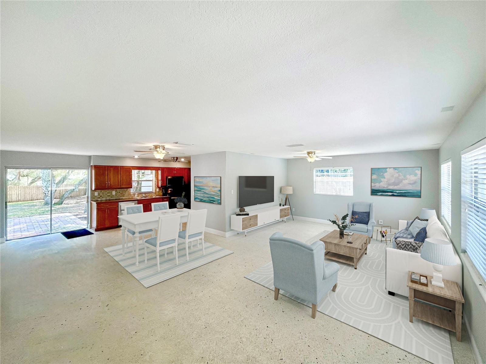 Welcome to your new beach house! This sturdy concrete block home has terrazzo floors that have just been refinished and open floor plan. Home has just been repainted inside and out. Huge yard that is shaded by a beautiful mature oak. Just steps from beach and close to shopping, parks, walking & biking trails and river access with kayak & paddleboard ramp. New a/c and electrical panel in 2022