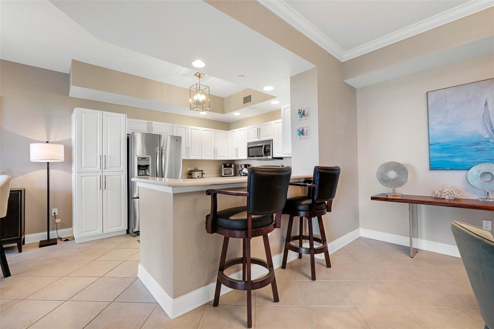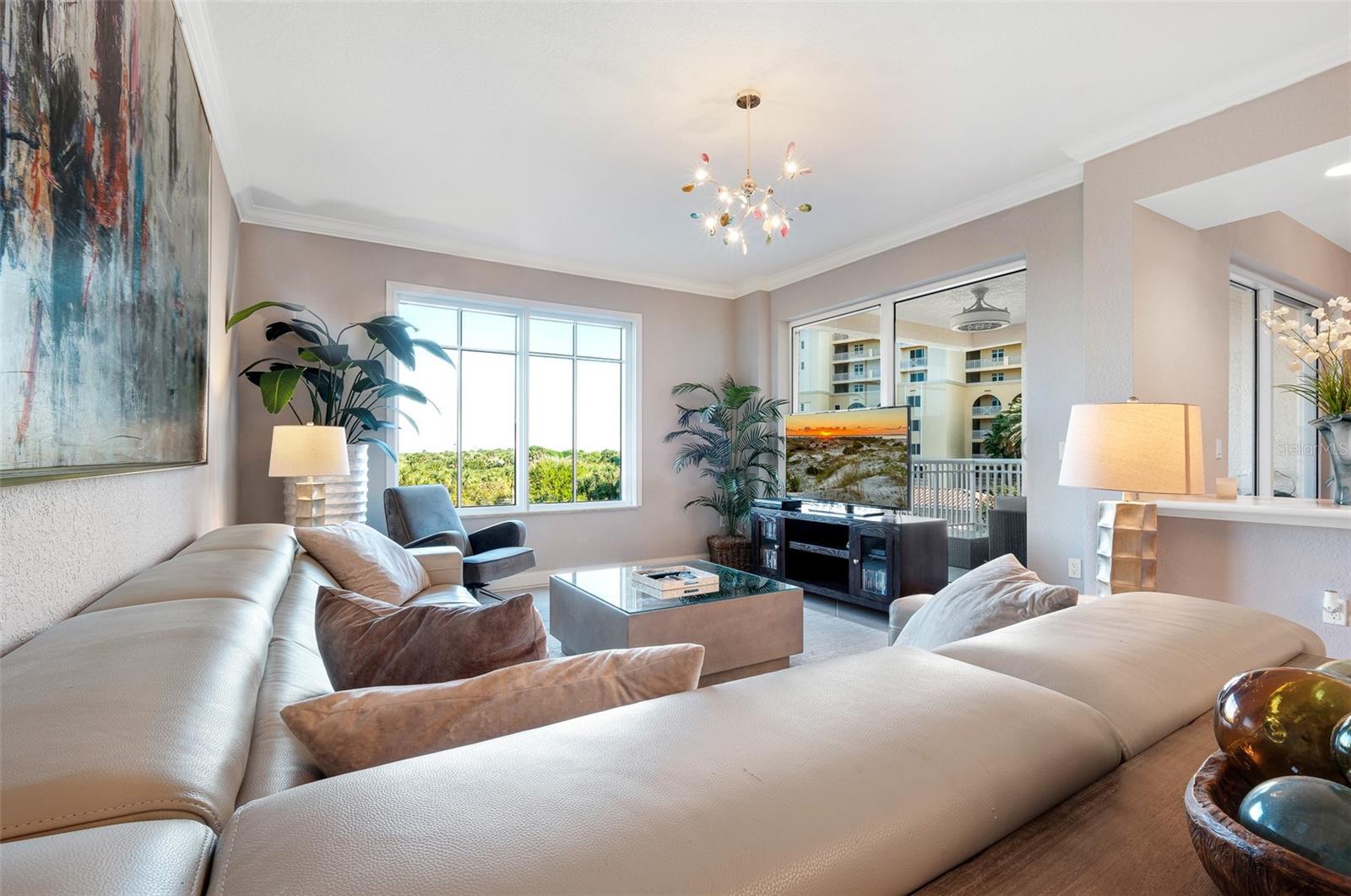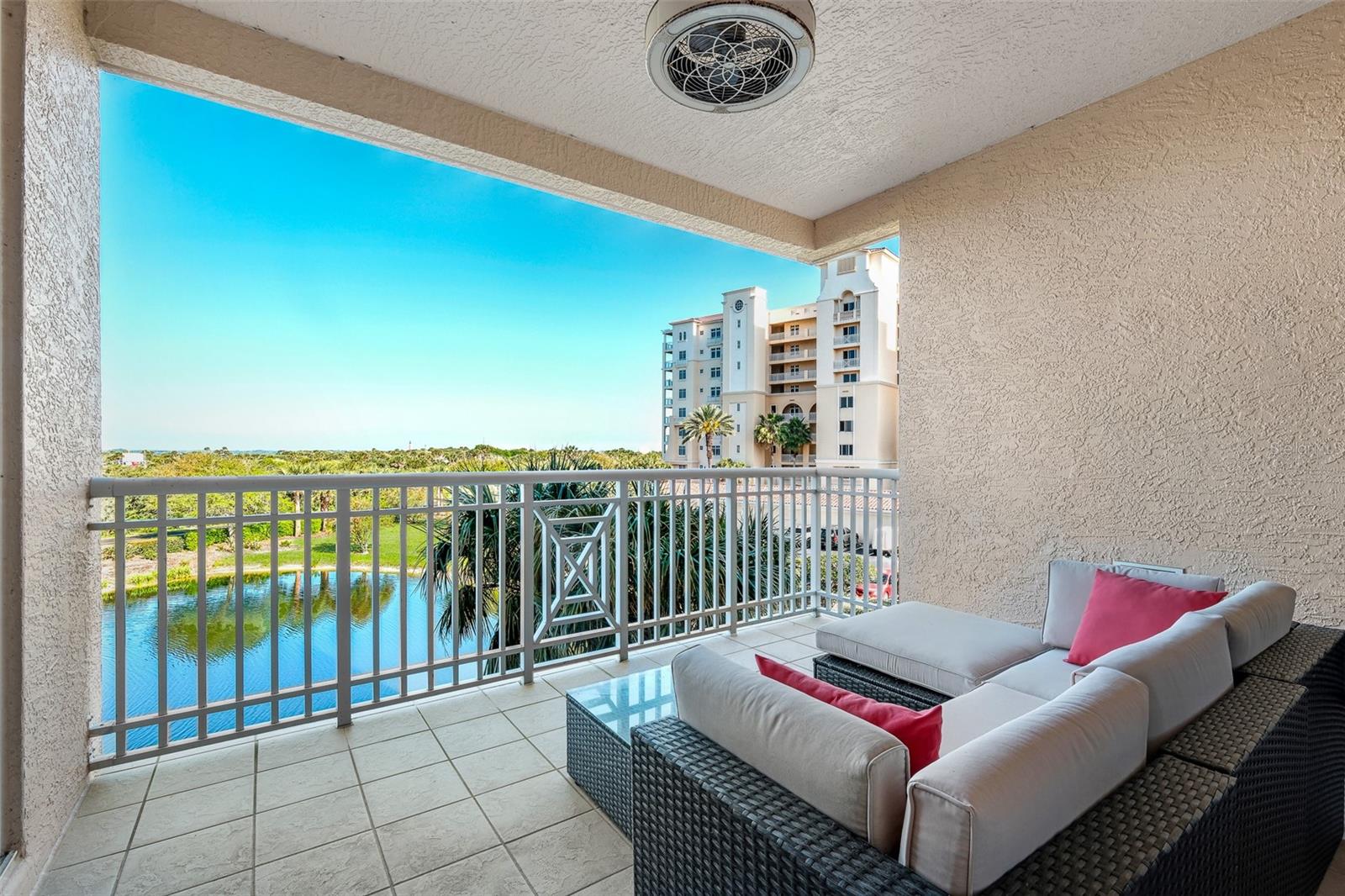 Classy, fully furnished condo in the desirable Minorca complex. Located in the Evissa building, this spacious Indigo floor plan (1655 sq ft) offers beautiful views of the Intracoastal Waterway and features contemporary furniture, art and fixtures throughout. Experience incredible sunsets and ocean breezes from the spacious patio and enjoy everything that the oceanfront Minorca complex has to offer - swimming year-round in the heated pool and spa, lighted clay tennis courts, a private fitness center and a spacious, rentable club house with a pool table, tvs and catering kitchen. Located at the far north end of New Smyrna Beach, this resort like community offers tons of amenities, including 24 hr security, gated access to the 64 slip marina and a private river gazebo with grills for barbecuing and racks for storing kayaks and paddle boards. All walking distance to our world famous beach, the Smyrna Dunes Park and the NSB dog beach. Come take a look and start enjoying all that New Smyrna Beach and Minorca have to offer.