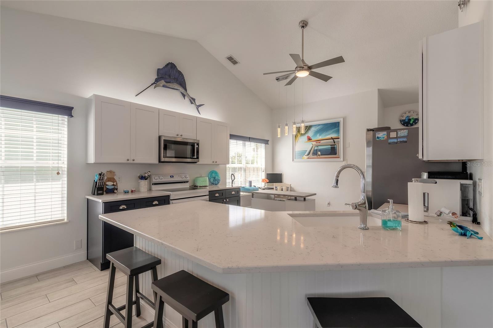 No Flooding from Hurricane Milton and Move-In Ready! Step into tranquility and charm with this fully equipped turnkey home nestled in the sought-after Fairgreen golf community. Discover a plethora of upgraded features throughout this residence, including porcelain tile flooring spanning the entire house for effortless maintenance. The kitchen boasts stunning quartz countertops, and soft close, two-toned cabinets, offering a contemporary touch. Indulge in the luxury of fully remodeled bathrooms, while the roof, replaced in 2022, ensures peace of mind for years to come. Embrace the Florida lifestyle by lounging poolside under the radiant sun, accompanied by the serene melody of pool fountains. With self cleaning and both a heater and a cooler, the pool caters to year-round enjoyment. of Privacy abounds in the backyard oasis thanks to the exclusive privacy fence, making outdoor relaxation a true pleasure. Designed to evoke a perpetual vacation ambiance, this home goes above and beyond with amenities. It features a 30 AMP RV hookup, a dedicated whole-house generator hookup, and a Culligan soft water system. Don't miss the opportunity to own this exceptional gem! Schedule your tour today, as this property is sure to be snatched up quickly! All information is intended to be accurate, but is not a hundred percent guaranteed.