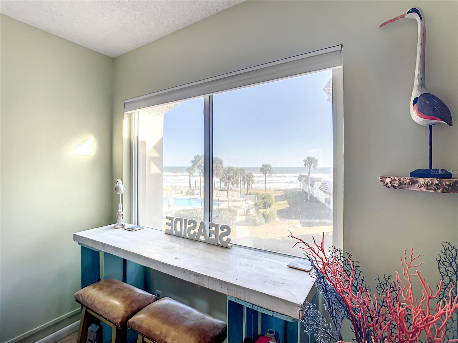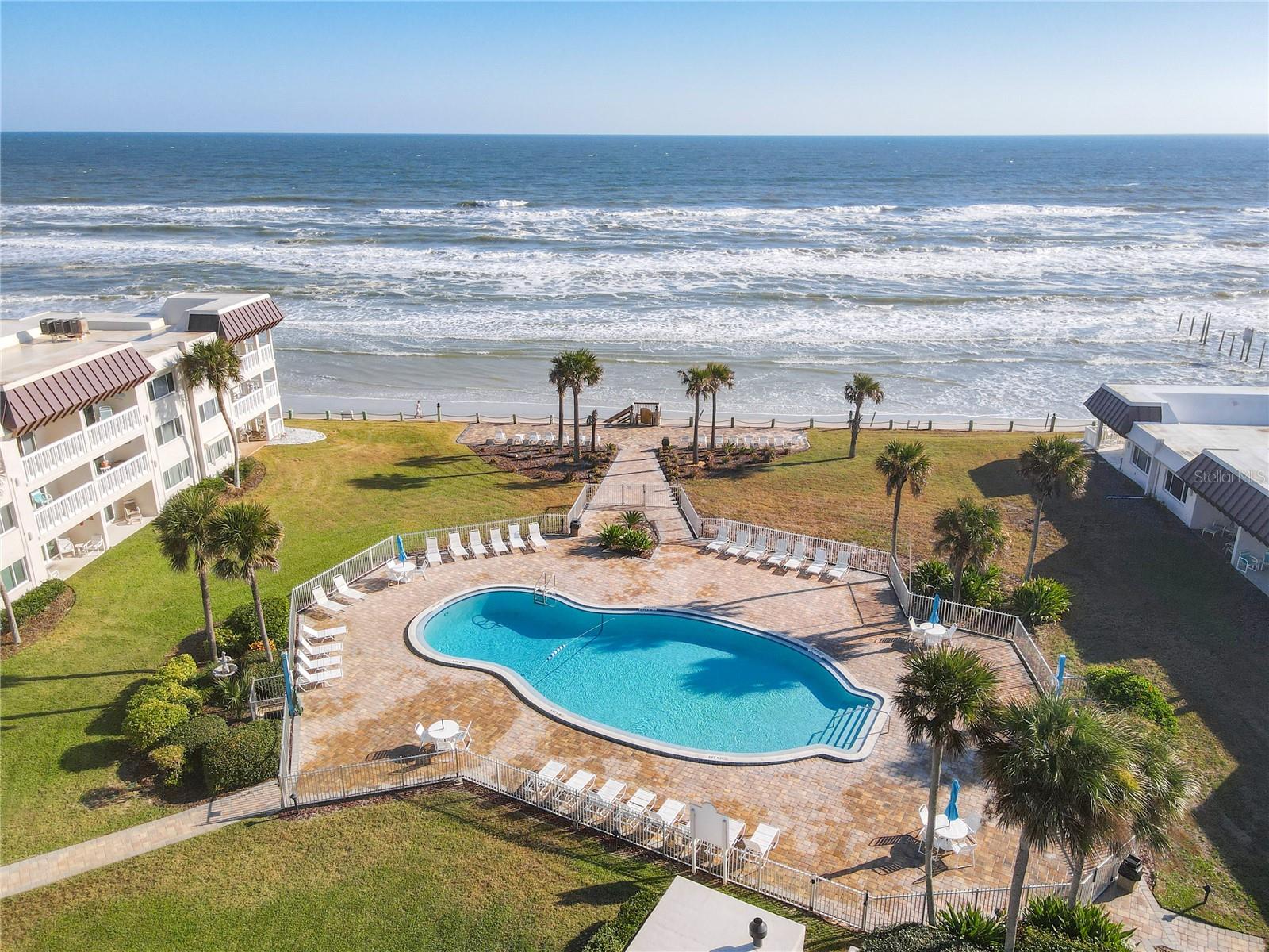 OPPORTUNITY is knocking and you don’t want to miss to this 1BR/1BA unit at Chateau by the Sea, situated on the coveted 3rd (top) floor, offering breathtaking ocean views. RELAX by the sparkling pool, and the sound of the waves. Whether you're looking for a full-time residence, or an investment property this unit is a gem. It comes with coastal decor furnishings and ready for you to move in or start renting out. Chateau by the Sea is pet-friendly (tenants are not allowed pets), and it offers full-time office rental management and on-site maintenance for your convenience. Conveniently located just North of the no-drive beach and 27th Ave Beachfront Park, you're only within 3 miles of Flagler Ave, known for its renowned restaurants. Start your day with beautiful sunrises and a walk along the East Coastline. The 'U' shape of the complex creates a spacious grassy courtyard and a seasonally heated pool, with the beach just steps away. You can request the rental history for this unit. Chateau by the Sea has been recently painted, features new walkway sconce lighting, and boasts a newer roof in 2022. Chateau by the Sea offers a range of amenities, including a clubhouse with a kitchen, shuffleboard, seasonally heated pool, two laundry rooms, and an outdoor grilling area. This is a truly exceptional opportunity to own a piece of paradise by the sea. Don't let this one slip away!