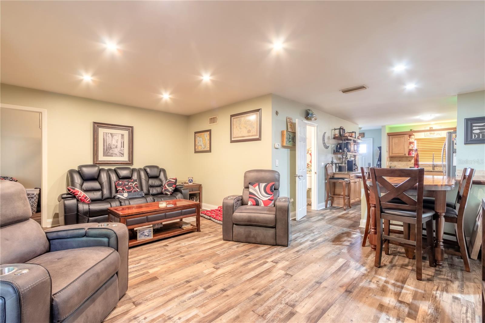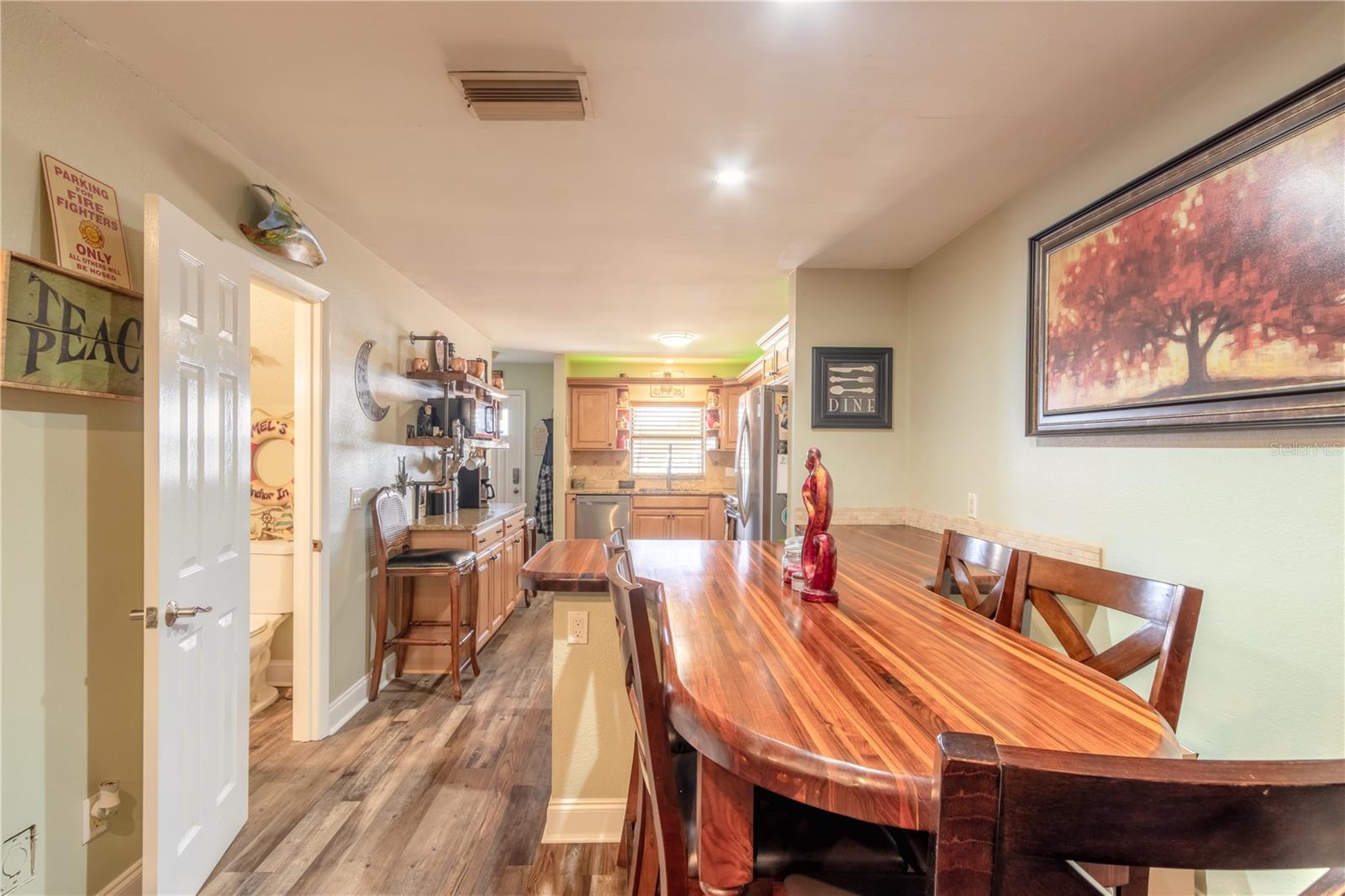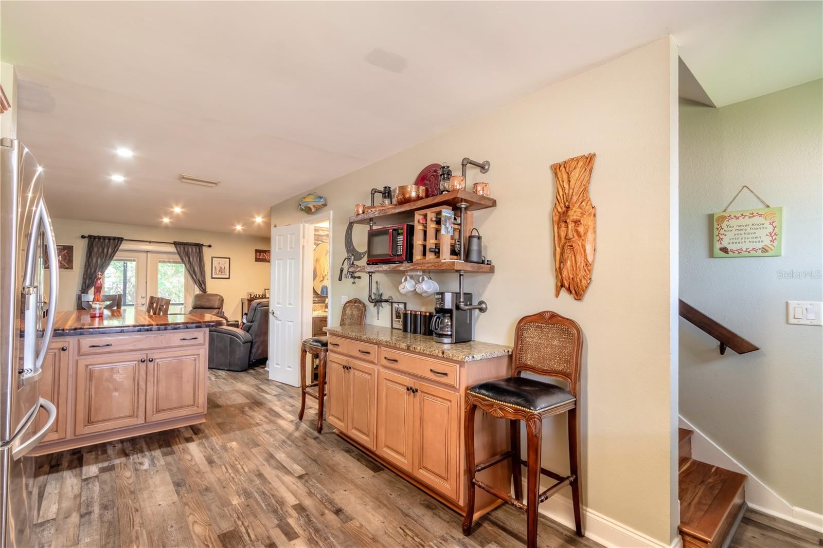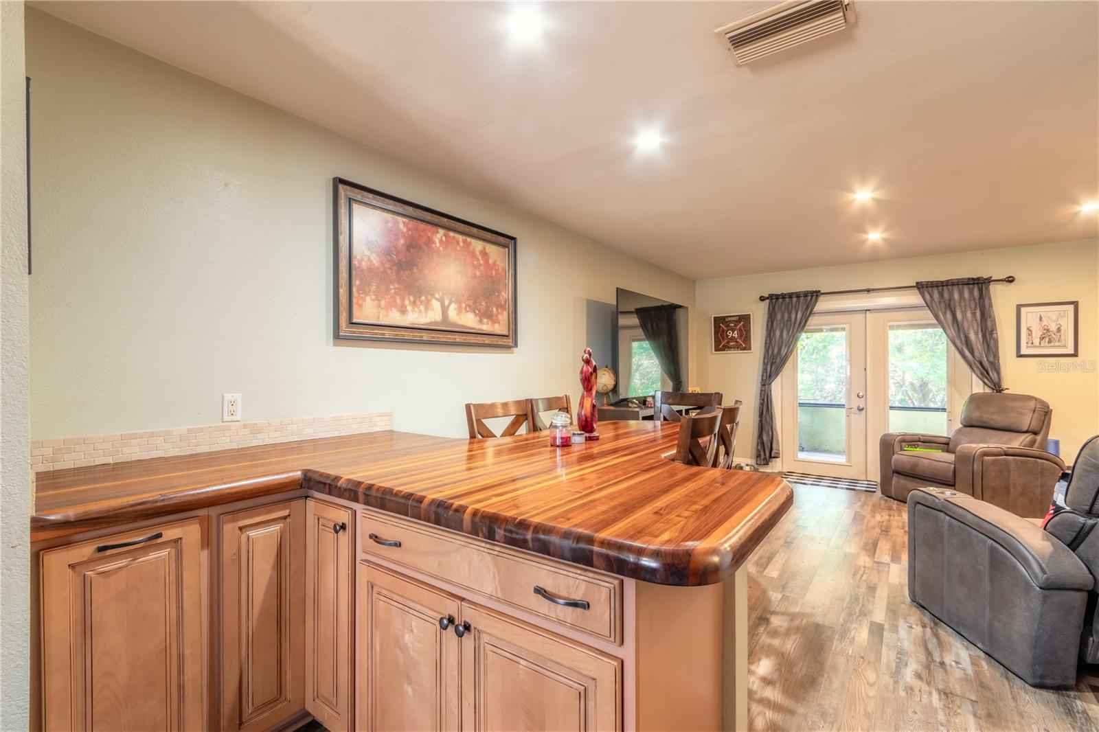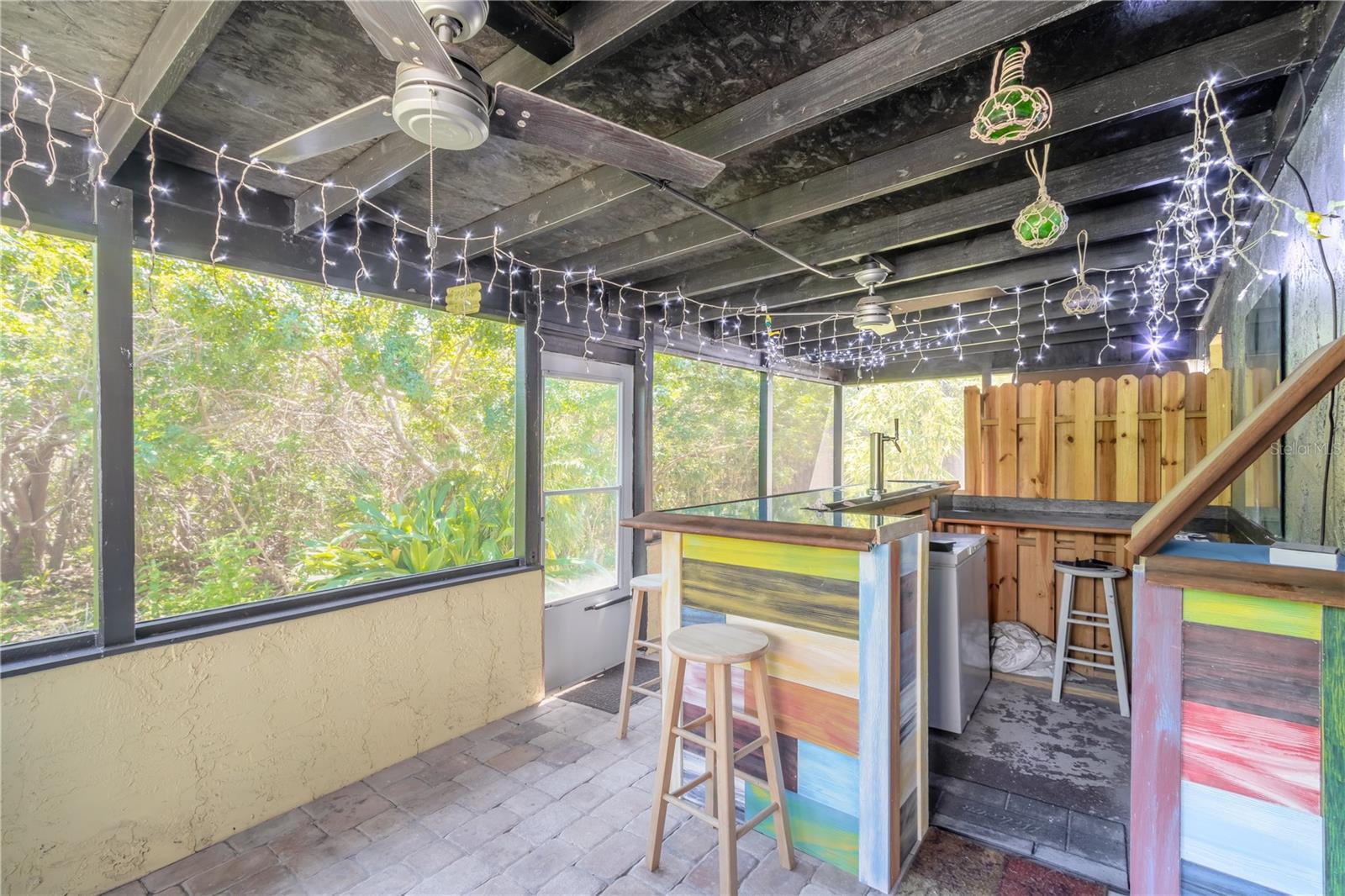 Welcome to 731 Laurel Bay Circle, a stunning 2-story villa nestled in the picturesque beauty of New Smyrna Beach. This charming home sits between the tranquil ocean and the serene lagoon, offering a unique coastal lifestyle. Boasting over 1600 square feet of living space, this villa features 3 bedrooms and 2 full bathrooms upstairs, along with a convenient powder room downstairs in the common area—a layout designed for comfortable living and effortless entertaining. The heart of the home is its inviting kitchen, complete with a custom bartop that seamlessly extends into the spacious living area, creating a perfect gathering space for family and friends. Step outside to the screened back porch, where a second custom bar with beach-themed shiplap and a seashell epoxy bartop awaits, ready for your next gathering or relaxation session. Upstairs, discover the expansive primary suite with a hidden door leading to an oversized dressing room featuring customized shelving. The third bedroom, currently utilized as a dressing room, can easily be converted back into a bedroom if desired. Both the primary bedroom and the guest bedroom offer private balconies—one overlooking the front of the property and the other providing a scenic view of the backyard, ideal for watching rocket launches from the comfort of home. This home has been recently remodeled, showcasing modern finishes throughout and eliminating the need for carpeting, adding to its allure and ease of maintenance. The attached one-car garage provides convenient on-site storage for kayaks, beach toys, and even a golf cart for exploring the neighborhood. Experience the best of coastal living with Indian River Lagoon Park just moments away, offering opportunities for fishing, kayaking, and breathtaking sunset views. For sunrise enthusiasts, the beach is just as close, ensuring you never miss a moment of New Smyrna Beach's natural beauty. Don't miss out on this rare opportunity to own a beautifully appointed villa in one of Florida's most sought-after beach communities. Schedule your private tour today and make 731 Laurel Bay Circle your new coastal retreat!