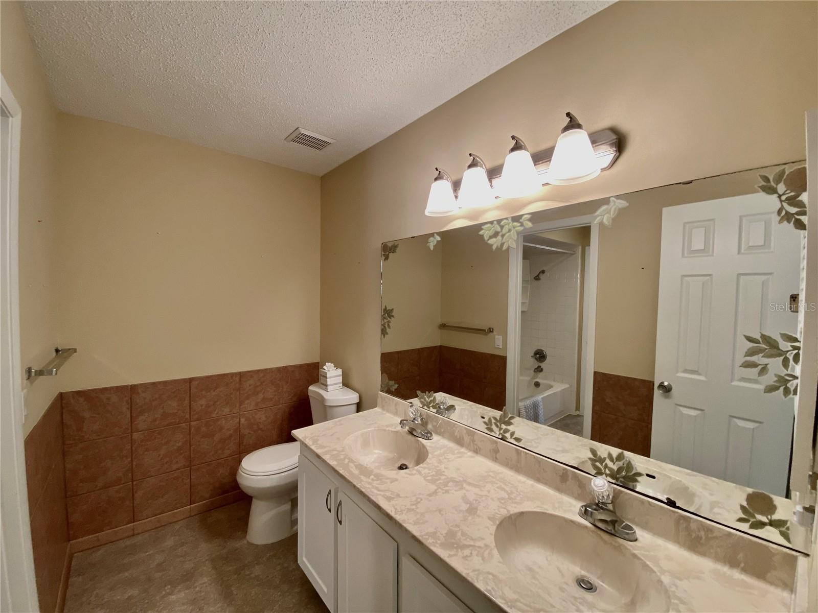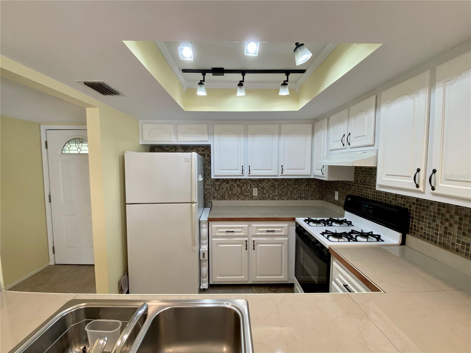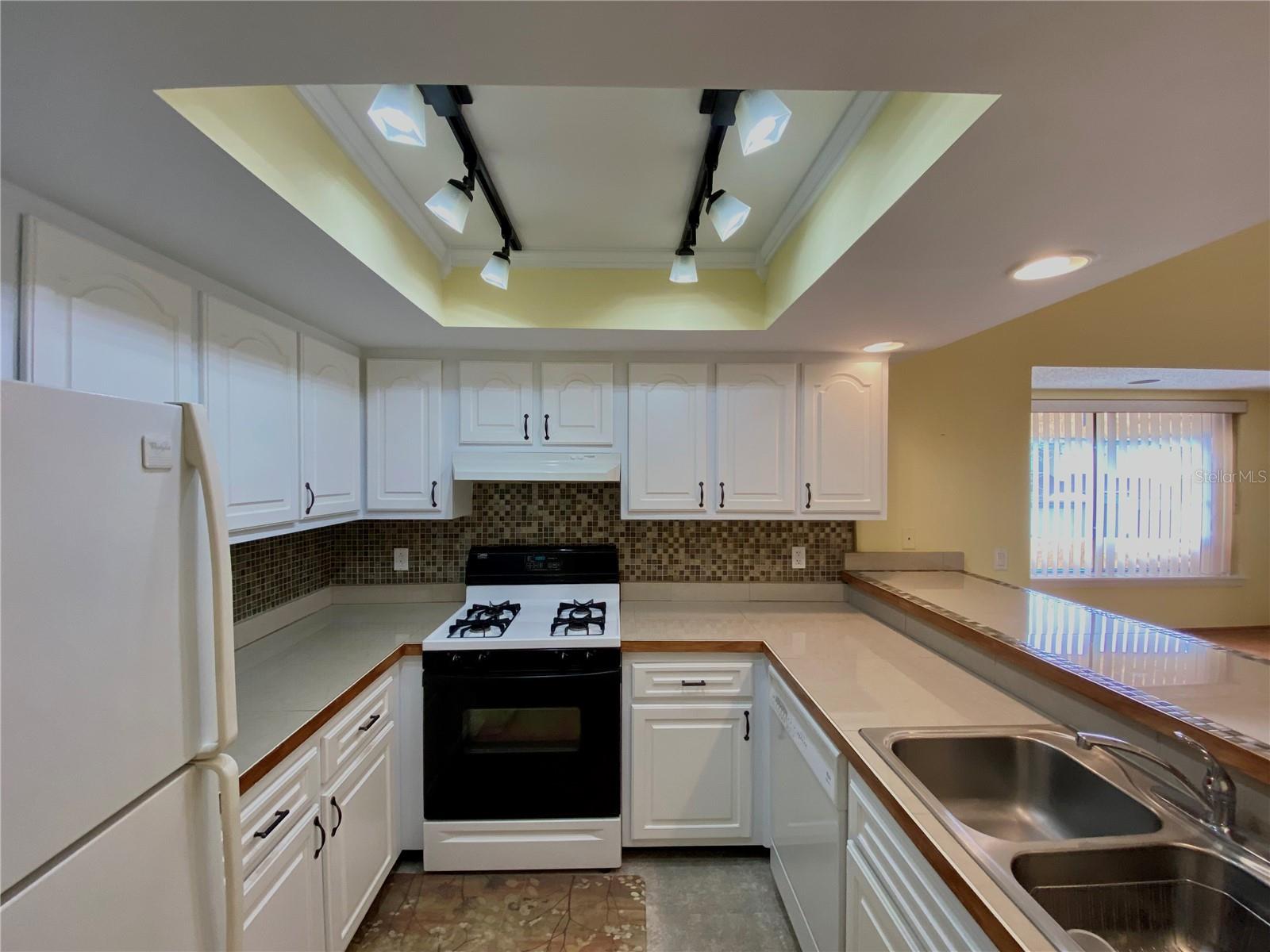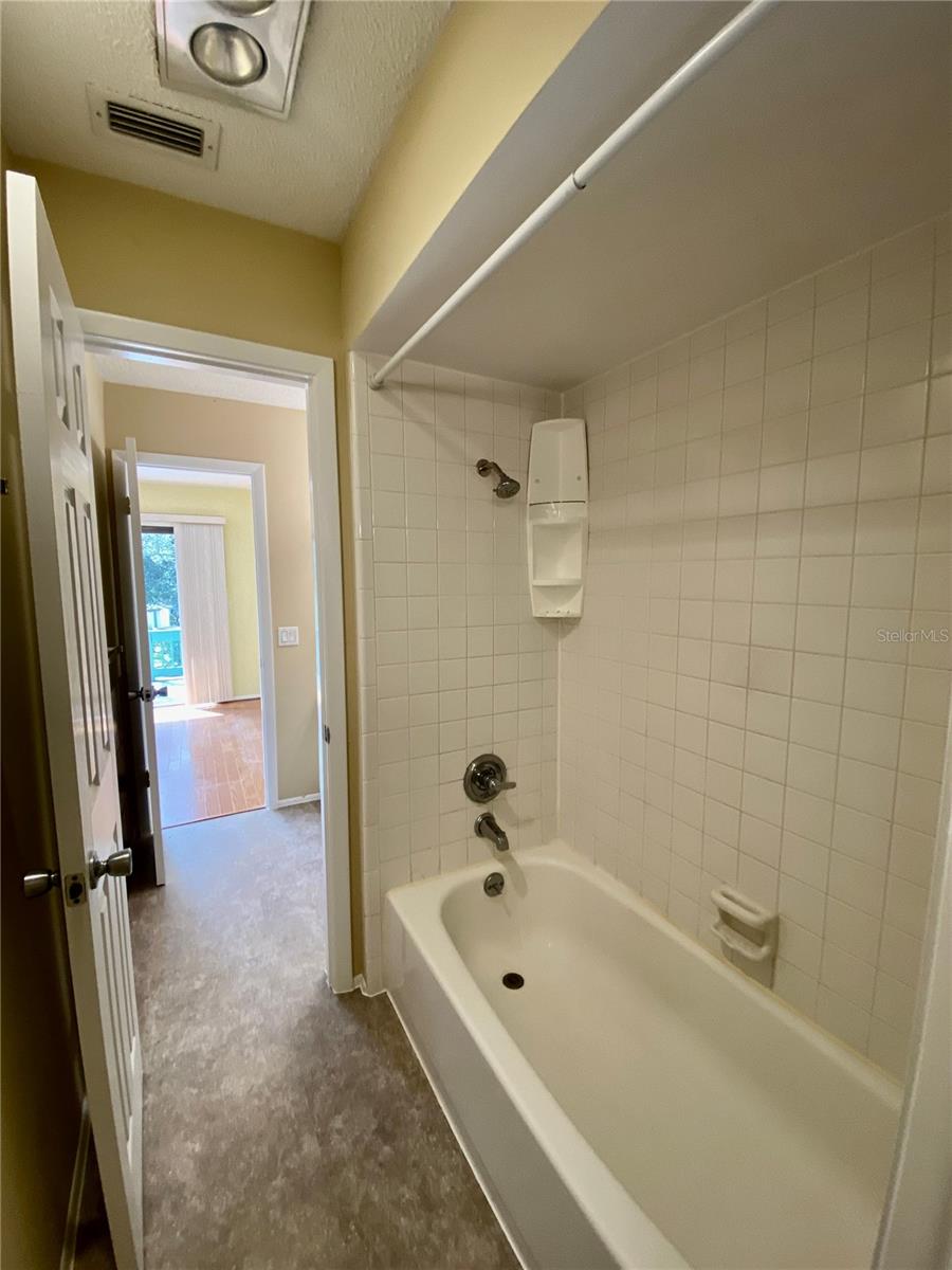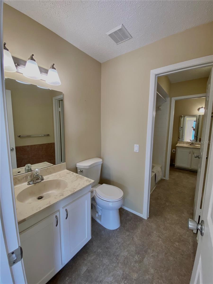 Perfect direct pool front unit at Pine Valley in Sugar Mill CC. 1 story end unit with vaulted ceiling and plenty of extra light coming from the side window detailed with window seat. Kitchen features white cabinetry and appliances, detailed tile counters with breakfast bar and trendy fixtures and lighting. Spacious living area has room for dining area if preferred. Engineered hardwood flooring in living and bedroom. 2 sliding glass doors exit to the newer composite deck to enjoy the direct view of the pool and partial view of the golf course. Part of living area set as a den with built in closet but could be converted to an add'l bedroom. Bathroom is unique with 2 separate powder rooms and share the tub/shower area. Inside laundry room with add'l storage. Golf cart garage has the HVAC (w/ gas heat) 2018 and gas water heater. Easy walk to the community pool of Pine Valley. Sugar Mill CC is a private country club and golf course, amenities include dining, fitness, pool, clubhouse, tennis, pickleball and golf - membership options available. Please inquire within. Sugar Mill is a gated community offering 24 hour guard service.