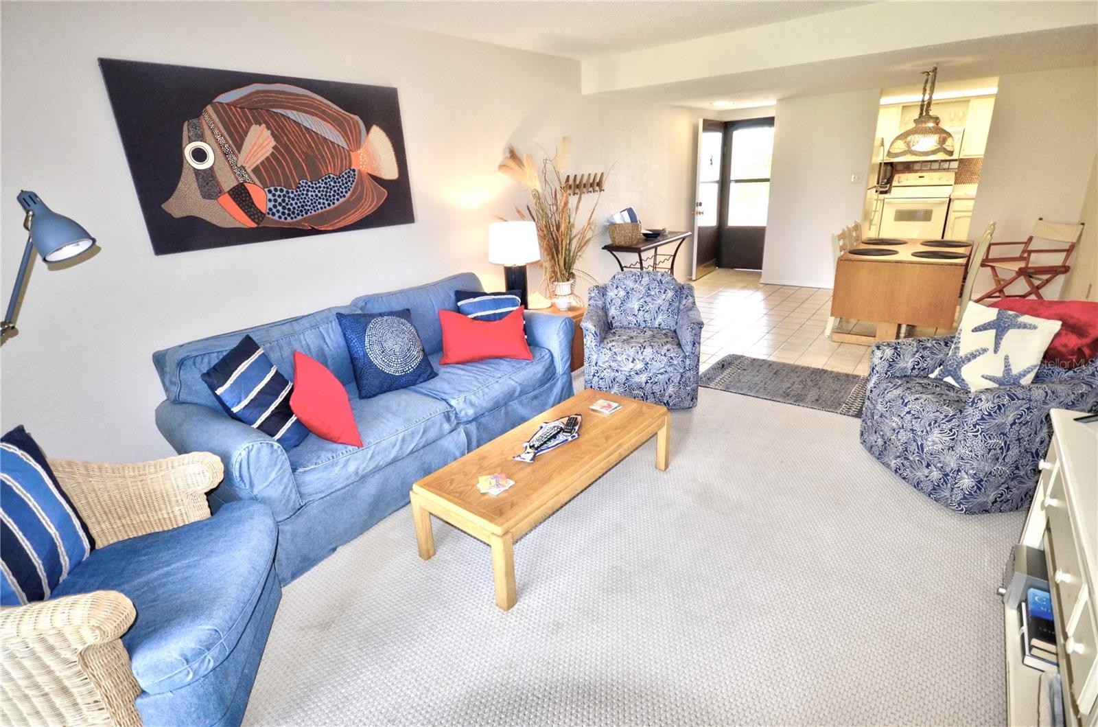 PRICE REDUCED! First Floor! Welcome to Your New Condo in Paradise from the original owners! This fully furnished, turn-key, two-bedroom, two-bath condo is in the Beautiful Oceanfront Castle Reef Complex on the No-Drive Beach. As you enter through the front door, your eye is drawn straight through the living room to the beautiful views of the landscaped courtyard, crystal-clear pool, and the sparkling waves of the ocean. The accessible kitchen and dining area, which opens to the living room, is ideal for entertaining family and guests. The spacious primary bedroom faces the ocean, has an en-suite bathroom. The front bedroom is quiet for reading and relaxation. The hall bath is convenient for the front bedroom and guests. The patio is a great place to watch the sun rise with your morning coffee or enjoy watching the dolphins playing in the waves with the beautiful evening skies as you wait for the moon to rise. This is a great investment property with a 3 night minimum rental or to live here full time. There are plantation shutters on all windows with a custom window treatment in the living room. The hurricane glass sliding door and the primary bedroom window was installed Sept. 2023. Water heater installed in Nov. 2023. New electric panel 8/2024. The resort-style amenities include a large, heated pool, kiddie pool, sun deck, gazebo, clubhouse, two outdoor gas grills, shuffleboard courts, and tennis and pickleball courts. Whether you live here full-time or rent this unit with a three-day minimum, it's in the perfect location. You have the convenience of walking to the shopping plaza right across the street, which includes great shops, restaurants, a bar, and a grocery store. Flagler Avenue and Canal Street offer many superb restaurants, arts, specialty shops, and nightly entertainment nearby. If you like day trips to explore other areas and attractions, Disney World, Animal Kingdom, Universal, Sea World, Kennedy Space Center, Daytona International Speedway and St. Augustine are just a few places you can visit.