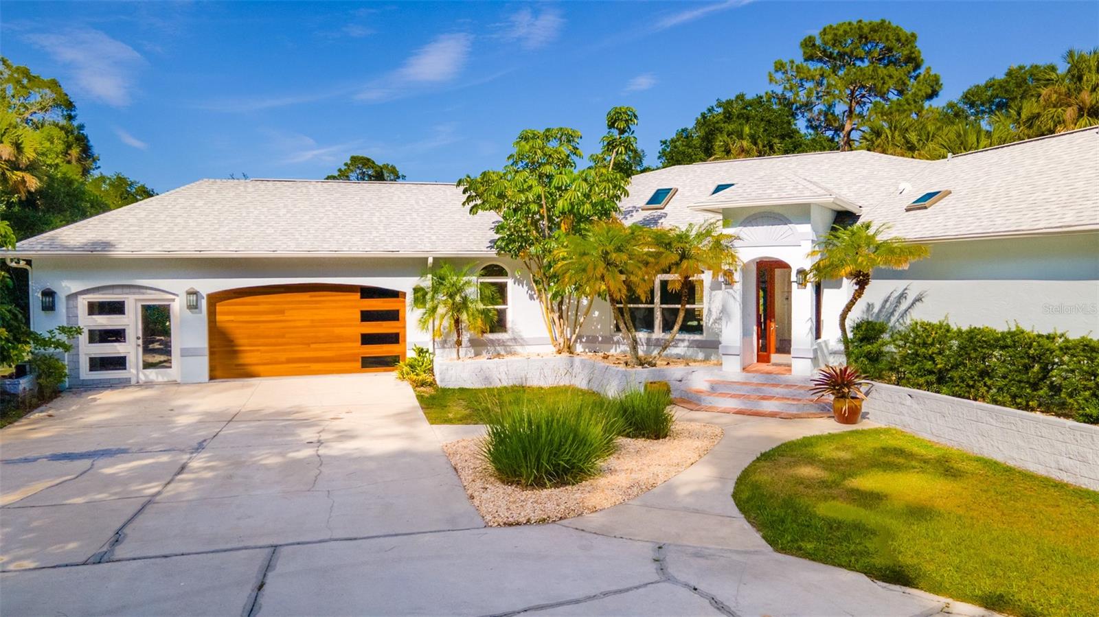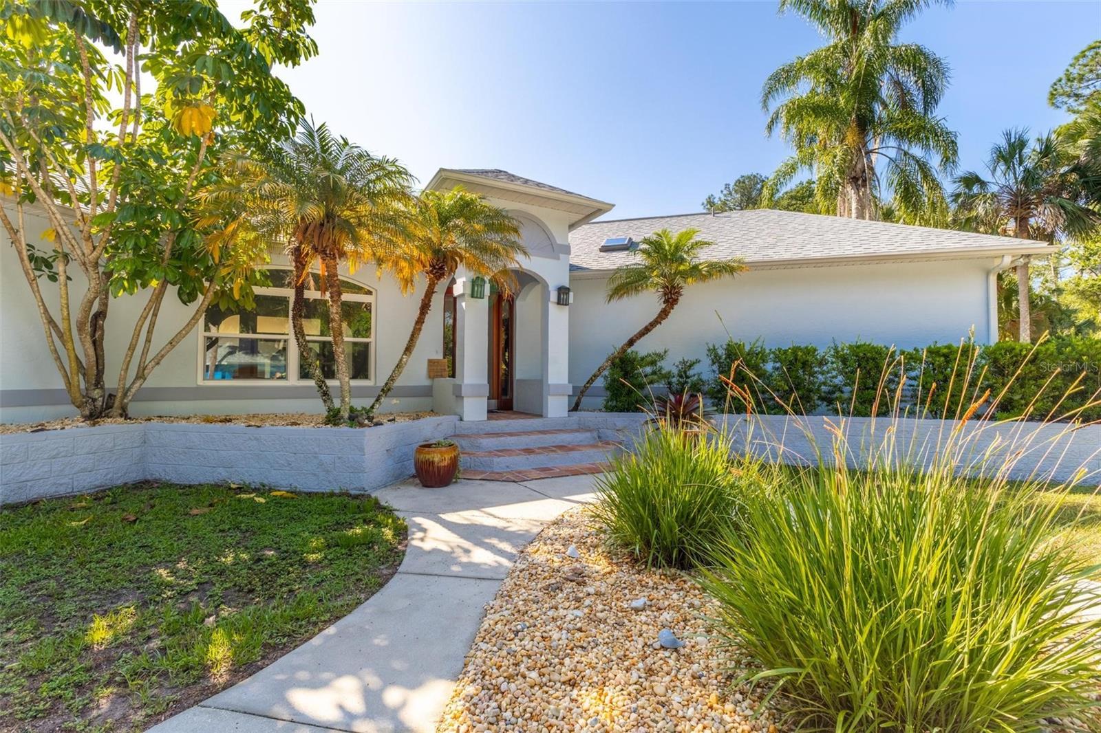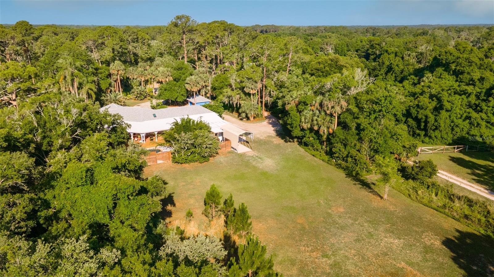 Country living in the city! This unique custom built pool home sits privately and secluded on just over 5 park like acres in the heart of NSB, conveniently located about 1 mile to Publix or 1.5 to Canal Street. Built in 1995 to accommodate a growing family, this has been a haven for owners and wildlife ever since. With NSB growing all around, this gated estate (which is in county zoning) still affords peace and tranquility in the midst of it all. The 3 bedroom, 2.5 bath house has a spacious, airy layout that is geared toward capturing the outside views, with plenty of skylights in the high ceilings and new impact windows and sliders. There is an extra office space and large laundry room inside the house with an additional office and flex room on the other side of garage. The back of the house opens to a large covered porch and deck to the partially fenced pool area. In addition to the two car garage in the house, there is a carport that can store more vehicles or boats and also a separate workshop/extra garage. A large cleared backyard affords opportunity for RV or boat storage, a potential barn or cottage, or just a nice peaceful lawn.