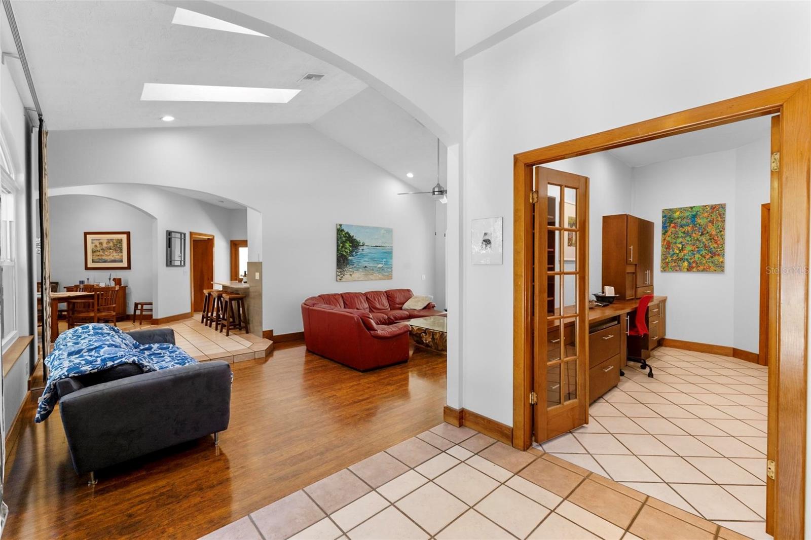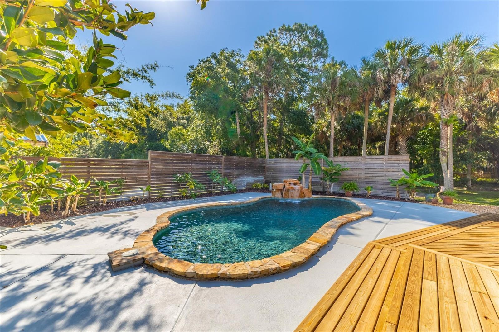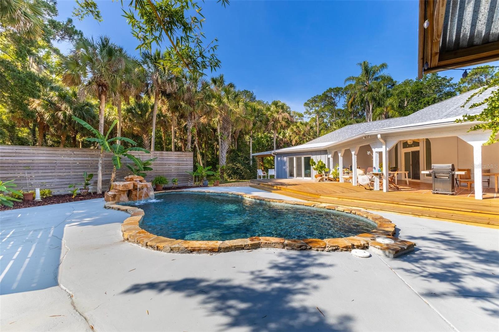 Country living in the city! This unique custom built pool home sits privately and secluded on just over 5 park like acres in the heart of NSB, conveniently located about 1 mile to Publix or 1.5 to Canal Street. Built in 1995 to accommodate a growing family, this has been a haven for owners and wildlife ever since. With NSB growing all around, this gated estate (which is in county zoning) still affords peace and tranquility in the midst of it all. The 3 bedroom, 2.5 bath house has a spacious, airy layout that is geared toward capturing the outside views, with plenty of skylights in the high ceilings and new impact windows and sliders. There is an extra office space and large laundry room inside the house with an additional office and flex room on the other side of garage. The back of the house opens to a large covered porch and deck to the partially fenced pool area. In addition to the two car garage in the house, there is a carport that can store more vehicles or boats and also a separate workshop/extra garage. A large cleared backyard affords opportunity for RV or boat storage, a potential barn or cottage, or just a nice peaceful lawn.