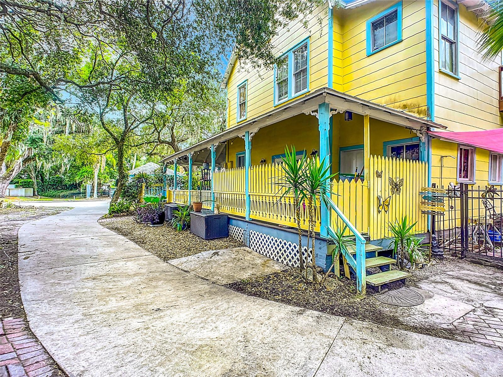 In the heart of New Smyrna Beach's historic downtown, two homes /two addresses/ one parcel , nestled among the shaded oak trees and stands a Victorian era gem with a story to tell. Once a cherished bed & breakfast, this stately home exudes a timeless charm that captivates all who pass by. As you approach, the inviting southern wrap-around porch beckons you to step back in time, where warm summer evenings were made for sipping sweet tea and swapping stories with friends and neighbors. Surrounded by meticulously manicured grounds, the porch offers a front-row seat to the gentle breeze and the symphony of nature that fills the air. Inside, the home unfolds with the grace of hardwood floors, elegantly adorned with crown molding that speaks of craftsmanship from a bygone era. Each room reveals its own unique character, with cozy nooks and crannies that whisper secrets of generations past. Modern comforts seamlessly blend in, with split-level A/C ensuring cool reprieve on even the hottest Florida days, and updated electrical and plumbing systems providing peace of mind. A highlight of this property is the detached in-law cottage, a quaint retreat offering 2 bedrooms and 1 baths. Currently a haven for guests or potential rental income, the cottage holds promise for expansion with its unfinished second floor, inviting dreams of additional living space or creative studio. Beyond its historical allure, this property boasts a rare advantage with Mixed Use Zoning in the arts overlay district. This unique classification opens doors to endless possibilities - from revitalizing it as a bustling business venture to preserving it as a cherished family home with space for generations to come. Outside, the expansive backyard unfolds into a private oasis, a serene garden retreat complete with a well and fenced-in seclusion. Here, under the canopy of ancient trees, tranquility reigns supreme, offering a haven from the vibrant energy just blocks away on historic Canal Street and the bustling North Causeway. Whether you're seeking a captivating piece of local history, a potential business venture, or a harmonious blend of both, this Victorian era masterpiece stands ready to embrace its next chapter. With its unmatched charm, prime location, and boundless potential, this property isn't just a home - it's a narrative waiting to be written by those who appreciate its storied past and limitless future. Discover the magic of this New Smyrna Beach treasure -