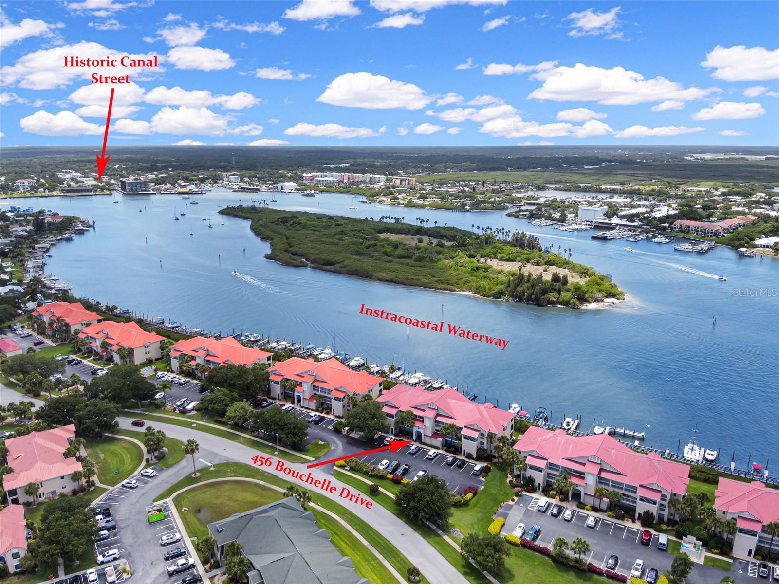 Ground floor waterfront condo at Bouchelle Island in New Smyrna Beach featuring epic views of the Intracoastal Waterway, Chicken Island, North Bridge and stunning sunsets to the west! This 2-bedroom/2-bathroom condo features updated luxury vinyl plank flooring, bathroom vanities and brand new washer and dryer stacked to allow for more storage space. Large lanai with access from the living room and primary bedroom has vinyl windows that help keep the heat out in the summer and can be opened in the winter to enjoy the river breezes. Ground floor location doesn’t require stair climbing or elevator waiting. Bouchelle Island has tons of amenities including two heated pools, pickleball courts, putt-putt golf course, river boardwalk, shuffleboard, private boat ramp and fishing pier. Boat slips and dry storage spots are managed by the association. It’s also only a short distance to the beach, restaurants and shopping. You’ll enjoy that charming waterfront New Smyrna Beach lifestyle at this condo!