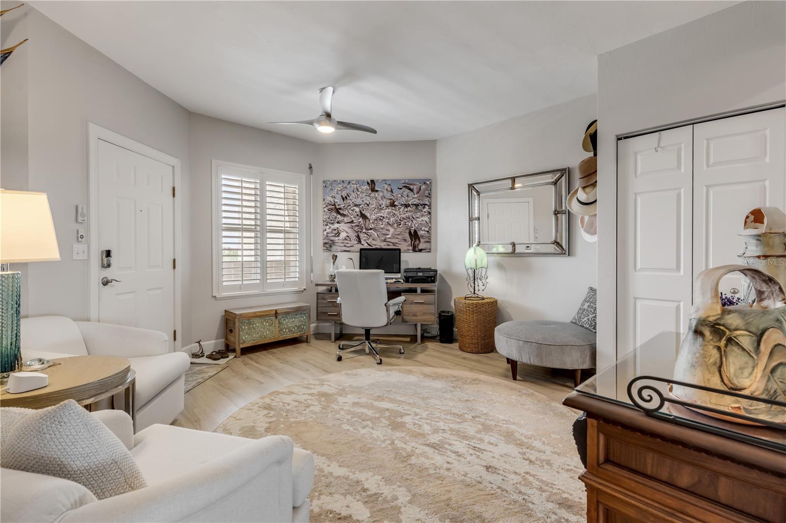 Waterfront, designer renovated and decorated, 2-bedroom, 2-bathroom condo home offering breathtaking Intracoastal access water views, modern amenities, and luxurious living in a prime location. Upon entering, you'll find a versatile and spacious foyer/office space that seamlessly leads to the kitchen and living areas, providing an ideal spot for work or relaxation. The modern kitchen features solid surface countertops, updated cabinetry, stainless steel appliances, wine fridge, breakfast bar, and ample storage. The open living and dining room combination offers plenty of space for entertaining, creating a warm and inviting atmosphere for gatherings and flows right out onto the picturesque covered balcony where you will enjoy morning sunrises and evening moonrises. The spacious primary bedroom with sliders to the balcony is a retreat with a spa-like bathroom, including a free-standing tub, and a separate glass-enclosed tiled shower with a built-in seat. The well-appointed guest bathroom can be accessed from the second bedroom or the hallway, providing convenience for guests. In a condo home, a spacious laundry room is a luxury; this one offers built-in cabinetry, a folding and hanging area, and plenty of additional storage. The private balcony overlooks the Intracoastal, providing stunning water views and a tranquil space to relax. It also includes a roll-down storm shutter for added protection and privacy; when it is closed, it expands the interior living space. This home comes with an assigned covered parking spot, ensuring convenience. Community amenities include pools, spa, tennis and pickleball courts, shuffleboard court, and a fitness center. This sought-after Bouchelle Island condo home provides easy access to the Intracoastal Waterway and is conveniently close to shopping, dining, and entertainment options, offering the perfect blend of tranquility and convenience. Schedule your showing today!