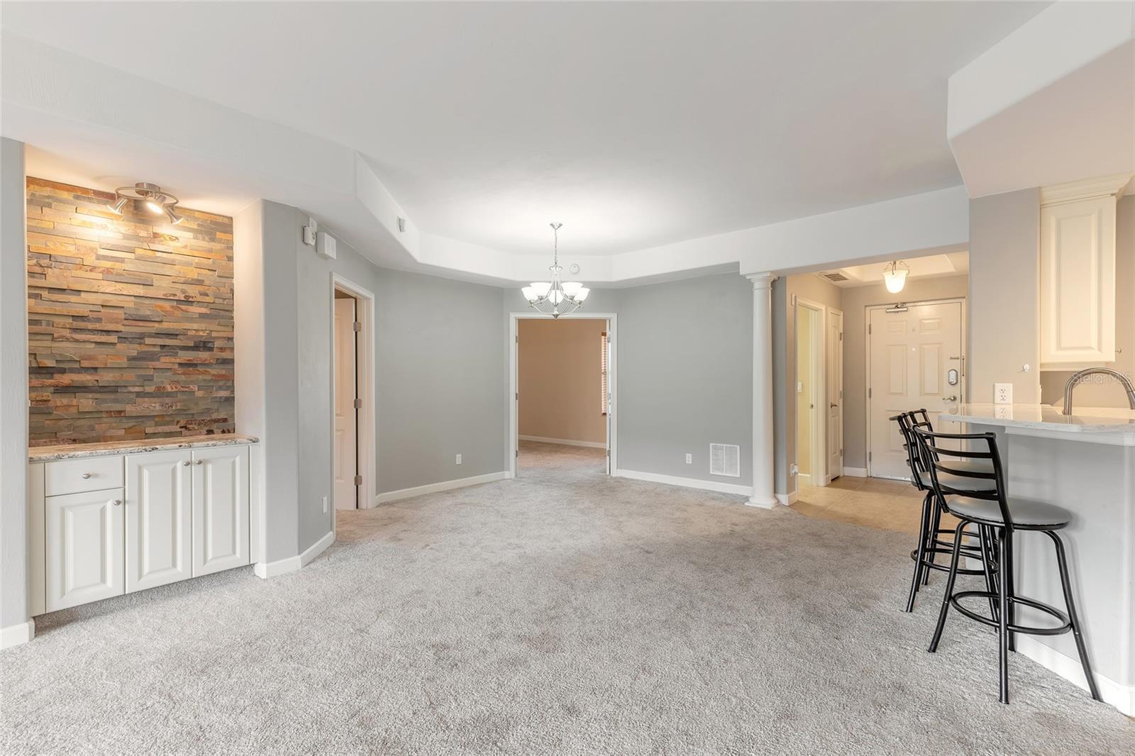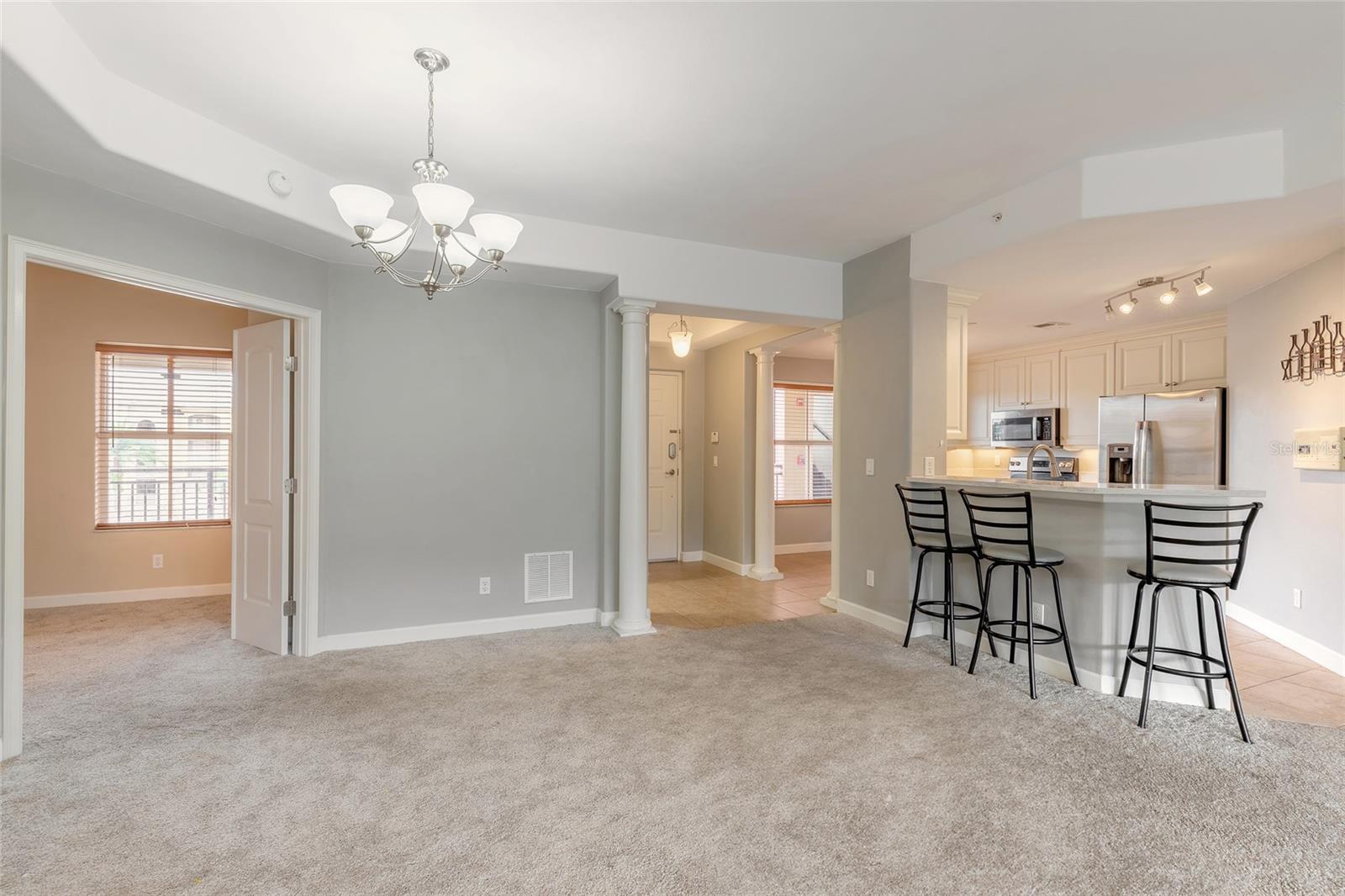MOTIVATED SELLER! Care-free living in a prime location awaits! This charming 3 bedroom/ 2 bath condominium located in Tuscany Square at Venetian Bay has been updated beautifully and maintained with love. The spacious floor plan is open-concept and boasts 1,976 square feet of living space. The modern kitchen features a breakfast bar and stainless-steel appliances that are only a few years old. French doors lead from the bedrooms and living room to the spectacular balcony. The primary bedroom and ensuite is an oasis with ample space for king sized furniture, a large jetted tub, separate shower, and a dual-sink vanity and plenty of closet space. Bring your golf cart and toys! This unit comes a one-car GARAGE and a storage unit to the left of the front door. You are steps away from The Spa at Venetian Bay, Bistro 424, Happy Deli Café & Marketplace, Venetian Bay Market, Snap Fitness 24/7, Boren Beauty Salon, The Brew pub, Pets on the Bay Grooming and a Wellness Spa, and more. Golf lovers can obtain a private membership for the Venetian Bay Gold Club and take advantage of living in a golf cart-friendly community. Ride your golf cart from your condo to the course! You can’t beat this community’s location, only 10 minutes to Port Orange shopping centers and grocery stores. You’re just 15 minutes away from the heart New Smyrna Beach- beautiful beaches and a downtown filled with weekly festivals, farmers markets, excellent restaurants and more! This neighborhood is close to to I95 and I4. All documents and information on the community can be found on the Association website at https://tuscanysquarecondominium.org