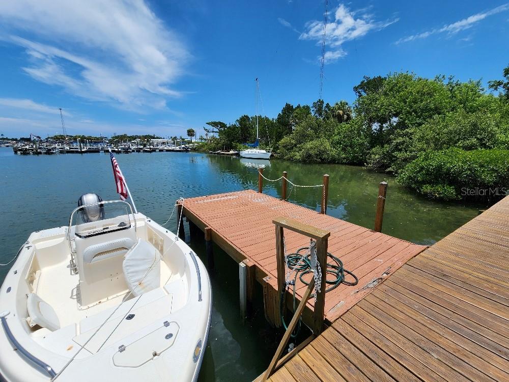 Direct waterfront townhome with a BOAT SLIP!! This charming 3-bedroom, 2.5 bath updated townhome boasts a spacious open floor plan, hardwood kitchen cabinets with stainless steel appliances and a cozy wood burning fireplace in the living room. Large windows that allow natural light, views of marine life, the river and your very own boatslip right outside your door. The first floor offers a primary bedroom with a full bath and a half bath for convenience. The second floor has two bedrooms, each with a balcony and a shared bath. The townhome is located between Canal St. and Flagler Avenue for all your shopping and restaurant needs, ideal for a golf cart. Location at its BEST!!