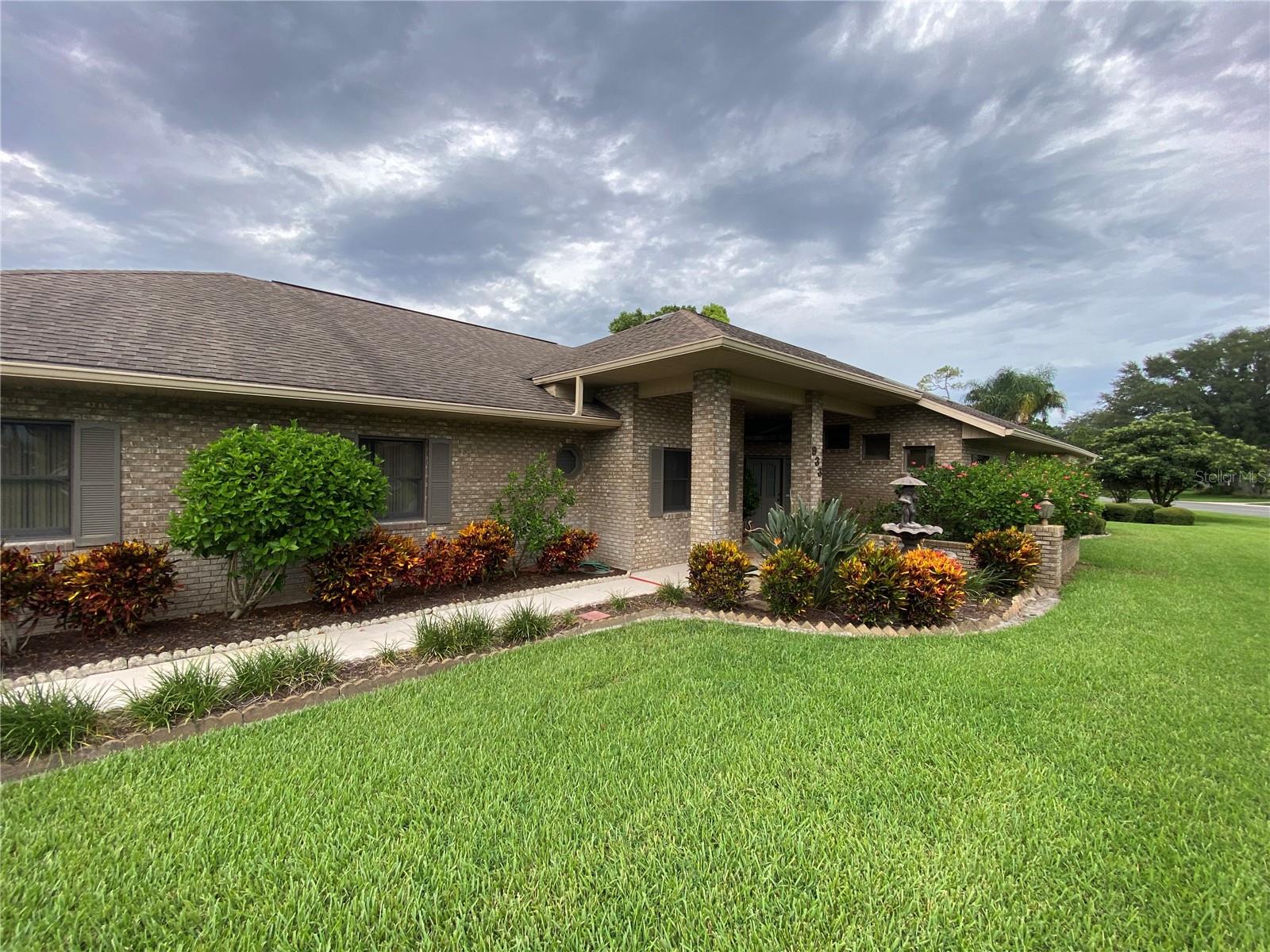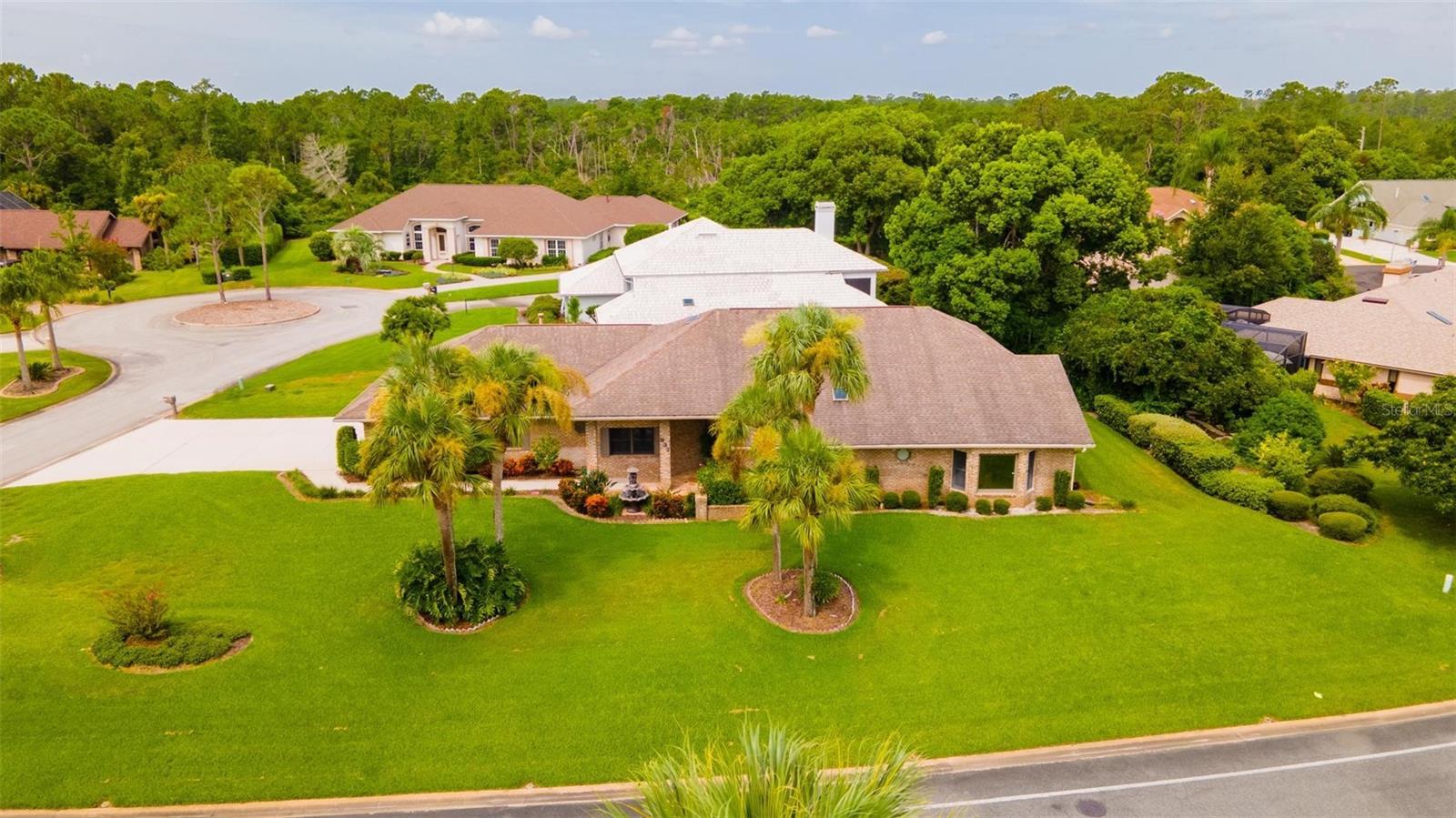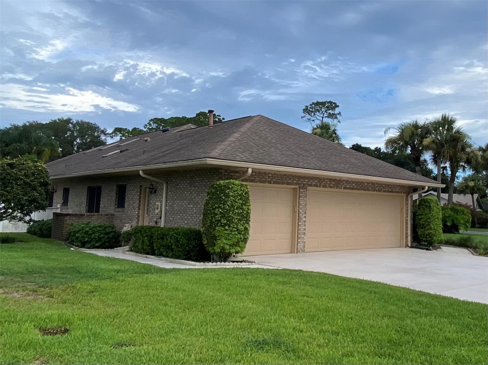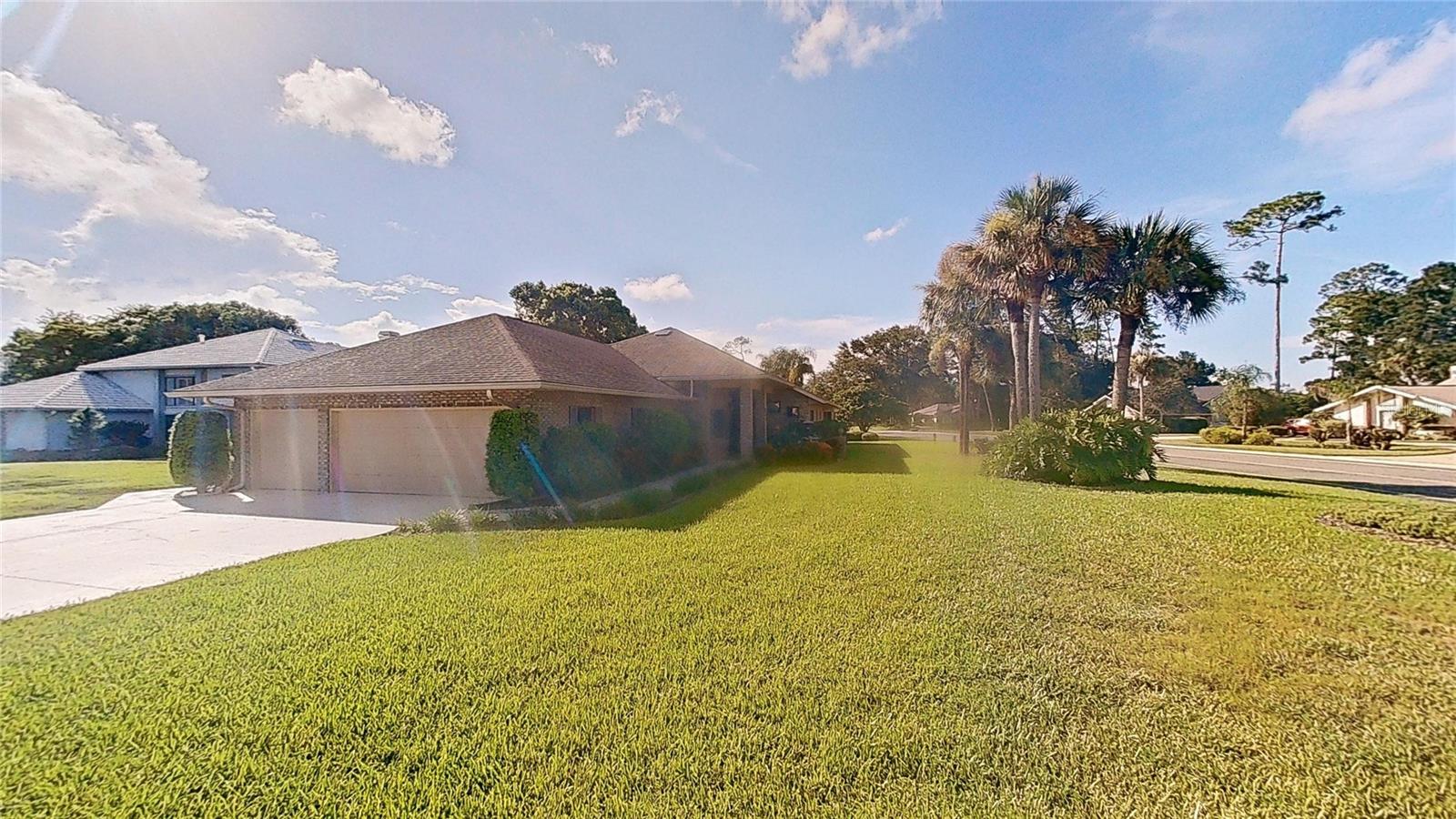 Beautiful Brick Beauty on an oversized corner lot in gated community of Sugar Mill CC. Spacious 3 bedroom, 3.5 bathroom, 3 car garage has plenty of room for the family and friends. Located on a corner of a cul-de-sac with side entry garage. Entry with coat closet opens to the expansive living area with unique wet-bar, open dining area and open den. Kitchen features white cabinetry and appliance with eat-in area, addl build in cabinetry and sliders to exterior rear patio. Wet bar is just off from the kitchen with small prep sink and bar area. Open living area features powder room for your guests, vaulted ceilings with skylights, built in shelving, fireplace. Dining area is open but has separation from the living room. Den nook off the living room features sliders to the exterior side patio. Primary bedroom off the living room area also has vaulted ceilings and bay window, 2 walk in closet to the en-suite bathroom. Double vanities, separate water closet with commode and bidet, walk in shower and jetted tub. On the other side of the main entrance is the guest bedroom with built in desk area, murphy bed and en-suite bathroom with tub/shower. Add'l guest bedroom at end of hallway also features en-suite bathroom with walk in shower and entrance to the garage. In-home laundry room with plenty of storage and wash sink is centrally located in the hallway. Add' storage in the hall with garage entry. Oversized 3 car garage with workshop area, wash sink and exit to the rear of the home. This home has everything you need, come make it your own. Sugar Mill Country Club memberships available to include dining, pool and fitness center, tennis & pickleball & 27 holes of fabulous golf.
