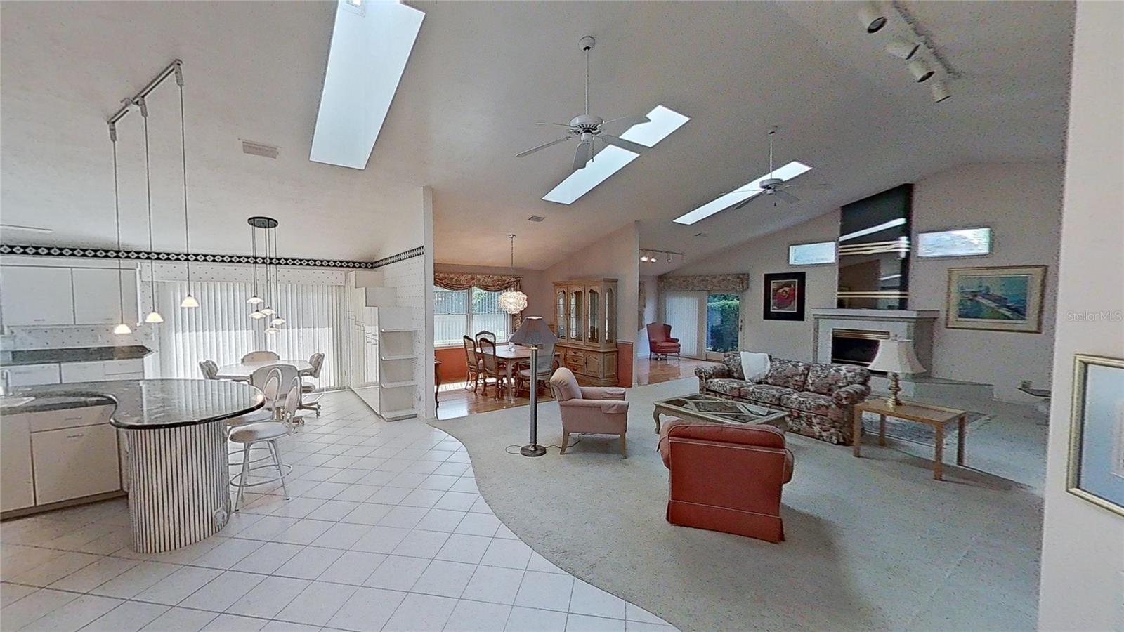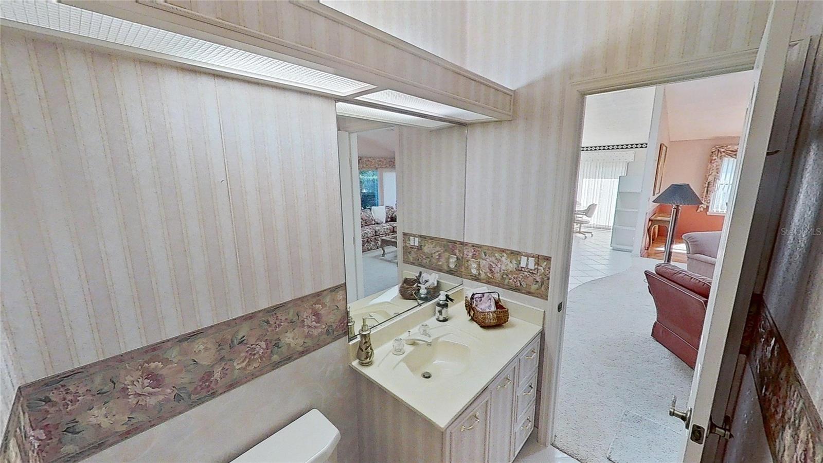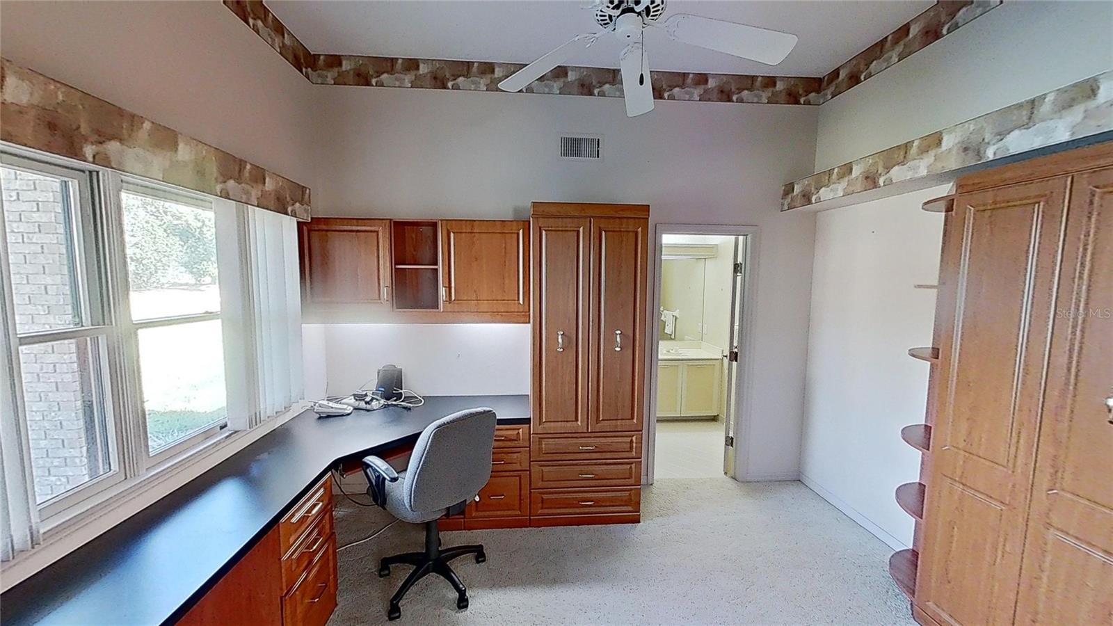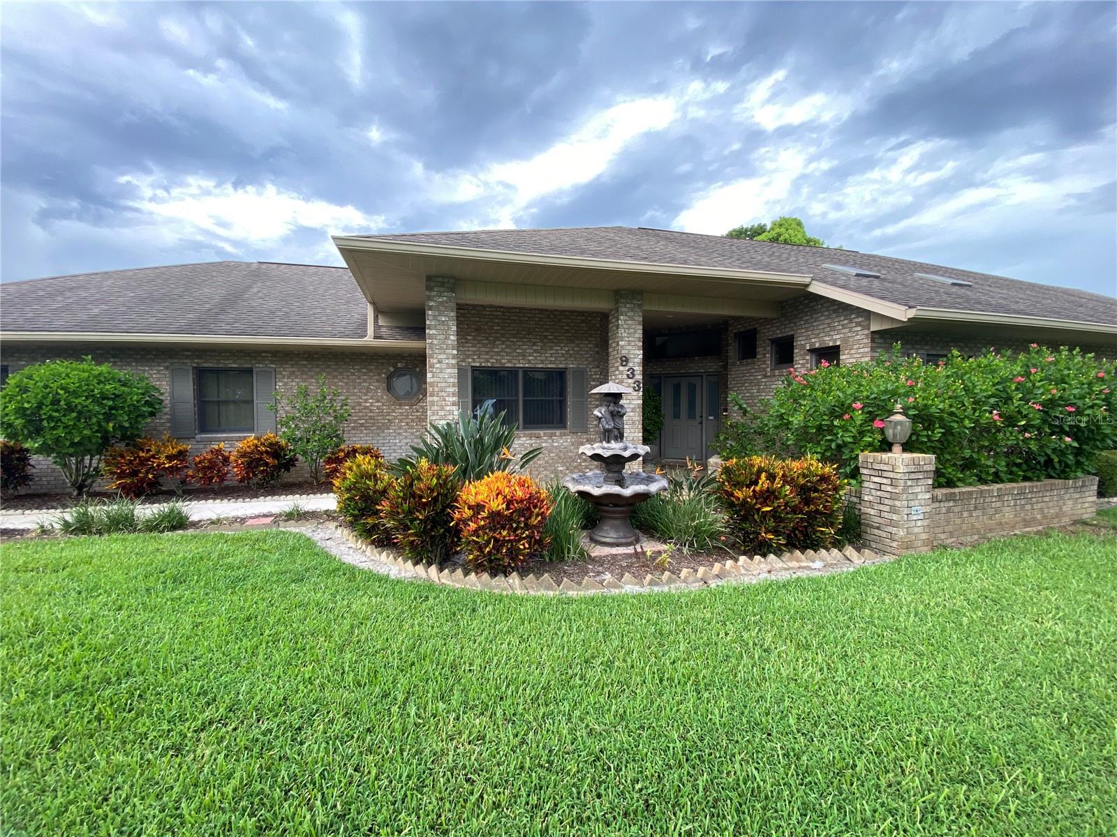 Beautiful Brick Beauty on an oversized corner lot in gated community of Sugar Mill CC. Spacious 3 bedroom, 3.5 bathroom, 3 car garage has plenty of room for the family and friends. Located on a corner of a cul-de-sac with side entry garage. Entry with coat closet opens to the expansive living area with unique wet-bar, open dining area and open den. Kitchen features white cabinetry and appliance with eat-in area, addl build in cabinetry and sliders to exterior rear patio. Wet bar is just off from the kitchen with small prep sink and bar area. Open living area features powder room for your guests, vaulted ceilings with skylights, built in shelving, fireplace. Dining area is open but has separation from the living room. Den nook off the living room features sliders to the exterior side patio. Primary bedroom off the living room area also has vaulted ceilings and bay window, 2 walk in closet to the en-suite bathroom. Double vanities, separate water closet with commode and bidet, walk in shower and jetted tub. On the other side of the main entrance is the guest bedroom with built in desk area, murphy bed and en-suite bathroom with tub/shower. Add'l guest bedroom at end of hallway also features en-suite bathroom with walk in shower and entrance to the garage. In-home laundry room with plenty of storage and wash sink is centrally located in the hallway. Add' storage in the hall with garage entry. Oversized 3 car garage with workshop area, wash sink and exit to the rear of the home. This home has everything you need, come make it your own. Sugar Mill Country Club memberships available to include dining, pool and fitness center, tennis & pickleball & 27 holes of fabulous golf.