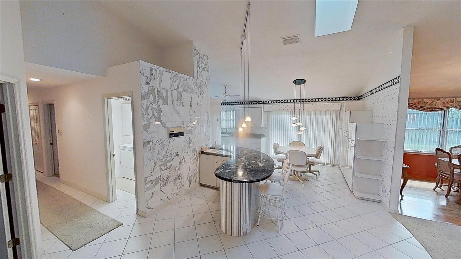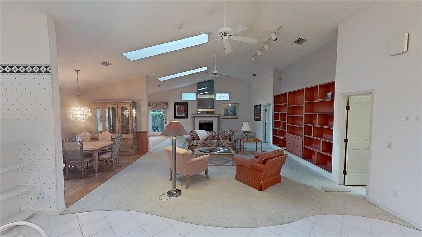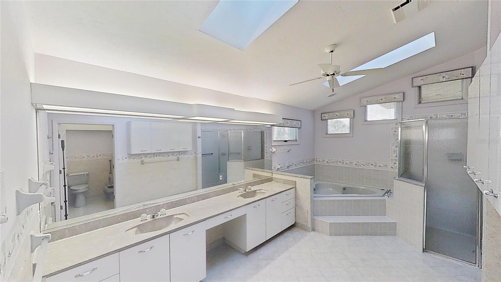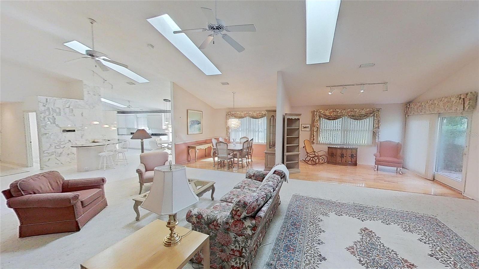 Beautiful Brick Beauty on an oversized corner lot in gated community of Sugar Mill CC. Spacious 3 bedroom, 3.5 bathroom, 3 car garage has plenty of room for the family and friends. Located on a corner of a cul-de-sac with side entry garage. Entry with coat closet opens to the expansive living area with unique wet-bar, open dining area and open den. Kitchen features white cabinetry and appliance with eat-in area, addl build in cabinetry and sliders to exterior rear patio. Wet bar is just off from the kitchen with small prep sink and bar area. Open living area features powder room for your guests, vaulted ceilings with skylights, built in shelving, fireplace. Dining area is open but has separation from the living room. Den nook off the living room features sliders to the exterior side patio. Primary bedroom off the living room area also has vaulted ceilings and bay window, 2 walk in closet to the en-suite bathroom. Double vanities, separate water closet with commode and bidet, walk in shower and jetted tub. On the other side of the main entrance is the guest bedroom with built in desk area, murphy bed and en-suite bathroom with tub/shower. Add'l guest bedroom at end of hallway also features en-suite bathroom with walk in shower and entrance to the garage. In-home laundry room with plenty of storage and wash sink is centrally located in the hallway. Add' storage in the hall with garage entry. Oversized 3 car garage with workshop area, wash sink and exit to the rear of the home. This home has everything you need, come make it your own. Sugar Mill Country Club memberships available to include dining, pool and fitness center, tennis & pickleball & 27 holes of fabulous golf.