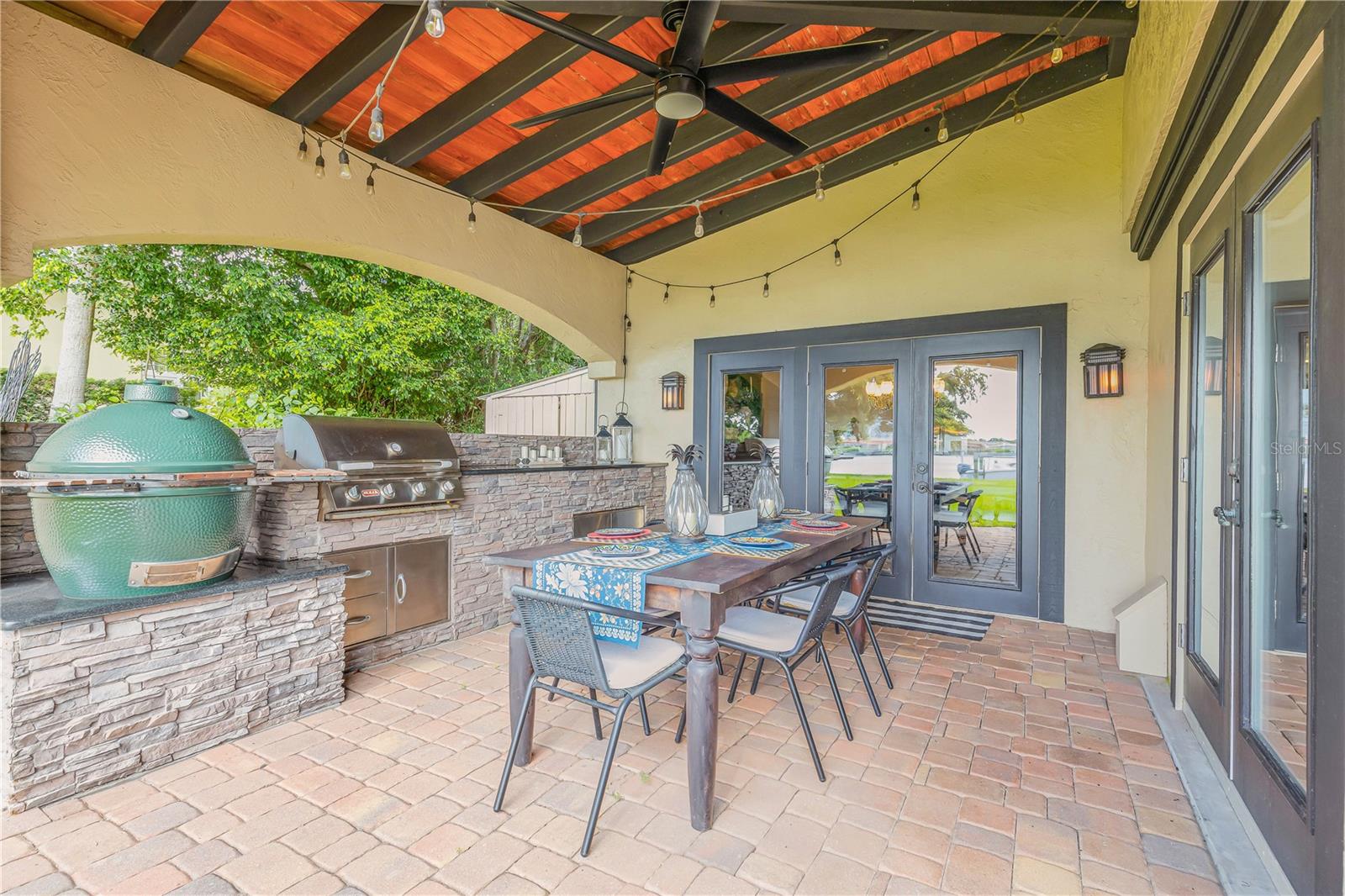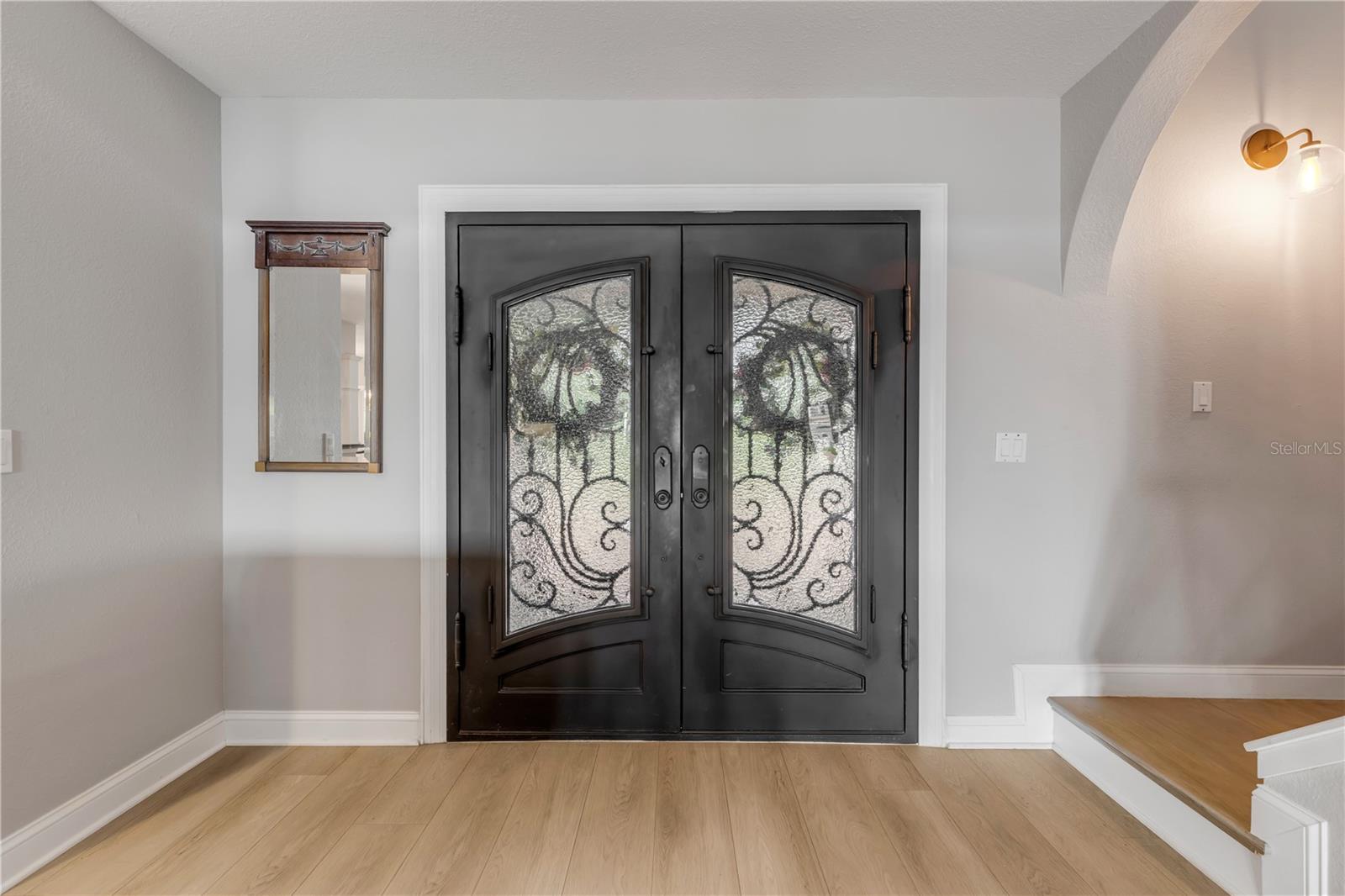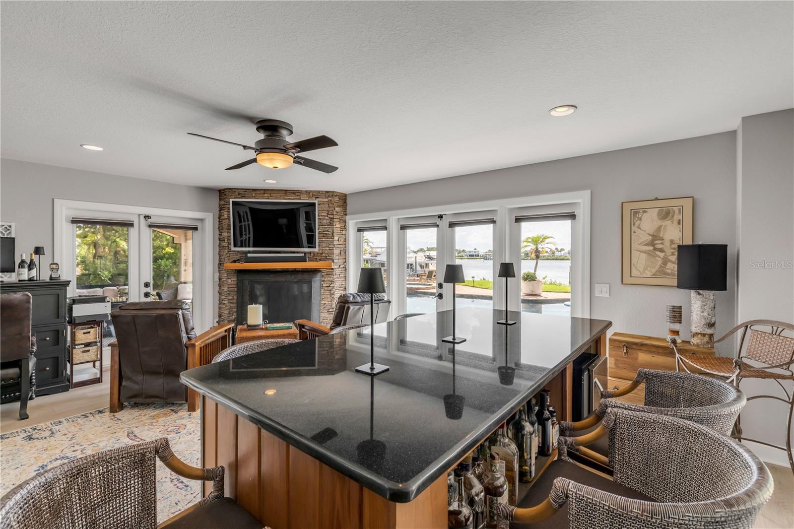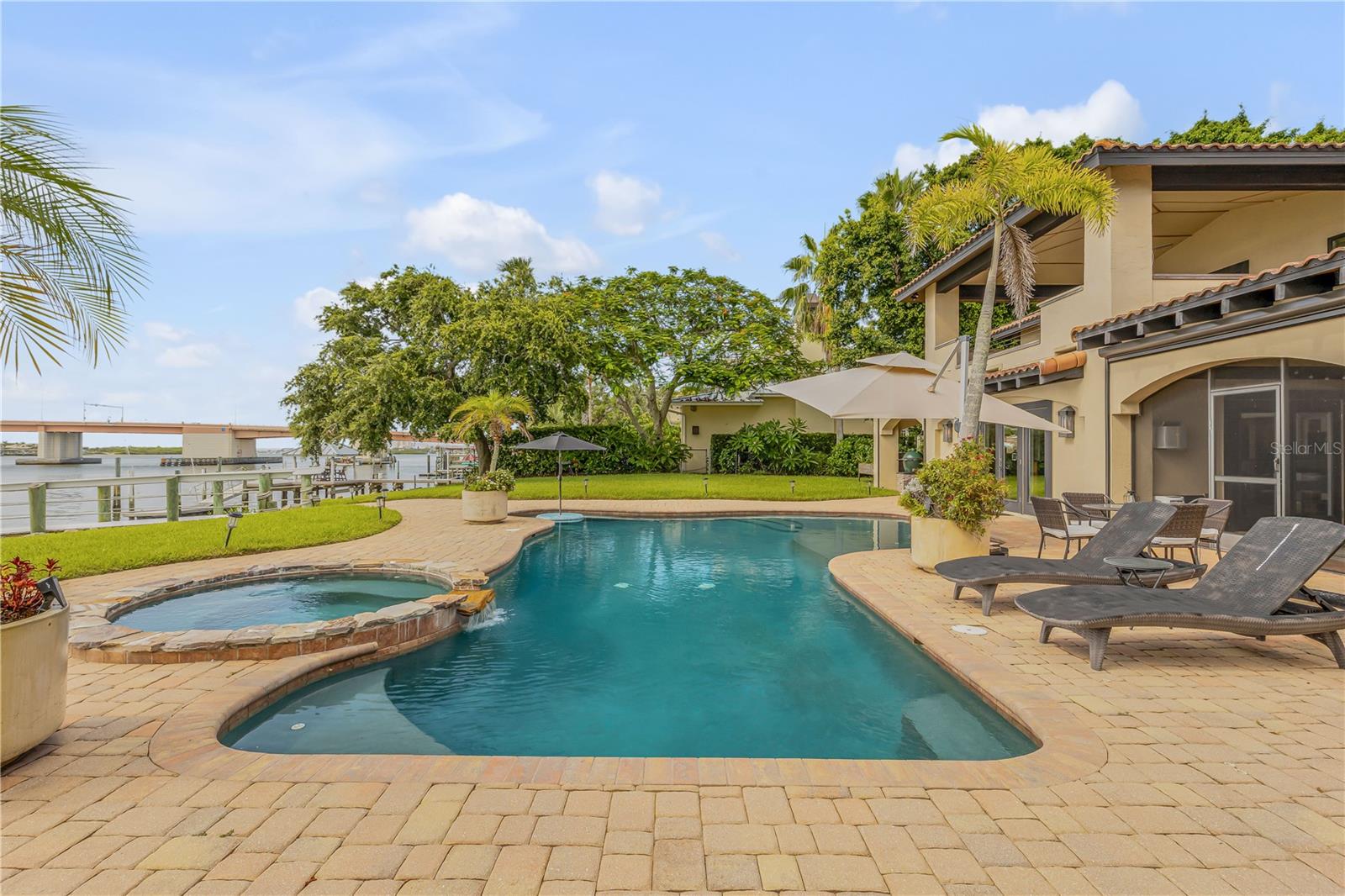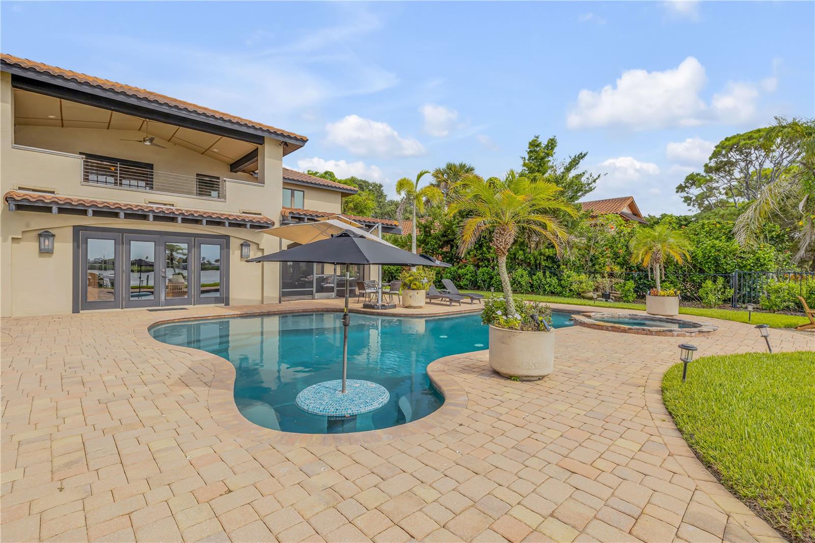 Welcome to waterfront luxury living at its finest in New Smyrna Beach! This stunning Intracoastal Tuscan style pool home boasts a 55' dock, 100' of river frontage, and unparalleled location in the coveted area of NSB’s North Beach. An entertainer’s delight and boater’s paradise, this home boasts an impressive deep water dock, directly on the Intracoastal, capable of accommodating up to an 80' yacht or multiple vessels, and the convenience of electric, water, and a boat lift. Enter thru the private courtyard to over 4000 sf of living space w 4 bedrooms, 3 full baths, as well as a detached studio/mother-in-law suite w full kitchen, bedroom, and bathroom. Set on a huge 1/2-acre lot, this home's outdoor oasis features a stunning pool/spa, a cozy gas fire pit, 2 screened patios, and the most amazing sunset views over the water. Thru the gorgeous custom front doors you'll admire an open floorplan, soaring ceilings up to the 2nd story, and a large comfy family room sitting right off of the kitchen and dining room. The gourmet kitchen is a chef's dream, featuring a gas range, premium SS appliances, elegant white cabinetry, granite countertops, all enhanced by stylish breakfast bar seating. The adjacent formal dining room w french doors, offers beautiful views of the water and leads directly to 1 of the 2 large patios. The family room/Florida room features a sophisticated bar, cozy fireplace, and panoramic views of the lush backyard and river making it the ultimate entertainment space. You’ll also find a cozy office space featuring a custom wine cabinet and amazing views. Follow thru the barn doors to a private guest suite/bedroom w full bath. Upstairs, you’ll discover the elegance of exquisite wrought iron railings, French doors, and 3 additional bedrooms. The master retreat features a newly renovated bath w classic clawfoot tub, stone vanity, and expansive tile work. A versatile bonus room or gym includes a custom wood sauna and leads to one of the most prized features of this home - the spacious, inviting balcony adorned w gas fire lamps and absolutely stunning sunset views over the ICW. You'll also find 2 additional bedrooms—1 w a private balcony overlooking the front courtyard and the other with serene water views. Other notable features include a large inside utility room, commercial-grade LVP flooring, a whole-house generator, and 2 recently upgraded HVAC systems. The outdoor space is a true sanctuary featuring 2 separate pavered patios w automatic roll down screens, stunning tongue-and-groove ceilings, an exceptional outdoor kitchen equipped w a grill and a Green Egg, and seamlessly transition to the resort-like pool area. The pool itself showcases a Pebble Tec bottom, soothing spa, tanning deck, and built-in table w seating and an umbrella, creating an idyllic setting for relaxation and entertaining. The detached studio apartment, ideal for guests or in-laws, features a chic kitchen w coastal blue cabinetry, LVP flooring, full bath, and sliding doors leading to a charming pavered porch w water views. Located just steps away from Flagler Ave, you'll find yourself immersed in the vibrant beachside scene. Whether you're seeking a boaters dream home or the perfect river front vacation home, this waterfront haven is not just a house; it's a lifestyle.