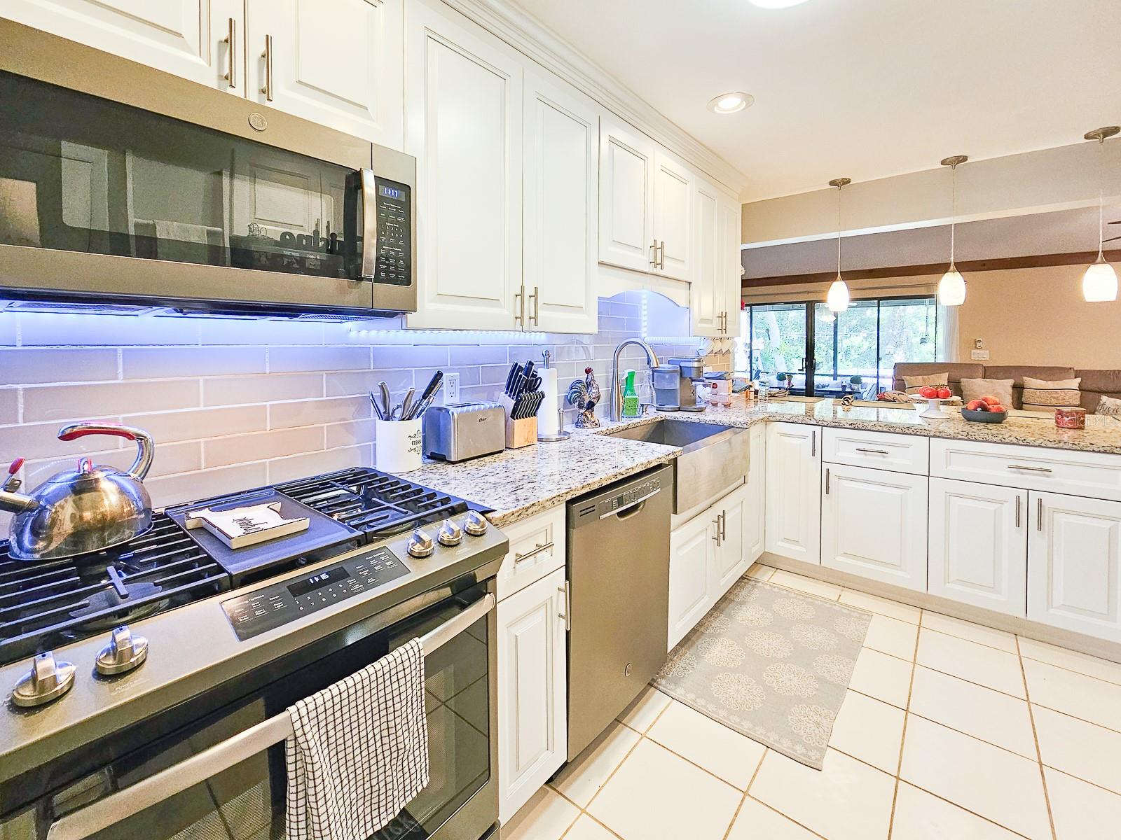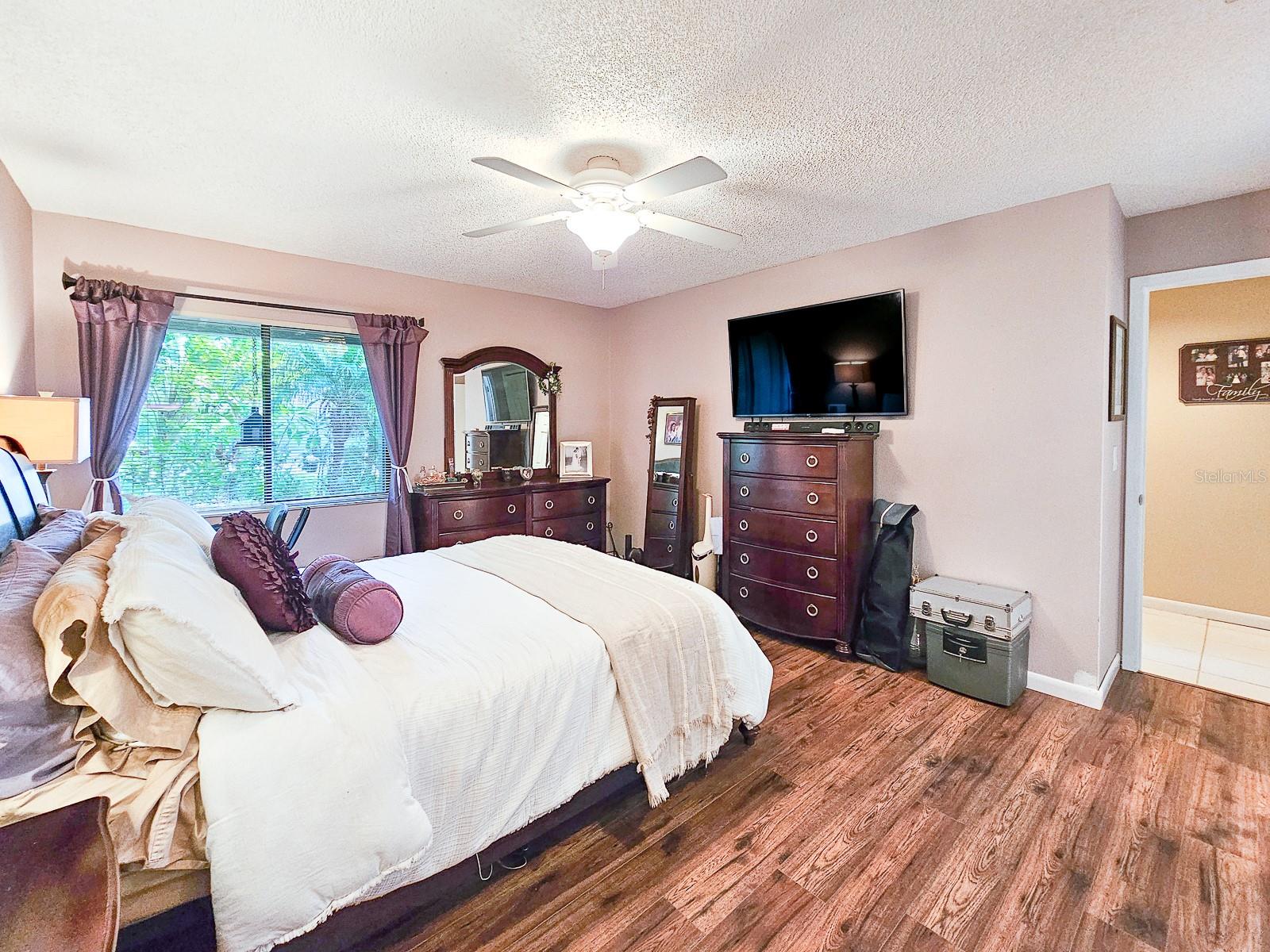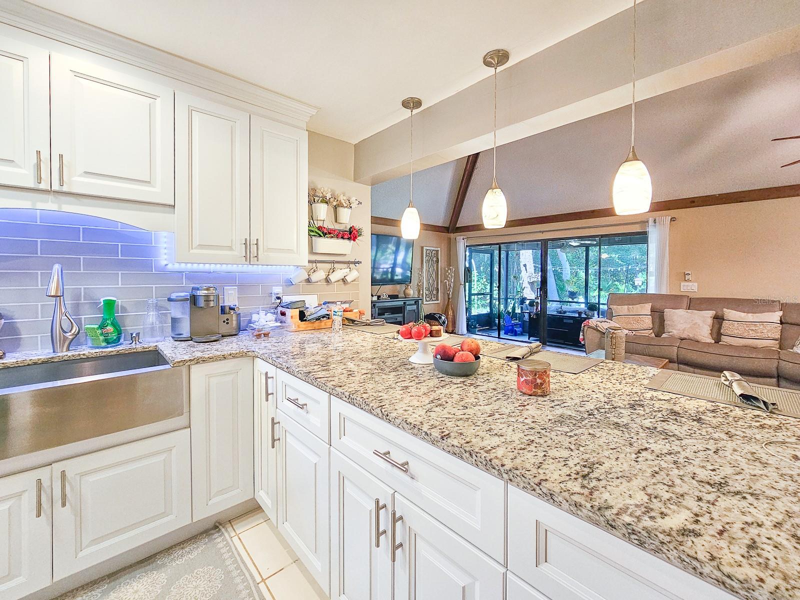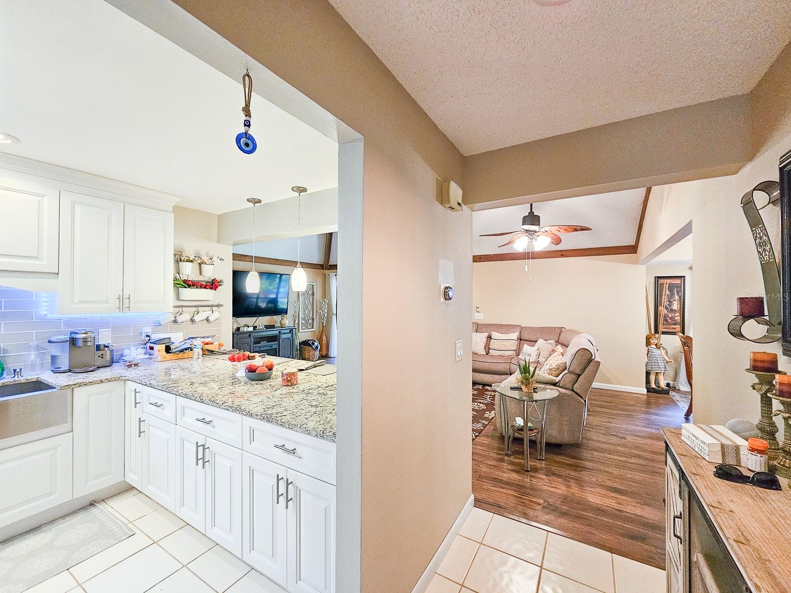PRICE REDUCED! Owner is Motivated! Beautiful home in Sugar Mill Country Club, a private gated community. Updated, well maintained home in desirable Brae Burn. Luxury wood flooring throughout. Open floor plan with glass sliders from living room to Florida room. Florida room fully screened, opens to backyard with beautiful tropical garden, wood deck, outdoor shower and rain catchment barrel for watering plants. Kitchen updated 2019 with granite countertops, soft close wood cabinets, gas stove with griddle, farm sink, breakfast bar, pantry, recessed lighting and GE appliances. Dining room was Third Bedroom with closets and can be easily converted back! Master bedroom with ceiling fan and master bath with ceramic tile flooring, ceramic tile shower stall, Corian vanity and skylight. Second bedroom perfect for guests or office. Second bath has ceramic tile flooring, ceramic tile shower stall and Corian vanity. Attached garage with ceiling fan and AC. New roof in 2016, AC 2022/2018, water heater 2018 and water softener system. Brae Burn community enjoys three pools, pool two is heated for winter enjoyment, HOA fees also cover maintenance of front yard and sprinklers, exterior home painting every six years and roof maintenance of clearing of debris and gutters four times a year.
