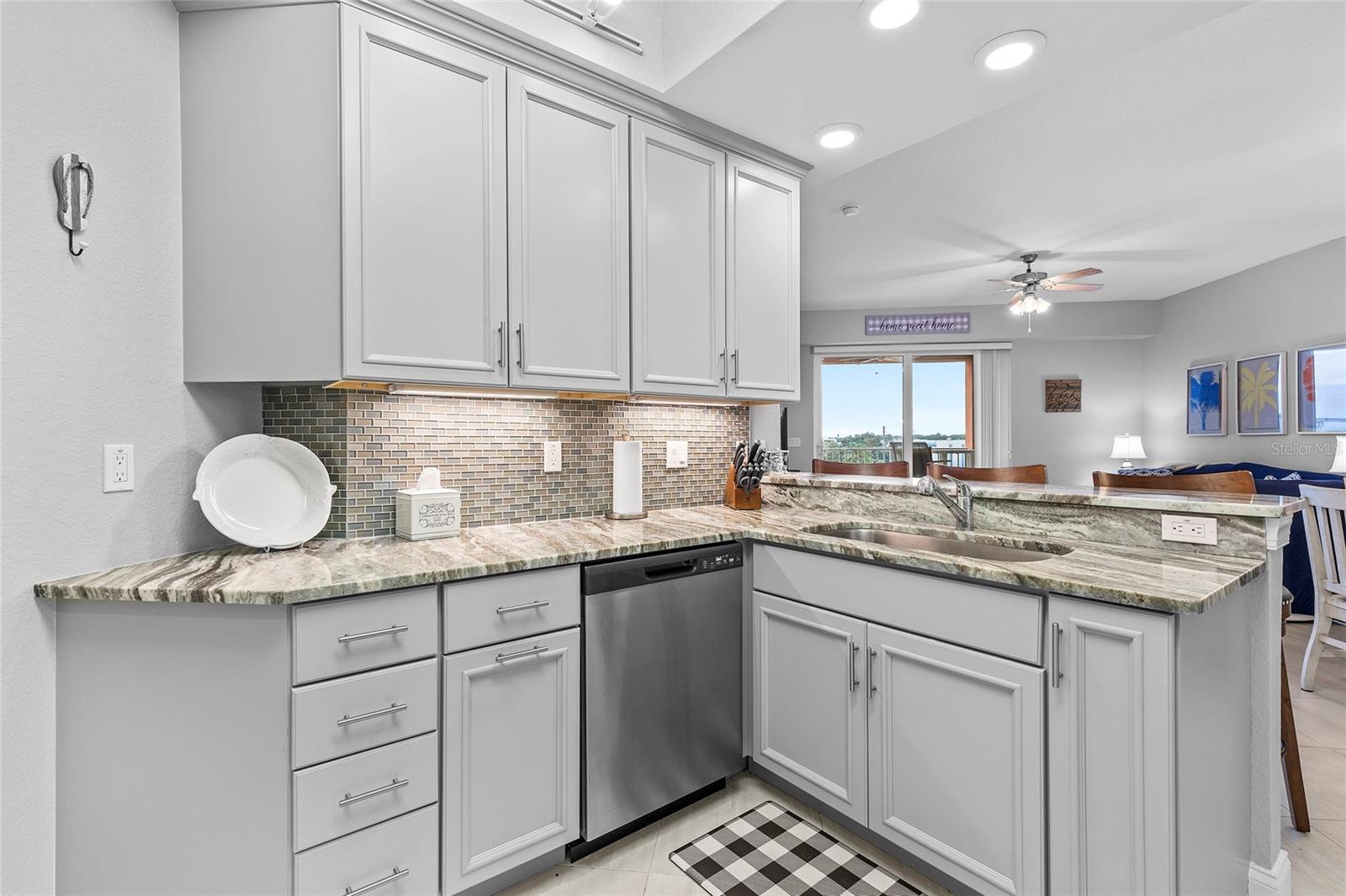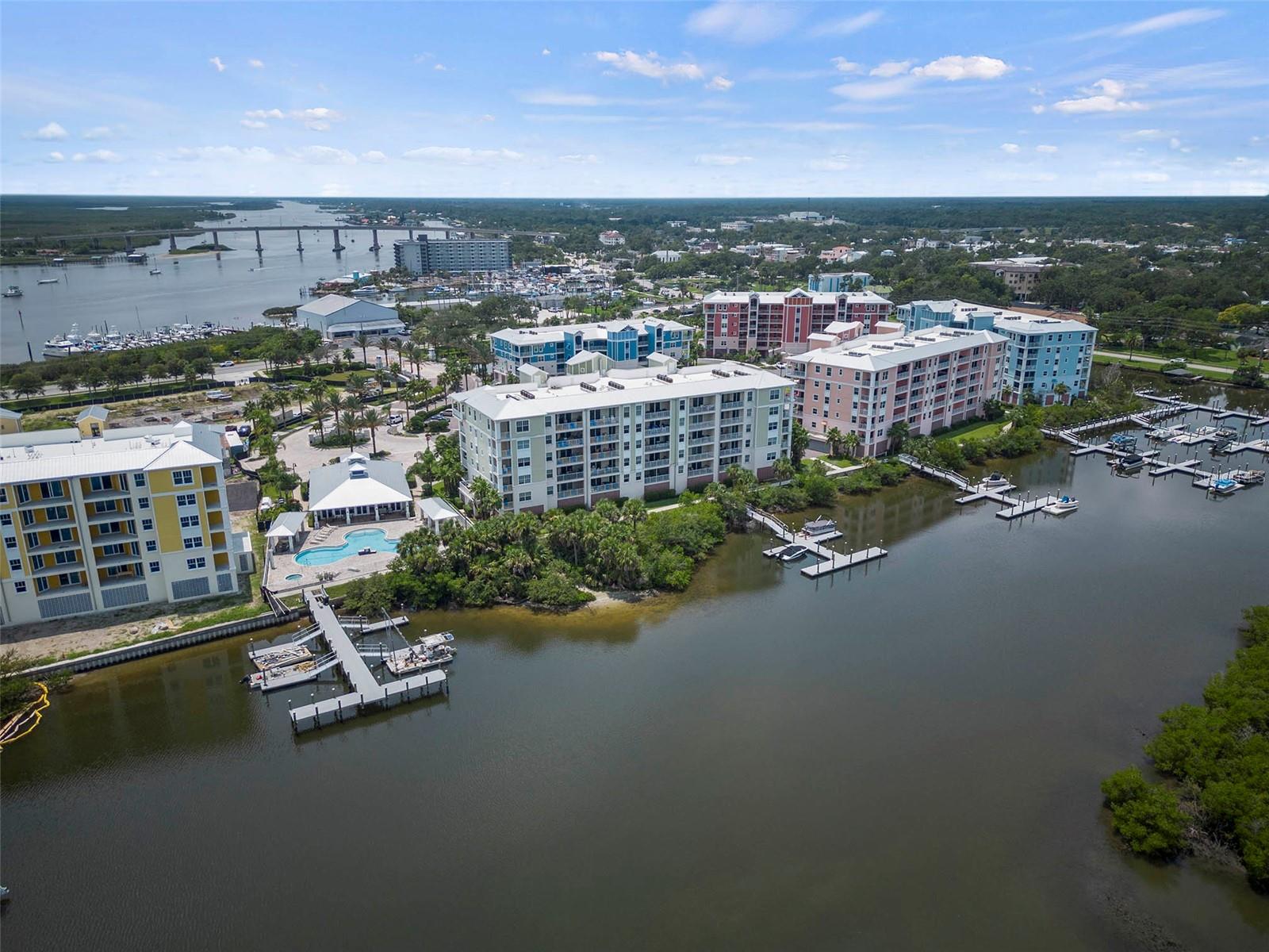 Intracoastal Two Bedroom Two Full Bathroom Residence in Riverwalk / Solid Wood Cabinets / Stainless GE Appliances / Stainless Sink / Custom Stone Counter Tops / Glass Tile Backsplash / Southern Views, / All Bedrooms Feature Walk-In Closet / Master Bedroom features a Tempur-Pedic Split King Mattress with motorized frame/ Master Bathroom Feature Double Sinks / Multi Jetted Tub and Walk-In Shower. Large lanai/balcony(20' X 10') Overlooking the NSB Marina, Intracoastal. Riverwalk is located in the heart of New Smyrna Beach. Easy Access to the Mainland, and a close walk to the Brannon Center, Riverside Park and Canal Street's shopping, restaurants & Arts Festivals. To the East, it's an easy walk, bike ride or golf cart drive to the restaurants, bars, boutiques & Beach Ramp on Flagler Ave. / Assigned Parking Space in the Under-Building Garage / 5th Floor Private Storage Closet. Floating Deep Water Boat slips Are Available.