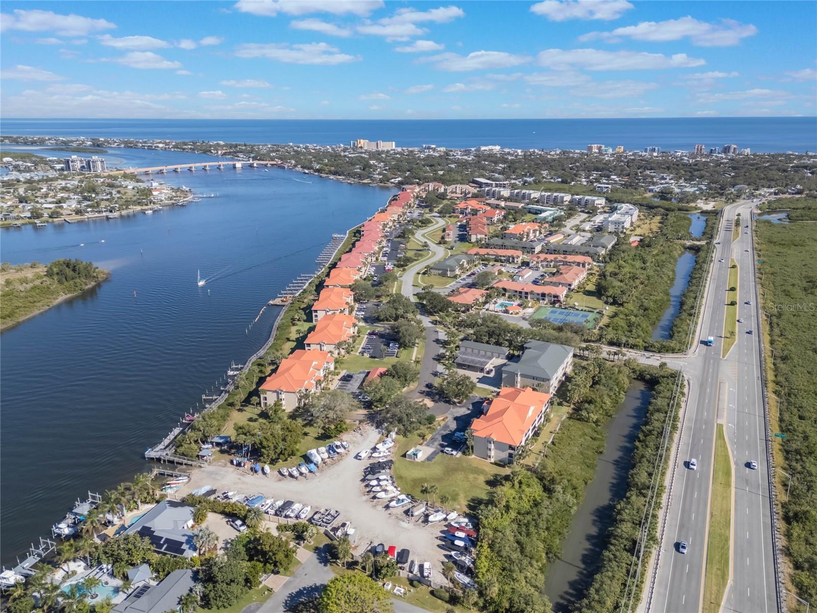Witness unforgettable sunsets from your 3rd floor terrace—where vibrant skies paint the horizon in rich, glowing colors and linger long after the sun dips below the waterline. The tranquil afterglow sets the perfect tone for peaceful evenings along the Intracoastal. Whether you're enjoying a quiet moment alone or sharing the view with friends, this riverfront setting offers a lifestyle defined by natural beauty and daily serenity. This top floor corner/end unit with elevator access has beautiful panorama direct water front views showing both the south causeway & north causeway bridges, very rare on Bouchelle Island! Gorgeous Riverfront views are enjoyed immediately from your foyer entry, open living room, primary bedroom, kitchen & fabulous 24 ft riverfront screen porch allowing peaceful moments to enjoy dolphins playing, vivid sunsets, rainbows, July 4th fireworks, the NSB Christmas Boat Parade, boats traveling & nature at its best! This condo has been completely gutted from floor to ceiling & was professionally & custom remodeled with all new luxury & high end finishes completing that unique island style! Custom upgrades include; bamboo wood flooring in all living areas, tile flooring in riverfront porch, both bathrooms along with new cabinetry & premium granite counter tops. The kitchen ceiling has been raised & boasts designer cabinetry with accent lighting, granite counter tops, two pantries, crown molding, all stainless steel appliances including large stainless steel sink & washer & dryer. Other features include, power blinds, lighting fixtures, accent lighting, large closets, plantation shutters, attic access, new HVAC system, duct work & vent relocation. This top floor condo end unit with vaulted ceilings, stunning water views, designer renovations & chefs kitchen provides a great environment for living, family & friends to enjoy! Bouchelle Island Community Features a 1/2 mile New Riverfront Boardwalk, Observation Platform, 2 Resort Size Pools, Clubhouse with Fitness Room & Library, Tennis & Pickleball Courts, Chip & Putting Green Golf Course, Private Boat Ramp & Floating Dock. Contact Dock Master for rental rates & availability for Wet & Dry Boat Slips . Bouchelle Island is a friendly community and is located in an incredible location...close to the Ocean, restaurants and shopping!