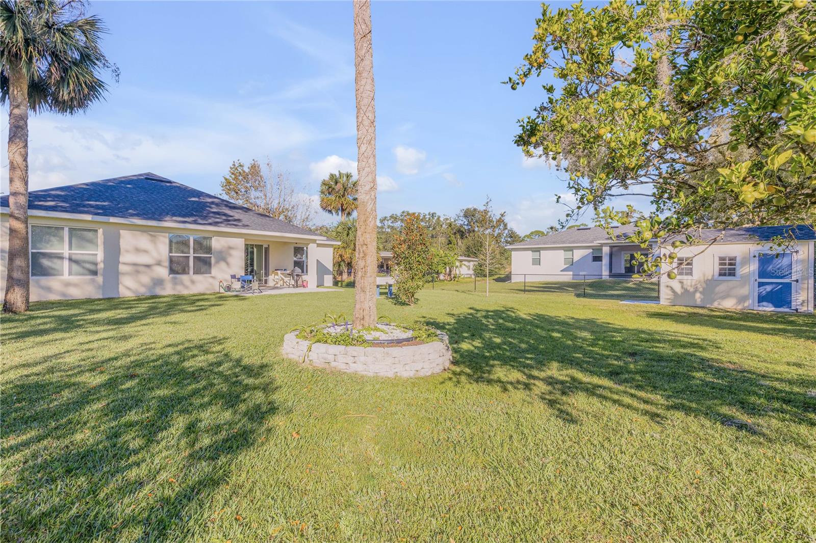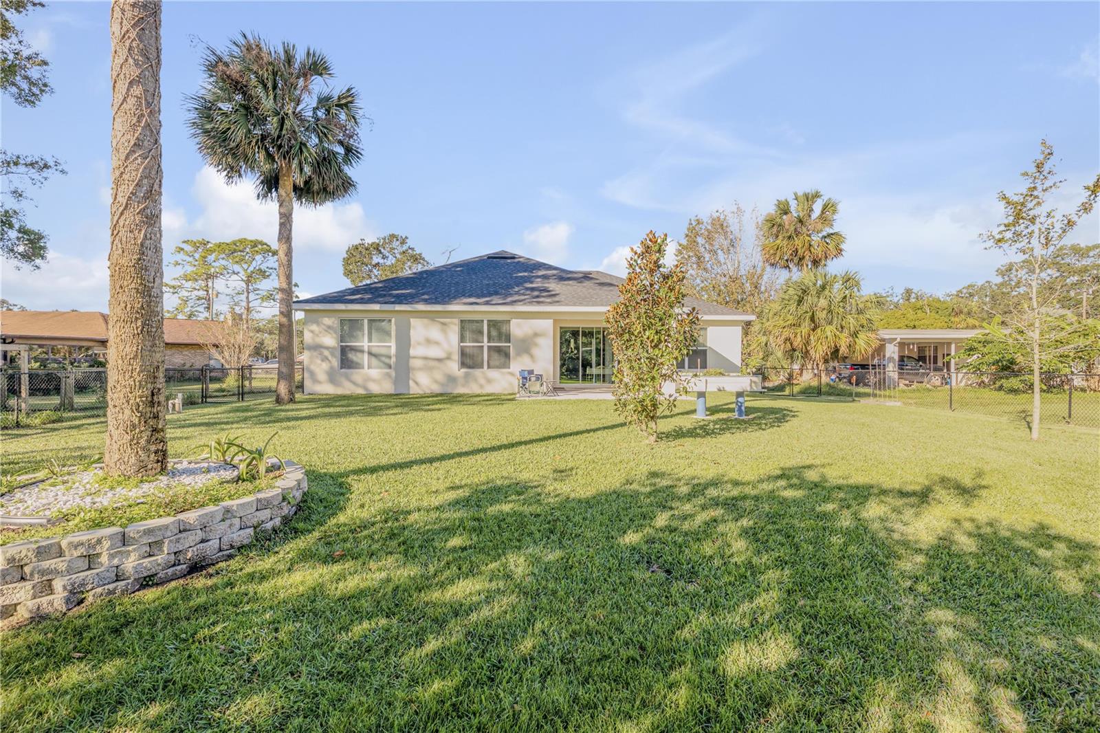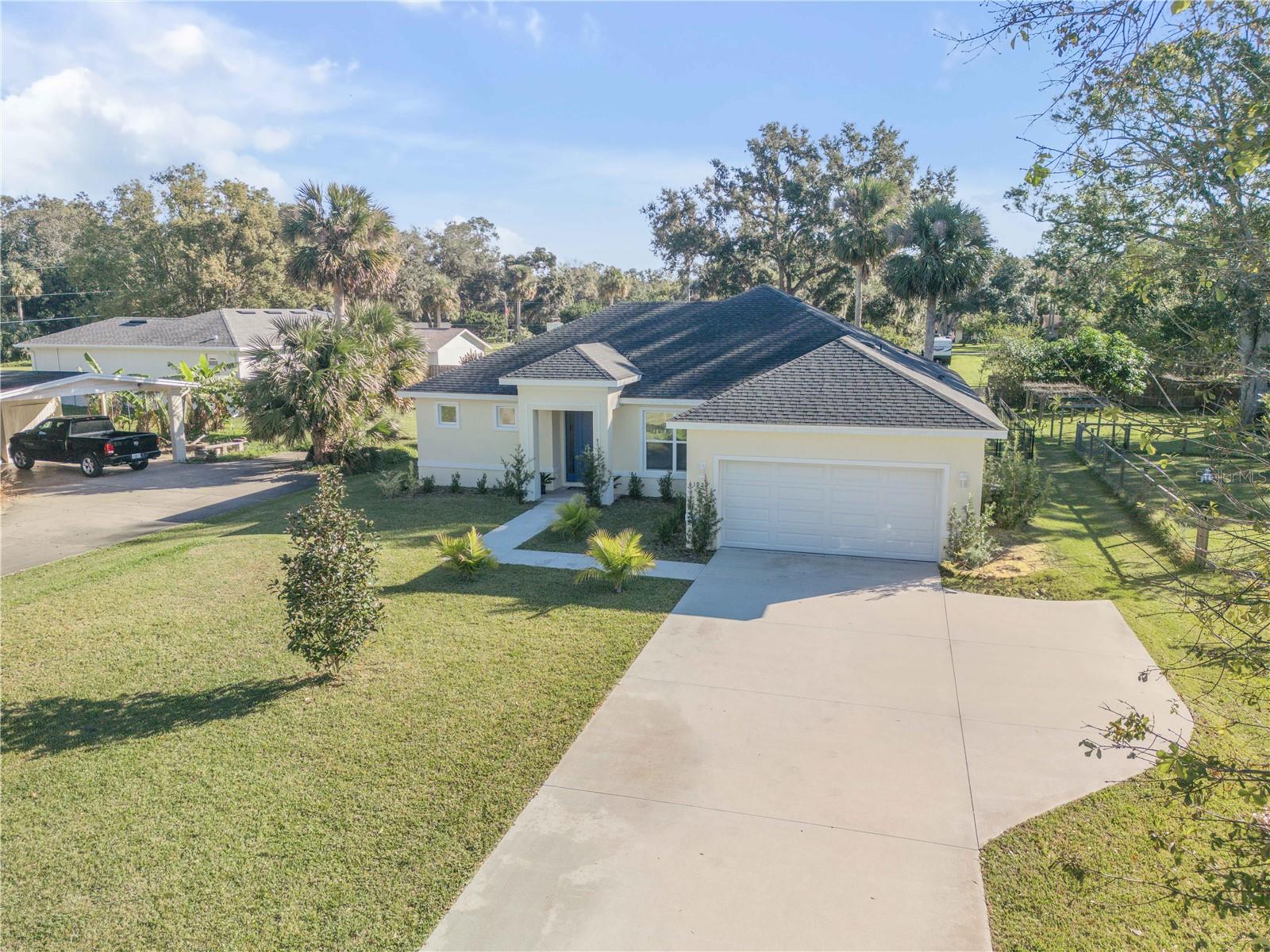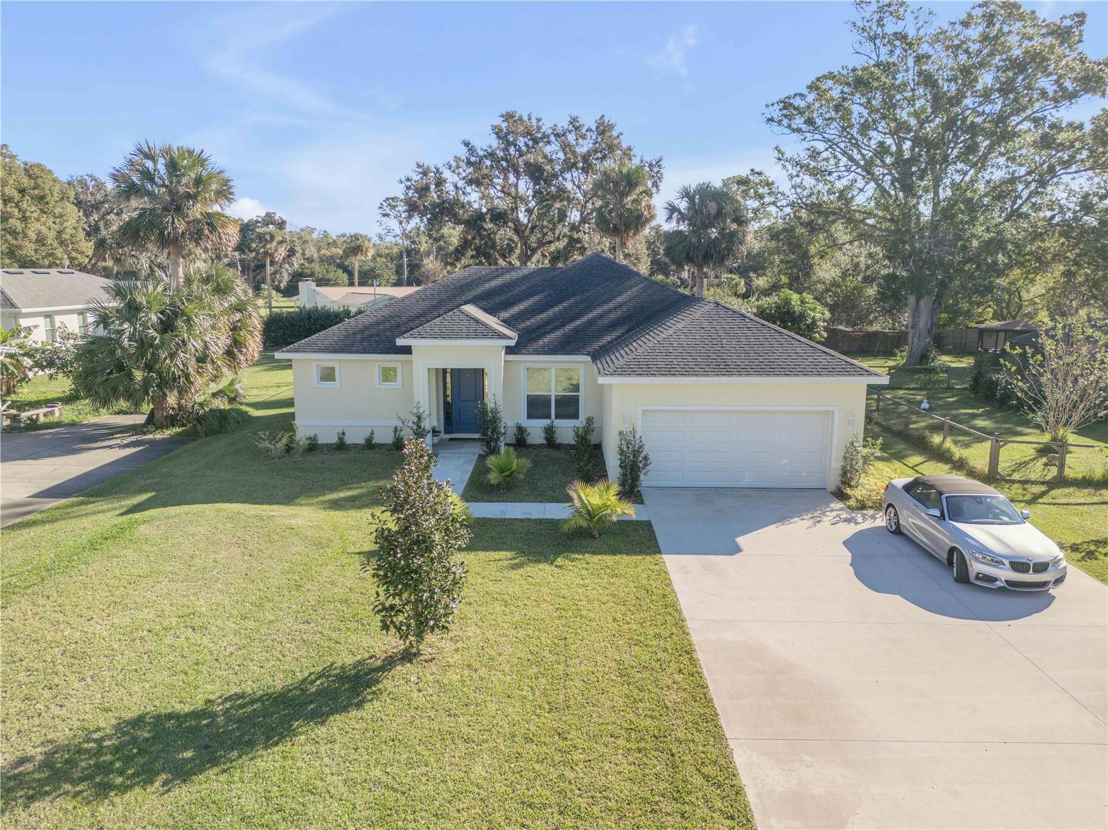 Welcome to your dream home! This beautifully designed 3-bedroom, 2-bathroom home built in 2022 offers a seamless blend of comfort and functionality. Step inside to discover 9-foot ceilings throughout, an inviting open floor plan, and an impressive 9-foot island that connects the spacious kitchen to the cozy living room. The primary suite features tray ceilings and a luxurious en-suite bathroom with his-and-her sinks and a spacious 5x5 walk-in shower! A private office adds flexibility for work or hobbies. The 2-car garage offers built-in storage, leading to a large mudroom and a separate laundry room complete with a sink. Outside, enjoy a covered back patio, a fully fenced backyard with a storage shed on a concrete pad – perfect for storing your lawn mower, tools and beach chairs. The owner also added a concrete pad for more parking to the side of the driveway. This home has everything you need and more. Schedule your tour today and discover all this .34 acres gem has to offer!
