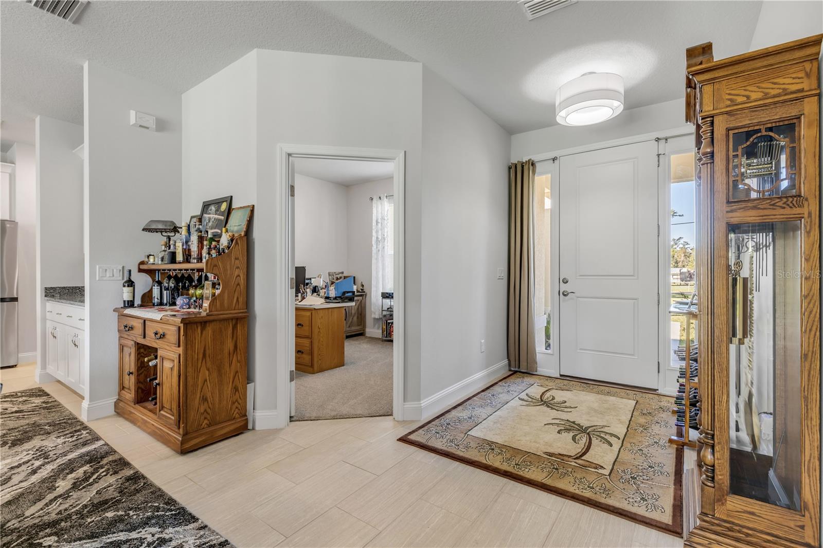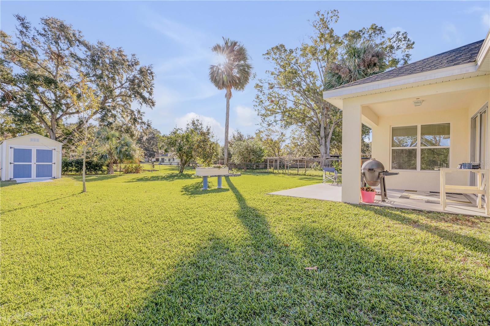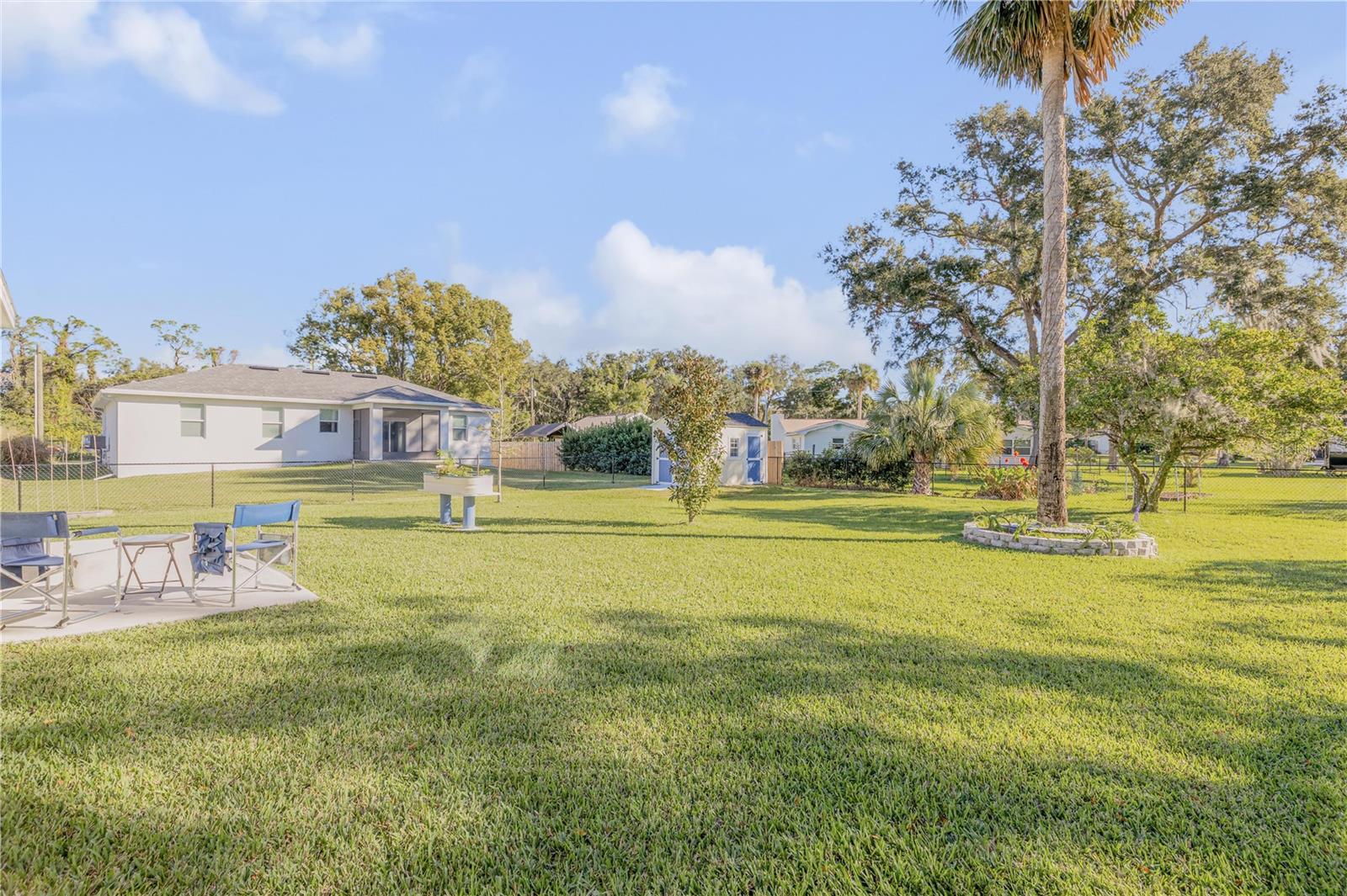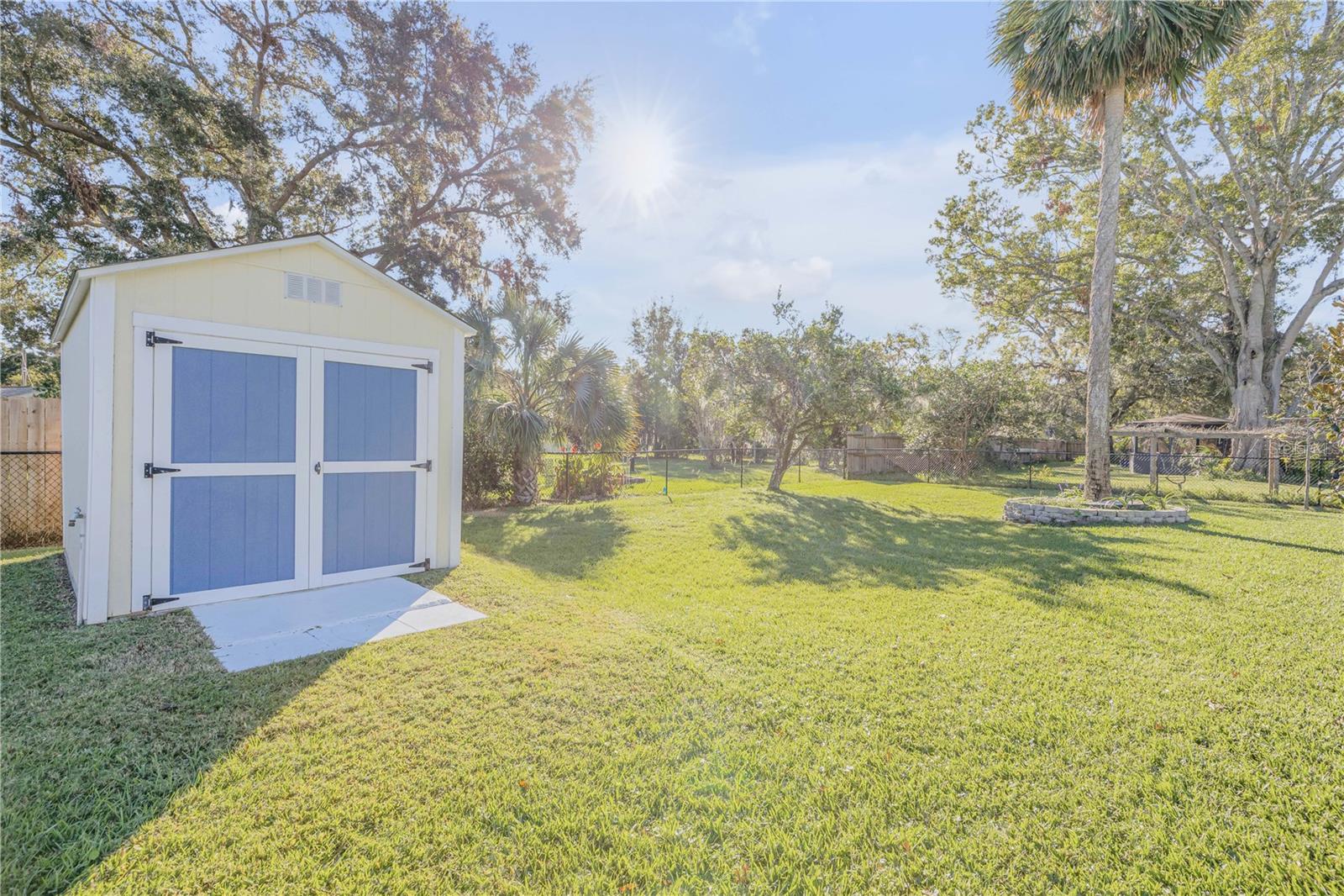 Welcome to your dream home! This beautifully designed 3-bedroom, 2-bathroom home built in 2022 offers a seamless blend of comfort and functionality. Step inside to discover 9-foot ceilings throughout, an inviting open floor plan, and an impressive 9-foot island that connects the spacious kitchen to the cozy living room. The primary suite features tray ceilings and a luxurious en-suite bathroom with his-and-her sinks and a spacious 5x5 walk-in shower! A private office adds flexibility for work or hobbies. The 2-car garage offers built-in storage, leading to a large mudroom and a separate laundry room complete with a sink. Outside, enjoy a covered back patio, a fully fenced backyard with a storage shed on a concrete pad – perfect for storing your lawn mower, tools and beach chairs. The owner also added a concrete pad for more parking to the side of the driveway. This home has everything you need and more. Schedule your tour today and discover all this .34 acres gem has to offer!