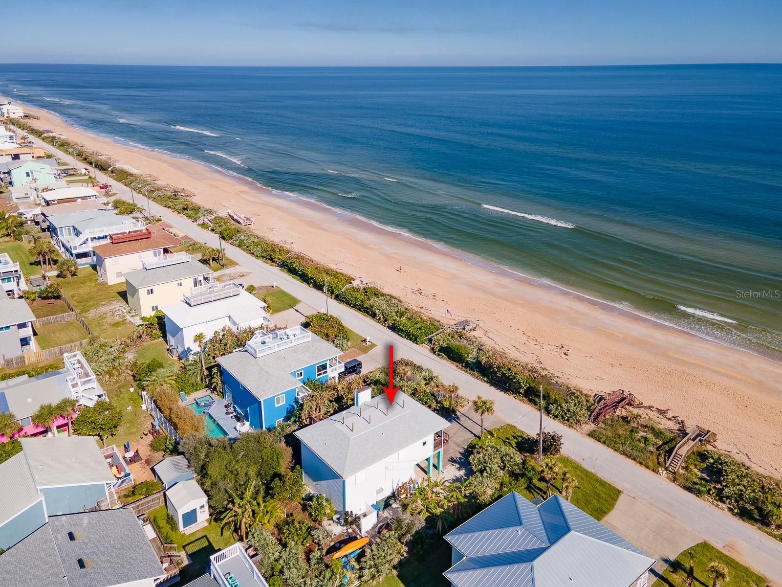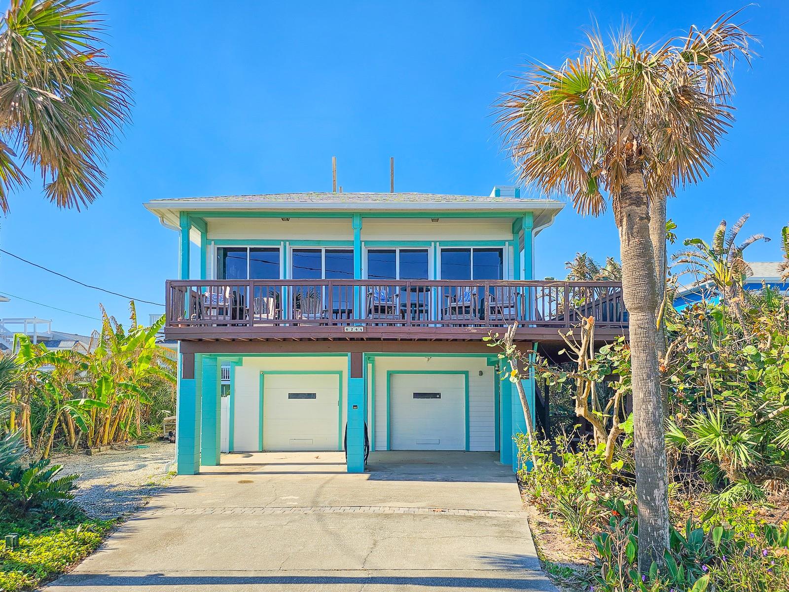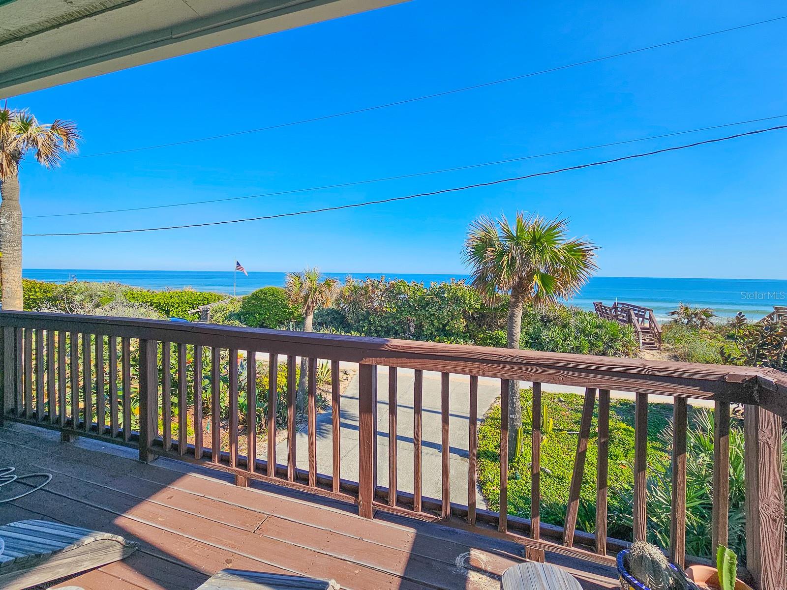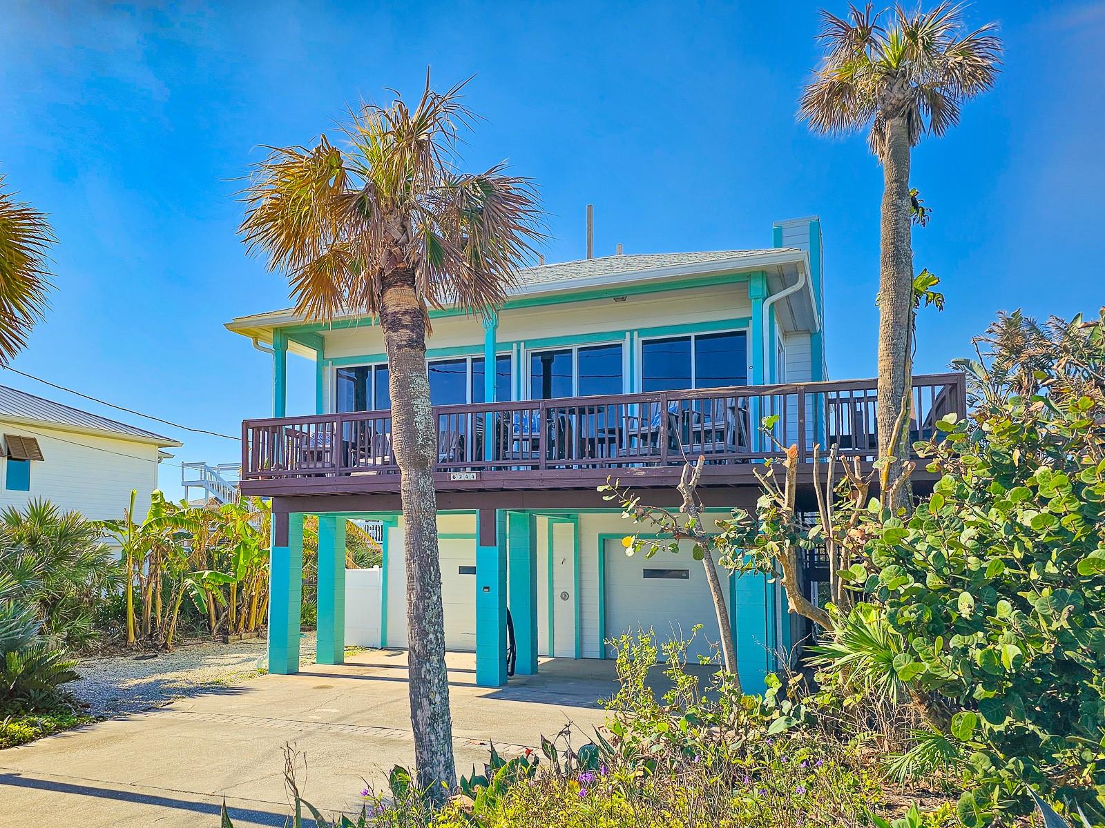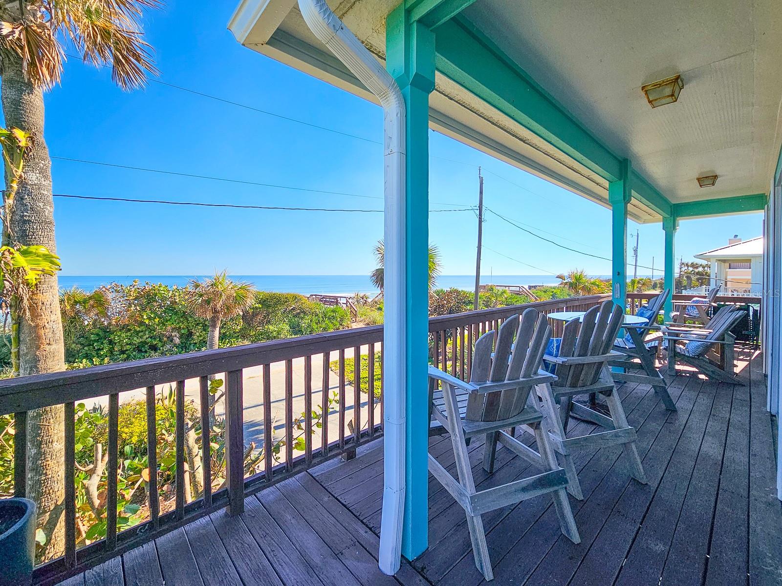 Rare opportunity to own 3 lot oceanfront home! Property is high and dry, one of highest dune elevations in New Smyrna Beach. Robust vegetation anchors the dune, making it extremely protected. The private deeded dune walkover is in the coveted, secluded beach section of Bethune Beach! Home has amazing ocean views from the large wrap-around deck along with 2 bedrooms and 2 baths and multiple built-ins. Two car garage has lift and will accommodate 3 vehicles. New roof in 2022. New HVAC in 2023, with Seer rating of 16.5. Whole house generator including auto transfer switch connected to three propane tanks and hurricane shutters. Outside propane connection on north side of garage to connect your grill. New 50 gallon hot water tank. Current termite bond. Outdoor shower. Plenty of parking with oversized driveway.