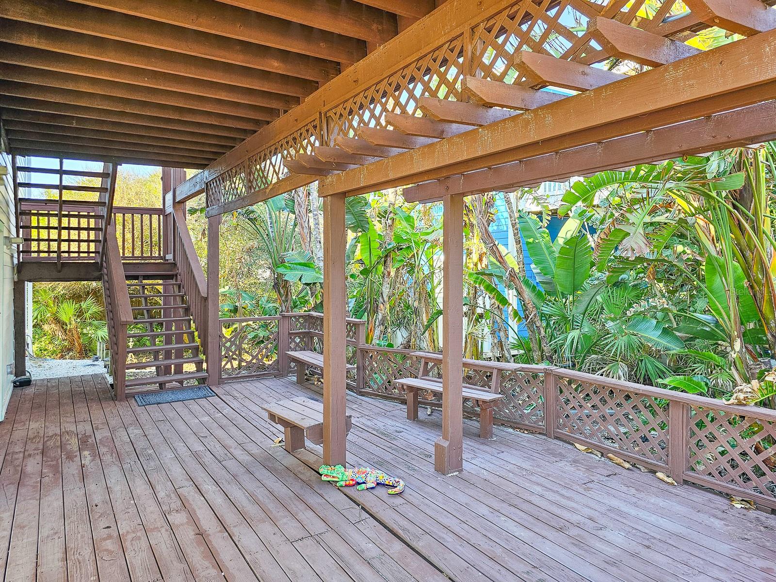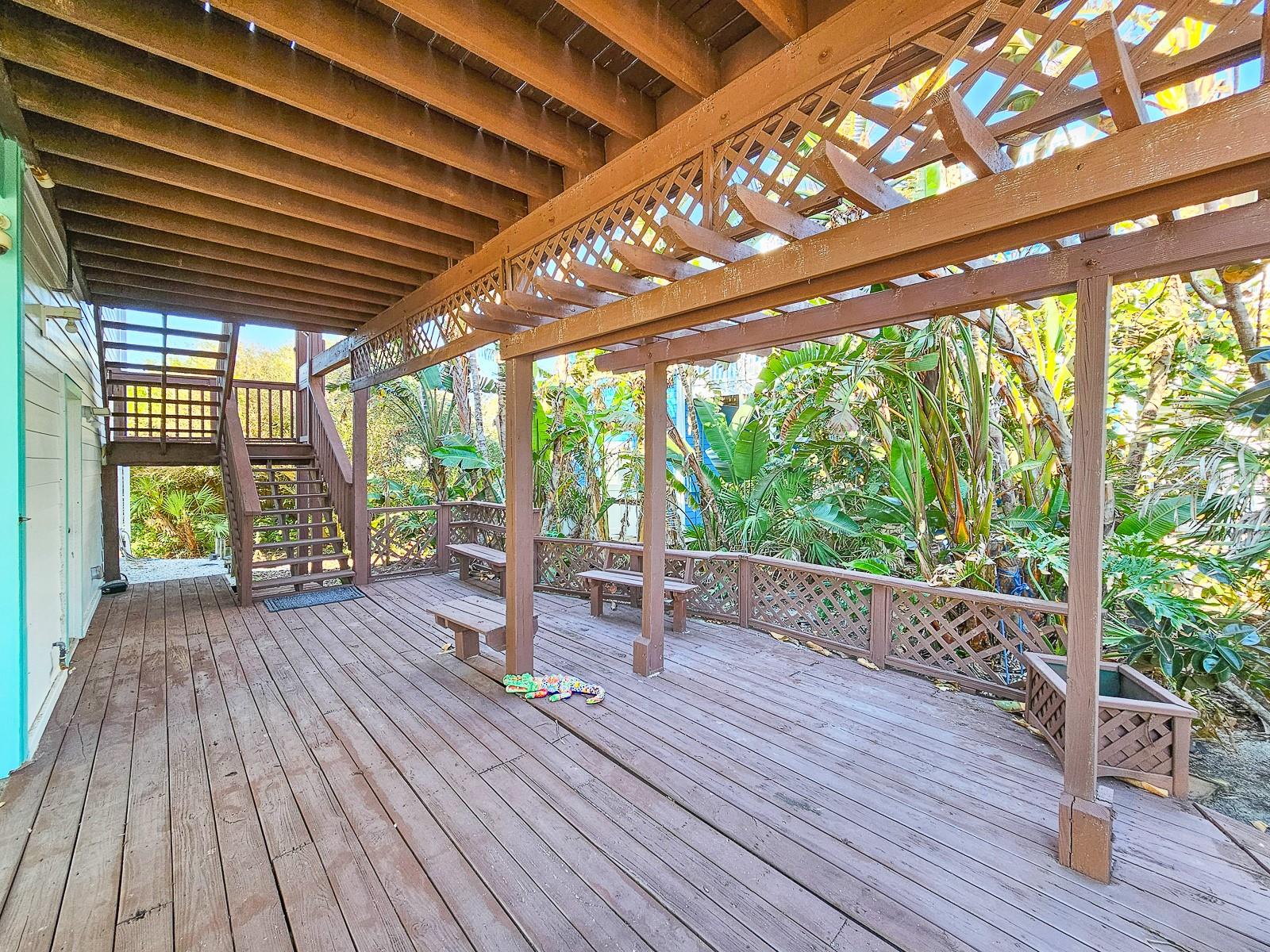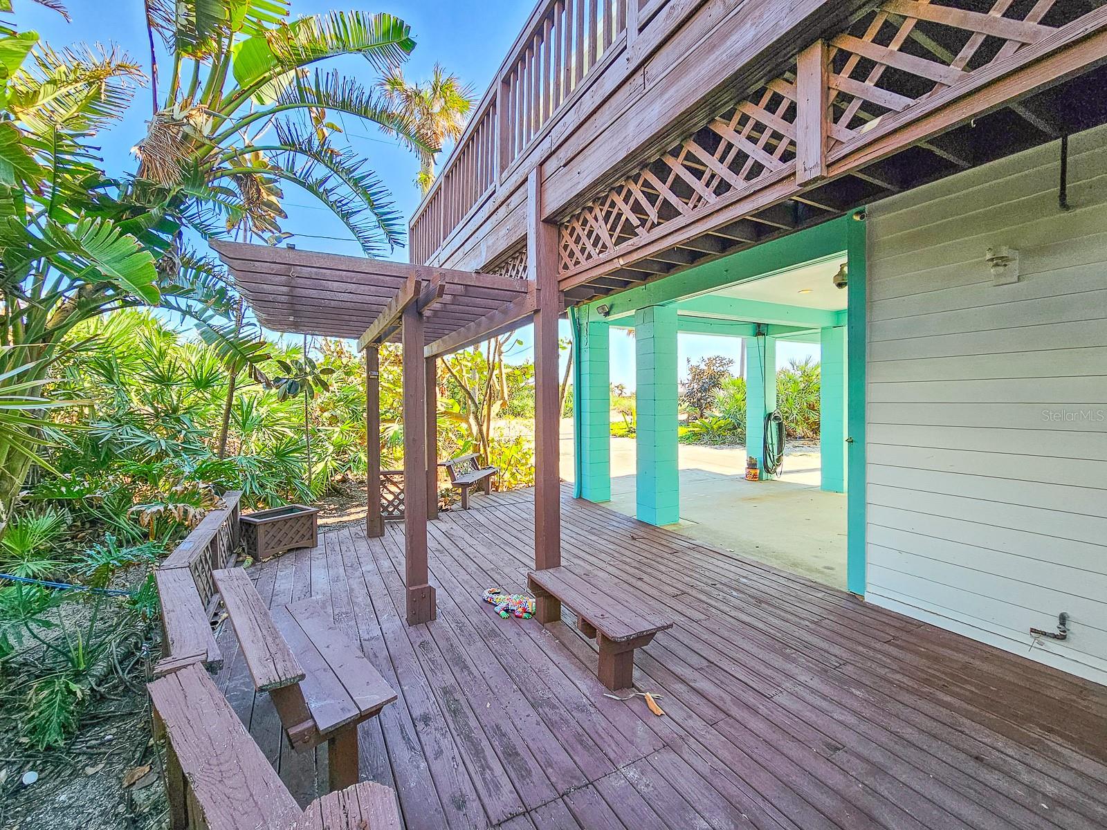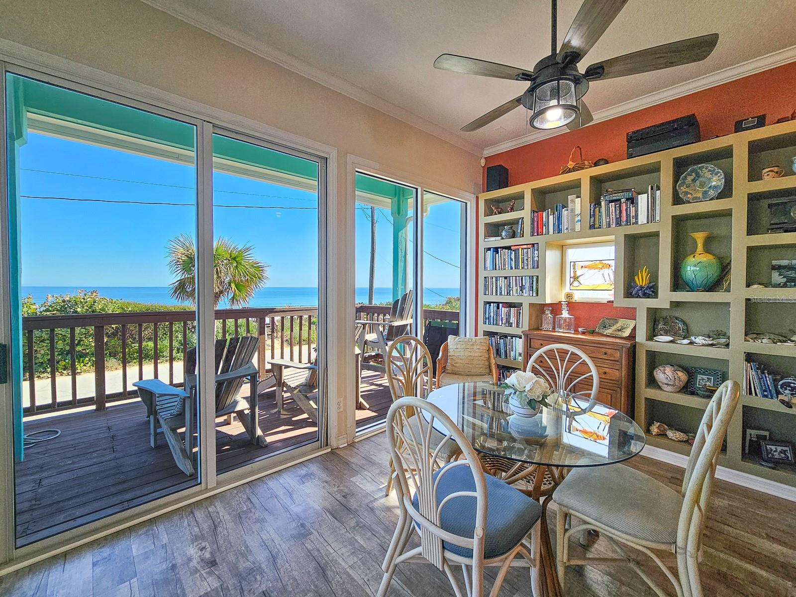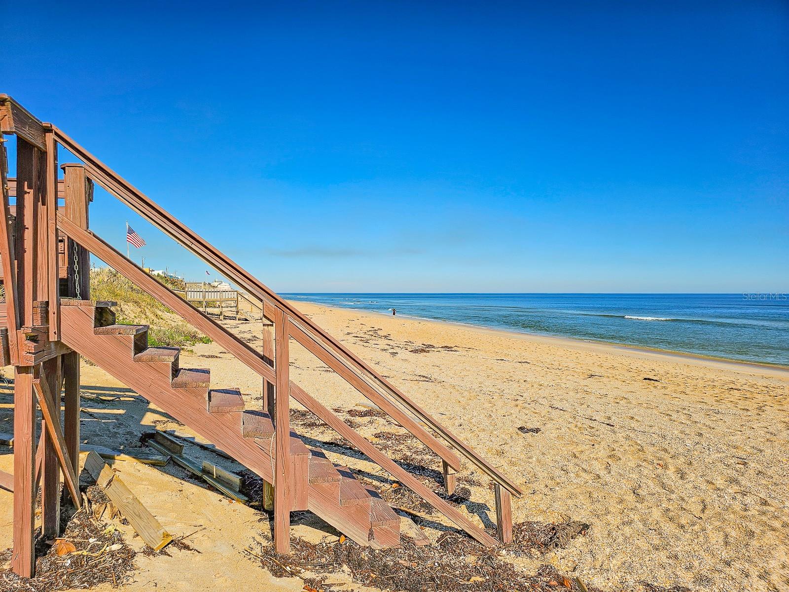 Rare opportunity to own 3 lot oceanfront home! Property is high and dry, one of highest dune elevations in New Smyrna Beach. Robust vegetation anchors the dune, making it extremely protected. The private deeded dune walkover is in the coveted, secluded beach section of Bethune Beach! Home has amazing ocean views from the large wrap-around deck along with 2 bedrooms and 2 baths and multiple built-ins. Two car garage has lift and will accommodate 3 vehicles. New roof in 2022. New HVAC in 2023, with Seer rating of 16.5. Whole house generator including auto transfer switch connected to three propane tanks and hurricane shutters. Outside propane connection on north side of garage to connect your grill. New 50 gallon hot water tank. Current termite bond. Outdoor shower. Plenty of parking with oversized driveway.