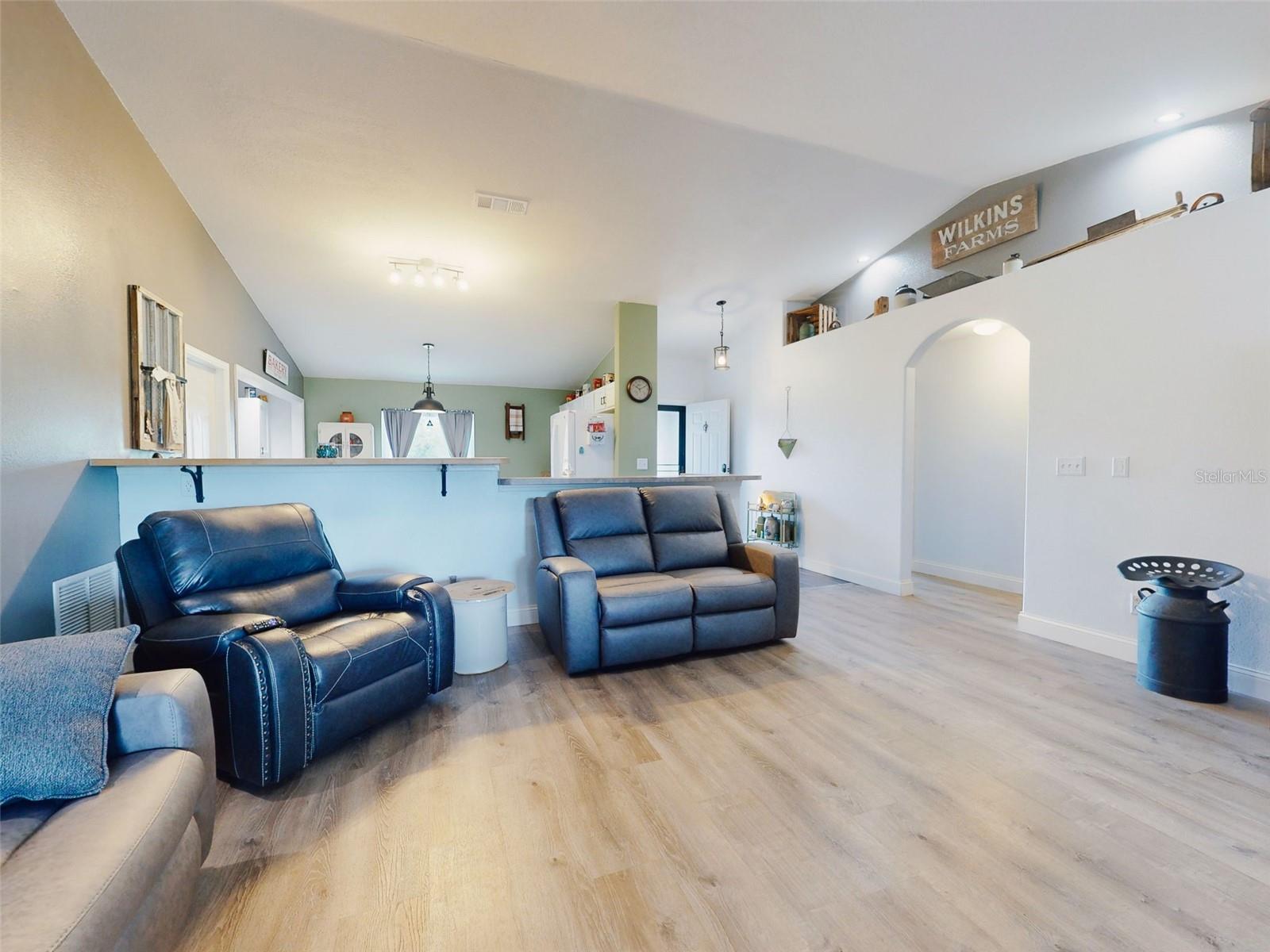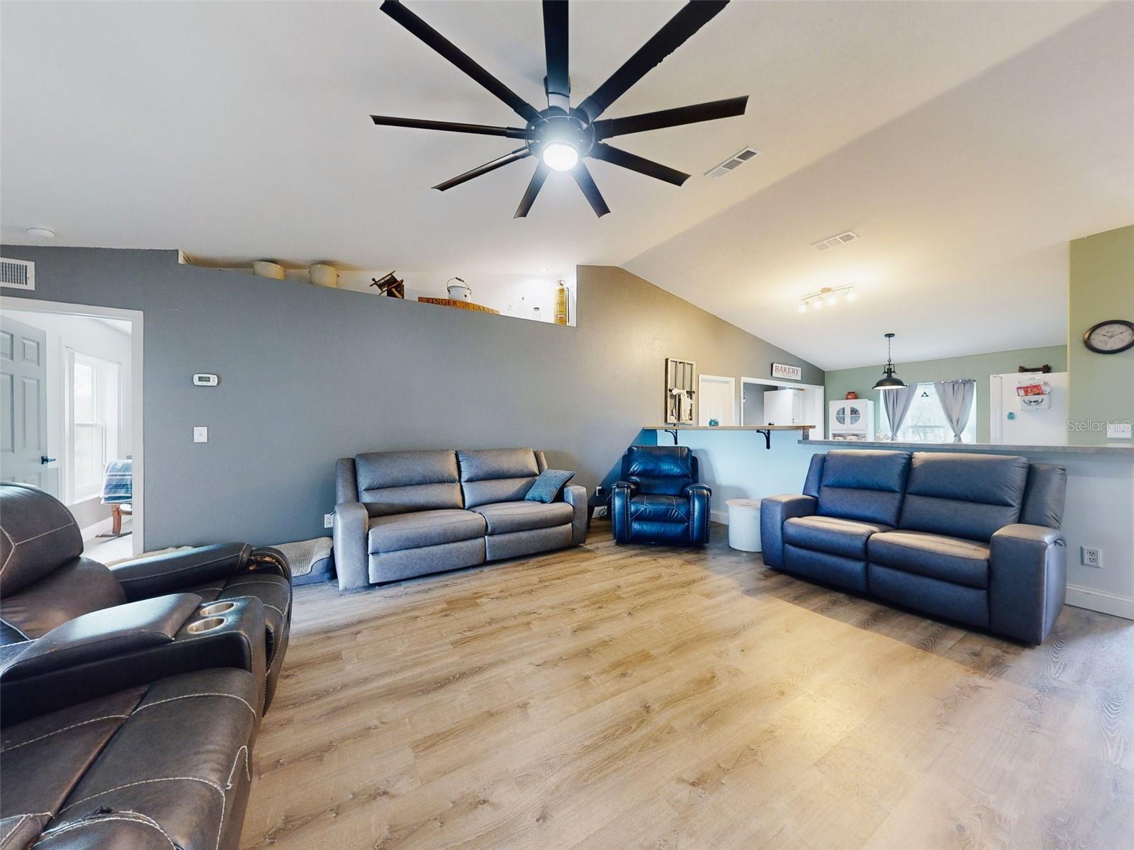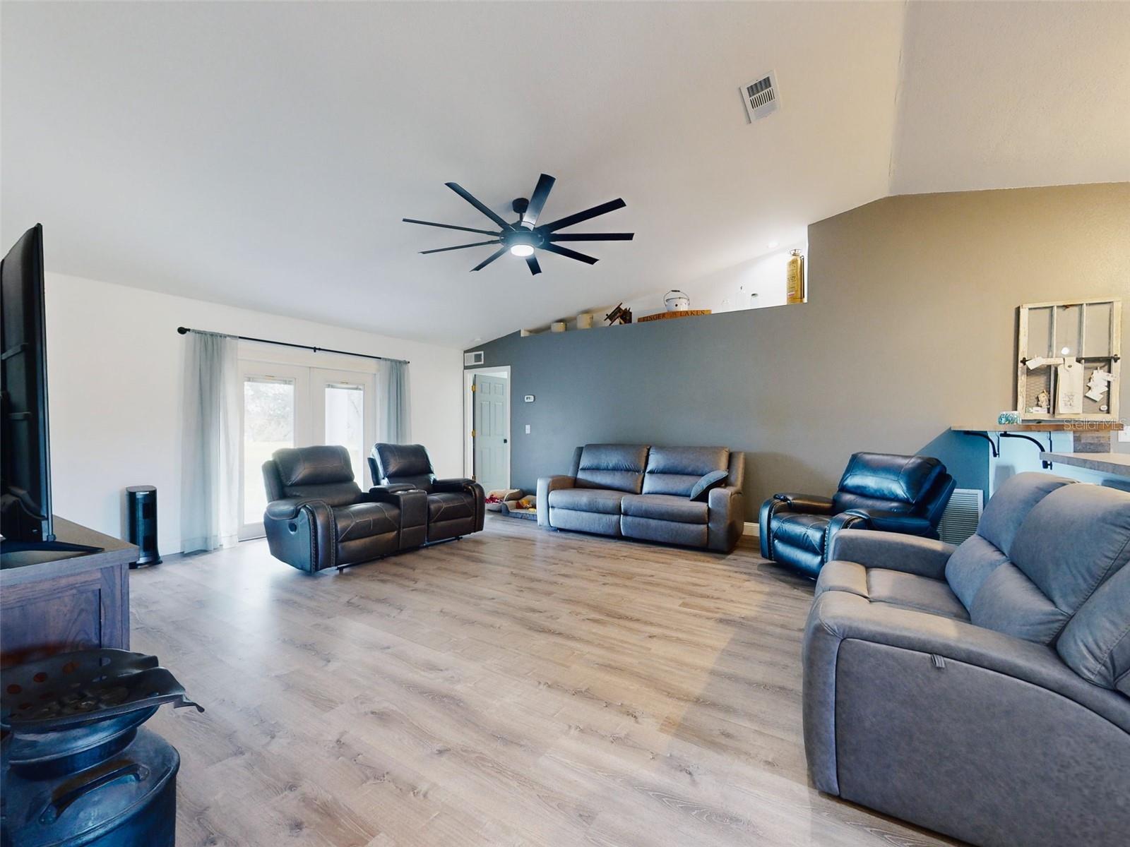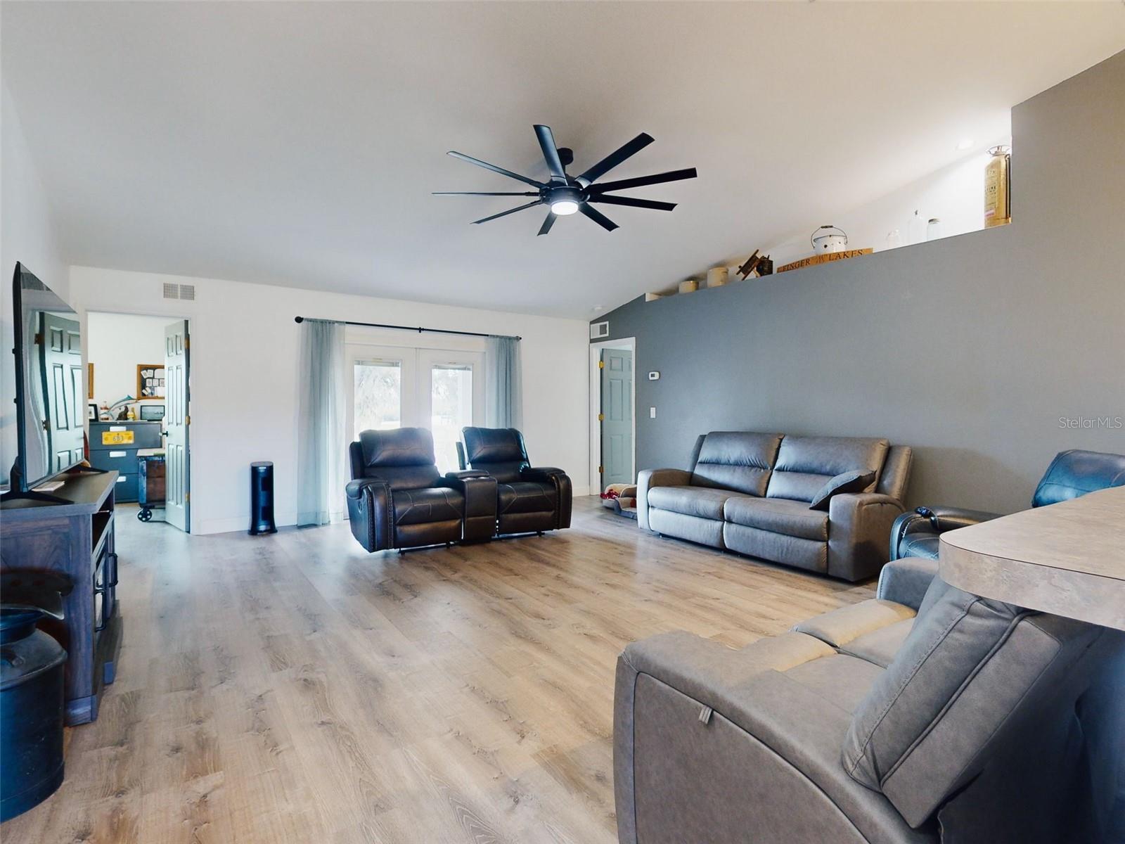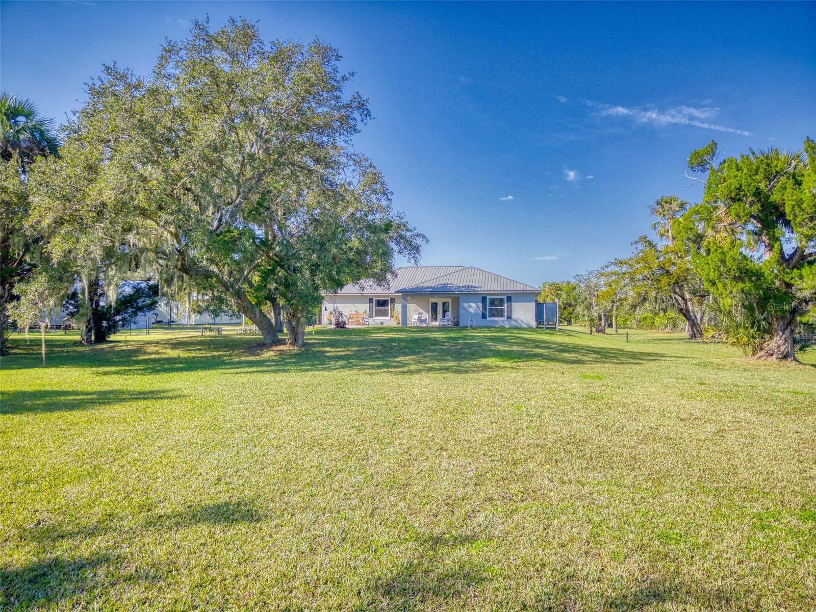 Private Waterfront Paradise – Welcome Home to 977 Bay Drive, New Smyrna Beach. This rare sprawling homestead offers the perfect combination of serene rural living and modern convenience on over 3 acres of lush, picturesque land along the tranquil Turnbull Creek, which feeds into Turnbull Bay. Designed for those who value peace, privacy, and nature, this eco-friendly concrete block home features a durable metal roof installed in 2019, new windows, and underground electric for efficient, worry-free living. Inside, the home boasts an open floor plan with 3 bedrooms and 2 Baths split-bedroom layout, updated flooring, and modern lighting throughout. The recently refreshed eat-in kitchen offers abundant counter space, generous storage, and thoughtful design updates, while the spacious owner’s suite features a beautifully remodeled en-suite bath and walk-in closet. The property’s amenities make it truly unique. A detached 32x60 workshop and garage, partially insulated and equipped with electric and air conditioning, offers endless possibilities for hobbies, storage, or entertaining. This property includes a separate 1 bedroom 1 bath private in-law suite with a kitchenette providing a perfect space for guests, rental income, or a secluded retreat for a personal gym or studio. The expansive grounds offer panoramic views of Turnbull Creek, where you can enjoy world-class fishing, kayaking, paddle-boarding, or simply relaxing and soaking in the natural beauty from your back porch. Tucked away on a quiet road behind mature foliage, this home provides a perfect sanctuary while remaining conveniently located. Don’t miss this rare chance to own a truly one-of-a-kind property. Schedule your private showing of 977 Bay Drive today!