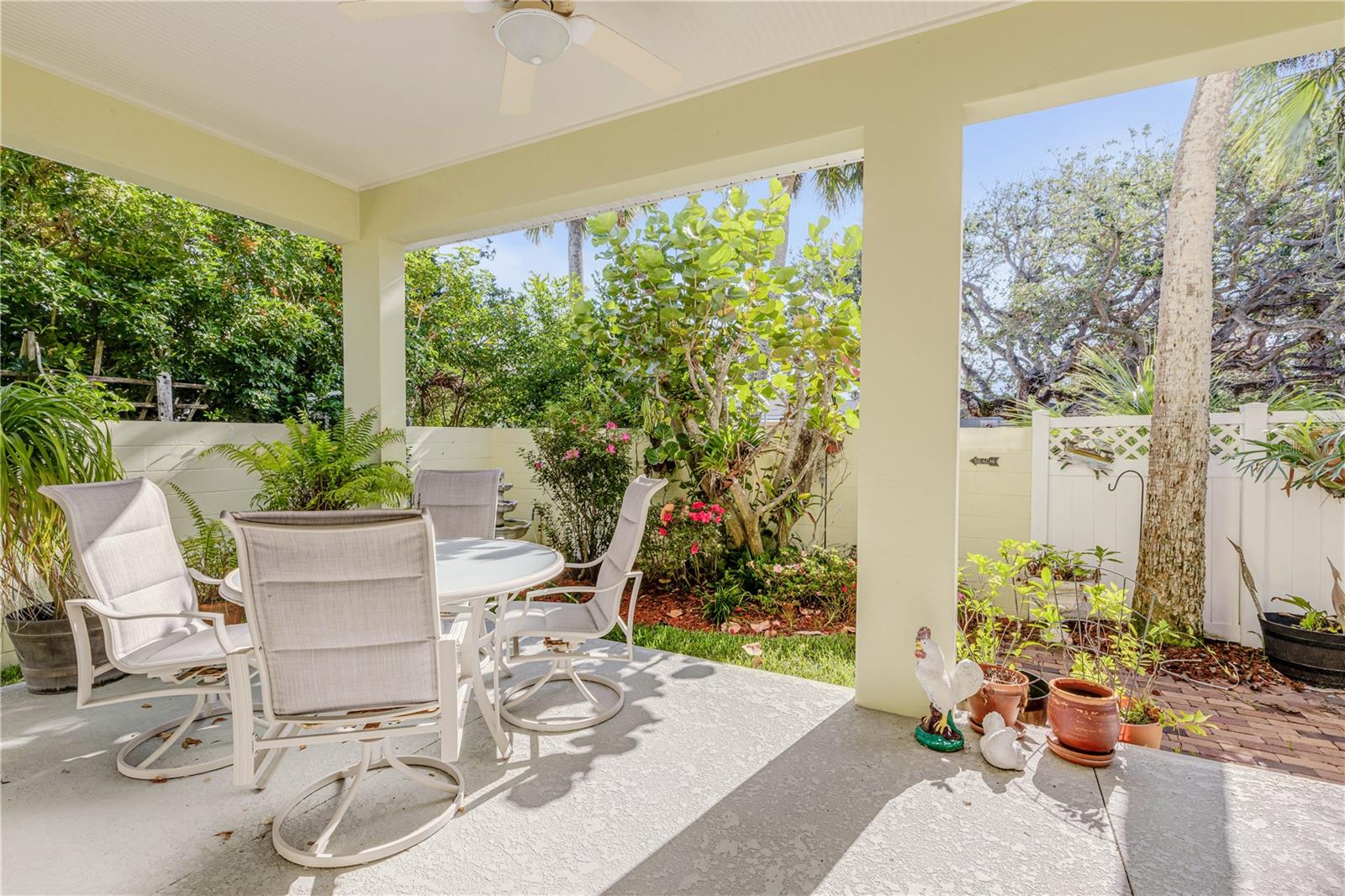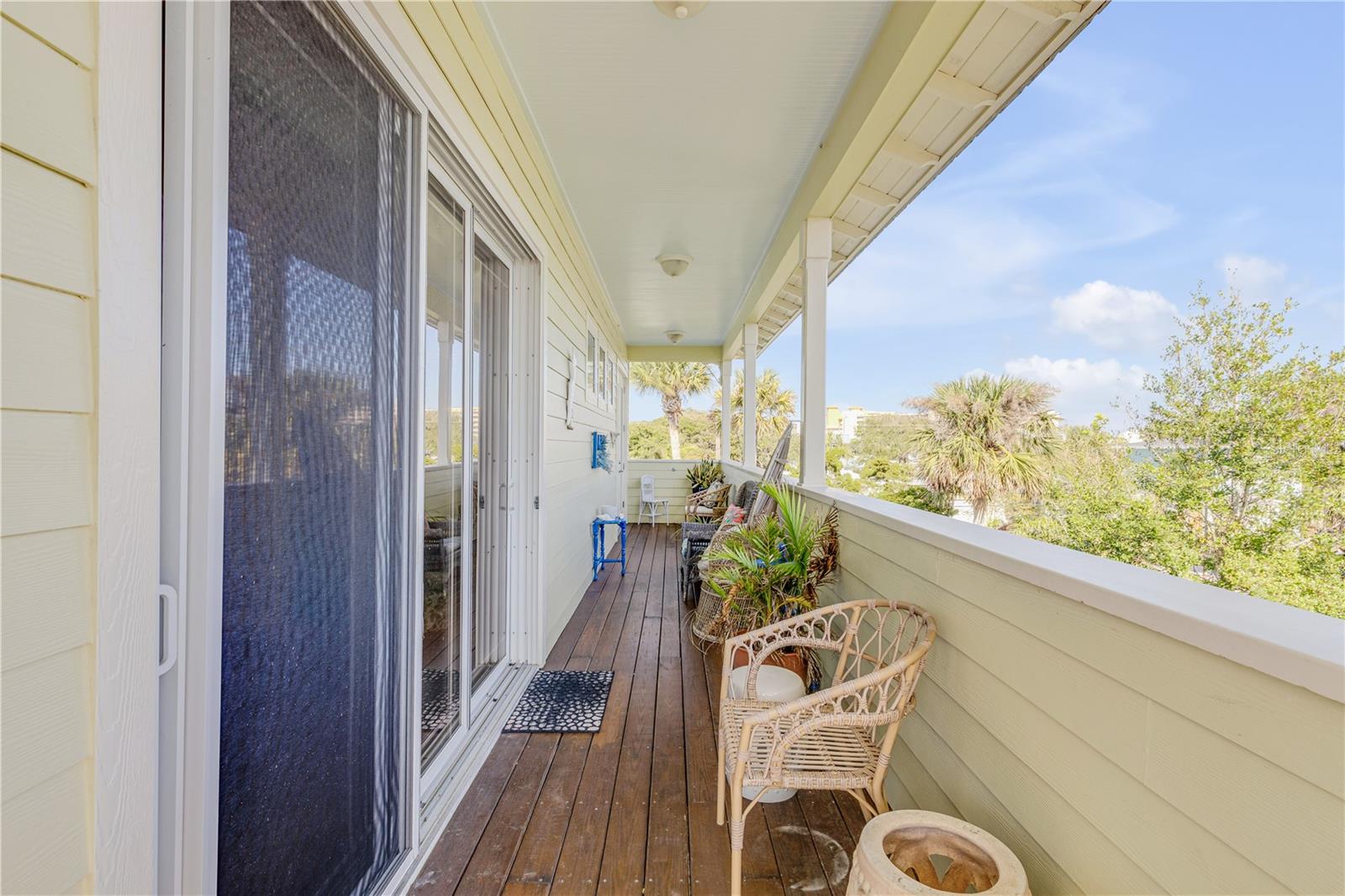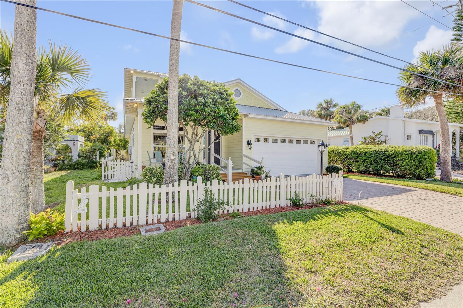 Beachside retreat in short-term rental overlay with the perfect blend of comfort and convenience. Featuring three bedrooms and two bathrooms, this two-story, split-plan home is thoughtfully designed to maximize privacy and functionality. Two generously sized bedrooms are located on the first floor, while the spacious primary suite and loft/office, and bonus room occupy the second floor, offering a private sanctuary. The open living and dining areas flow seamlessly into the galley kitchen, which boasts solid surface countertops, beautiful wood cabinetry, and stainless steel appliances. A washer and dryer laundry room is conveniently located on the first floor between the garage and hallway. At the top of the stairs, a versatile loft space can double as a home office and includes a door to an attic area, presenting the potential to be transformed into an additional room. Both the primary suite and the loft/office open to a beautiful wrap-around balcony, where you can unwind and savor Florida evenings. The covered front and back patios provide a serene spot to enjoy your morning coffee, while the fenced backyard ensures added privacy. Located within walking distance of the beach, restaurants, shopping, and entertainment, this home truly embodies the best of coastal living. Don’t miss your chance to make this gem your own – easy to view!